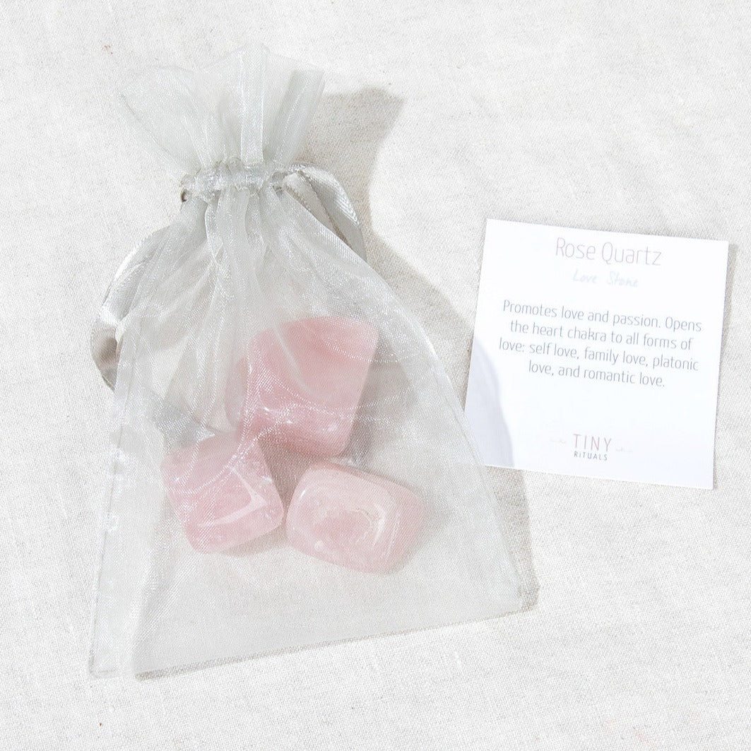 Rose Quartz tumbled stones ooze unconditional love. These gems sparkle with the promise of serenity, self-care, and surrendering to all that the universe has waiting for you. For those of us who tend to live behind high walls, to make ourselves small, and to keep fate at arm’s length, these healing crystals are here to tear down those barriers. This doesn’t mean you need to stand exposed to the wind and rain, but that you can walk through the world without fear, knowing that whatever happens, you can experience life at its fullest without being burnt.