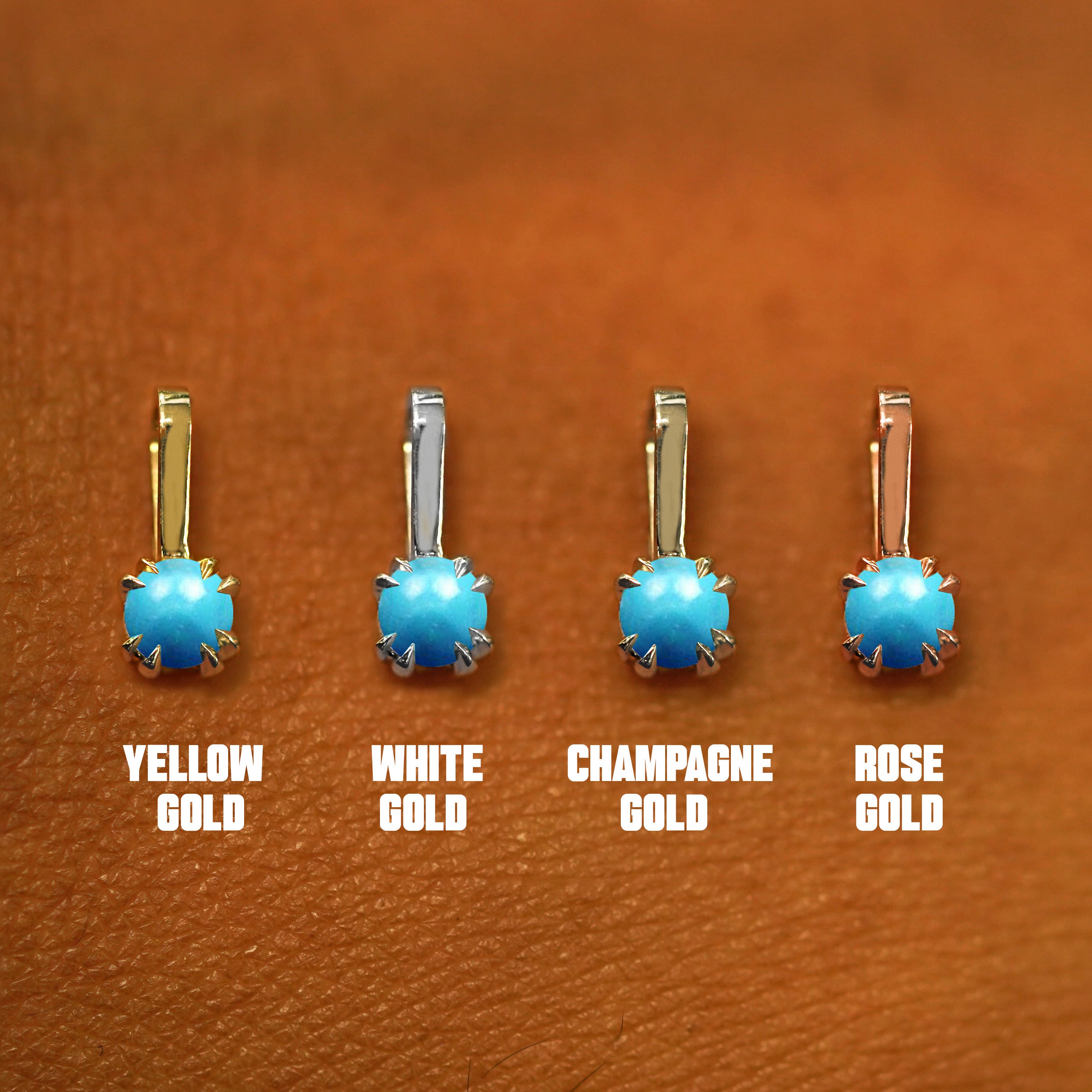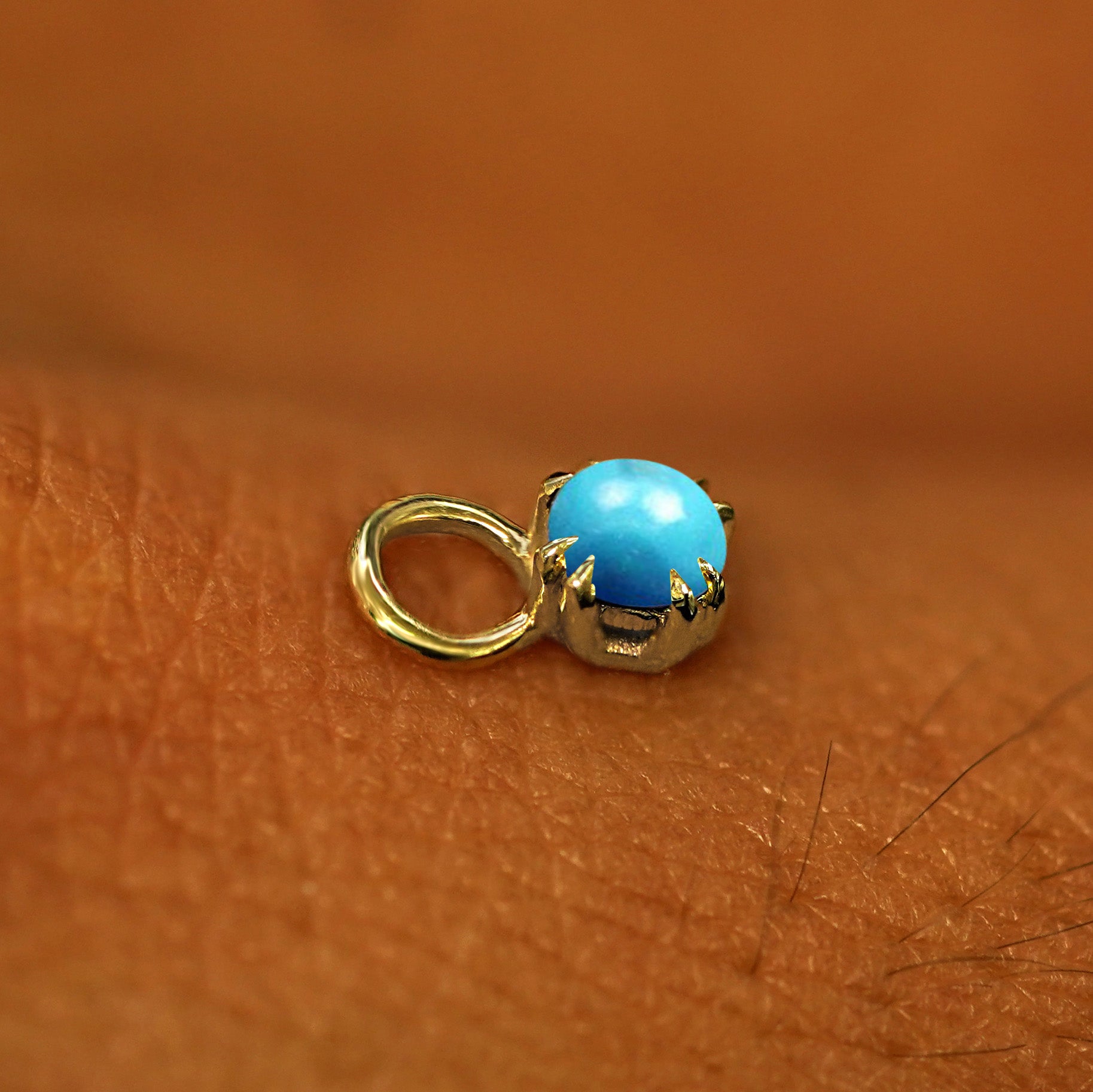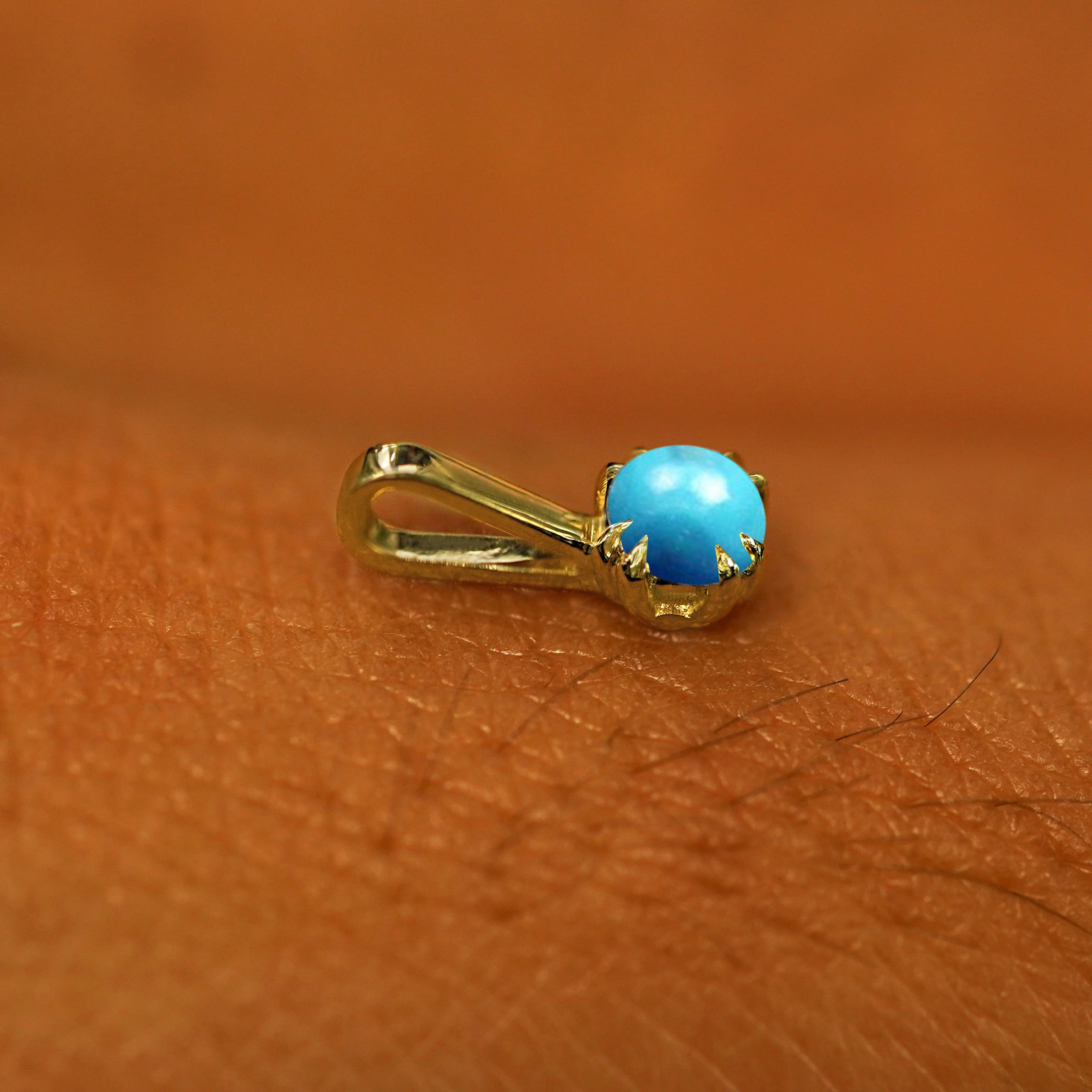 Turquoise is an opaque gemstone with an exquisite green-blueish color. The warm tones and stunning hues makes Turquoise jewelry a must have. Add this delicate December birthstone charm to your favorite chain bracelet, hoop earrings, anklet or wear it as a pendant necklace.