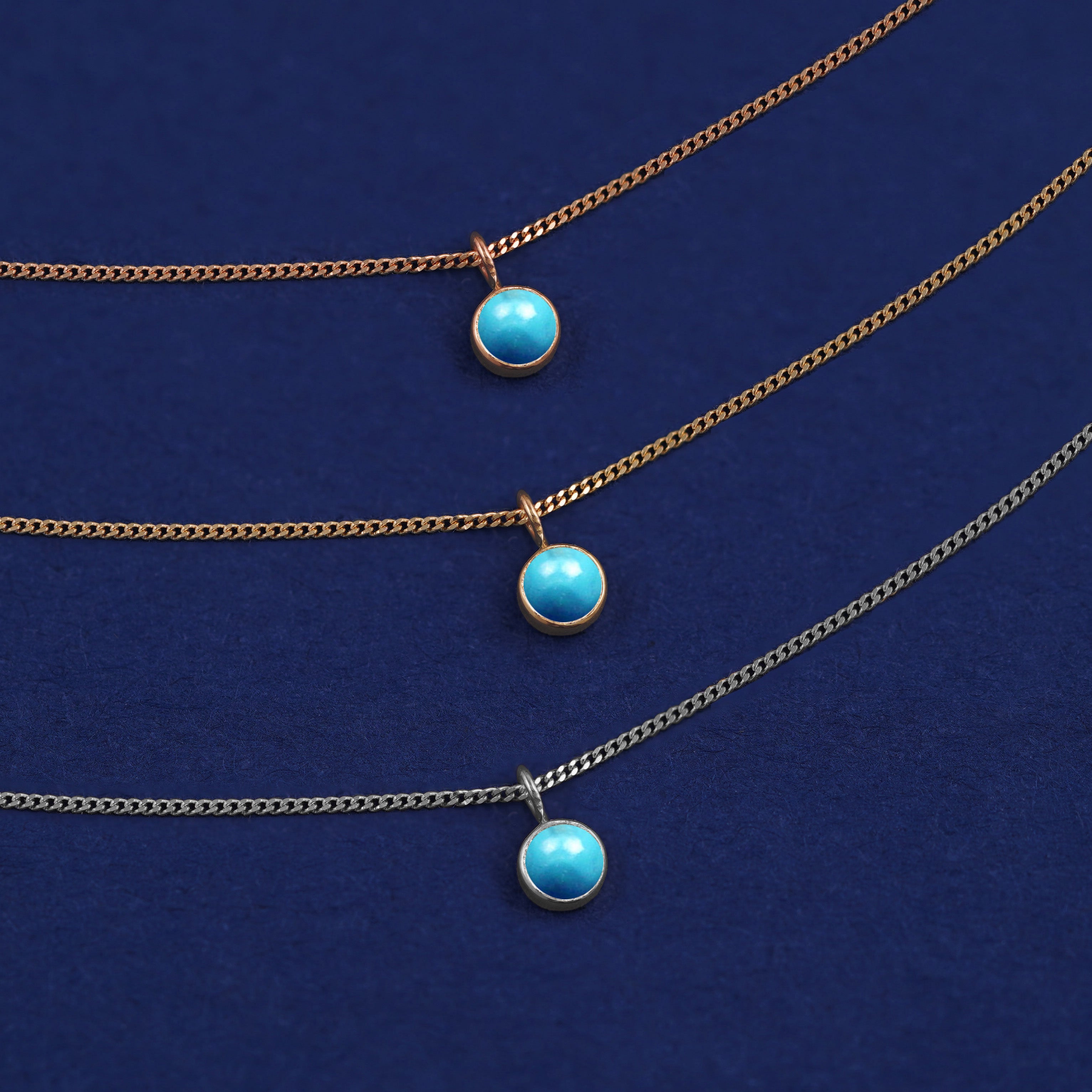 Turquoise is an opaque gemstone with a green-blueish color whose bold yet warm presence makes it the perfect December birthstone. The incredible pop of color on this solitaire necklace is just what you need to enhance your already fierce style. This 14k solid gold turquoise necklace is designed to be worn wherever, whenever. The Essential Chain secures with a lobster lock and easy-to-grip Automic Gold AU plate.