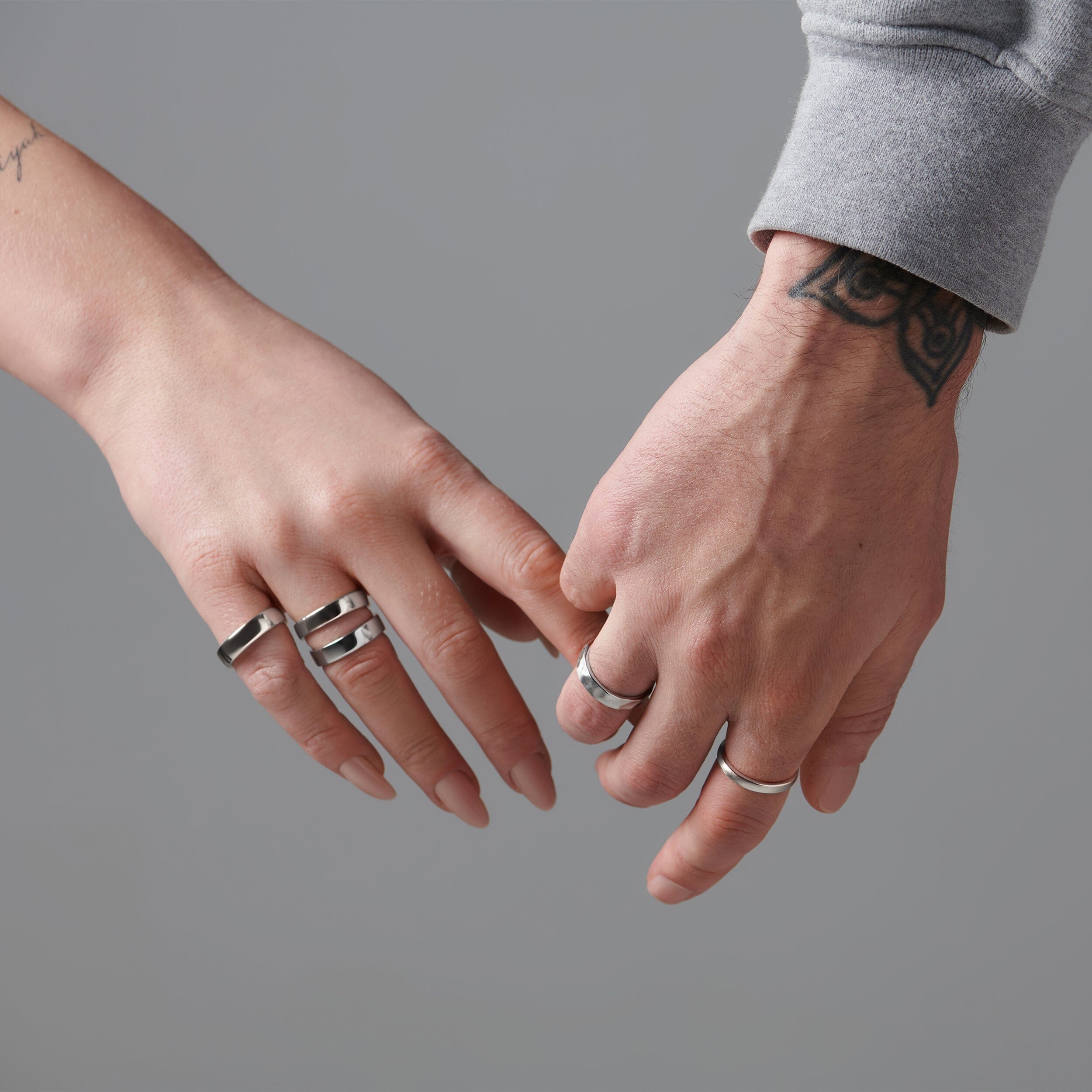This bold sophisticated unisex design is a celebration of unity, inclusivity, and the beauty found in the perfect balance of masculine & feminine - power & sensitivity. These versatile rings redefine the boundaries of traditional jewelry, challenging conventional notions of who wears what. Your life, your choice, your style!