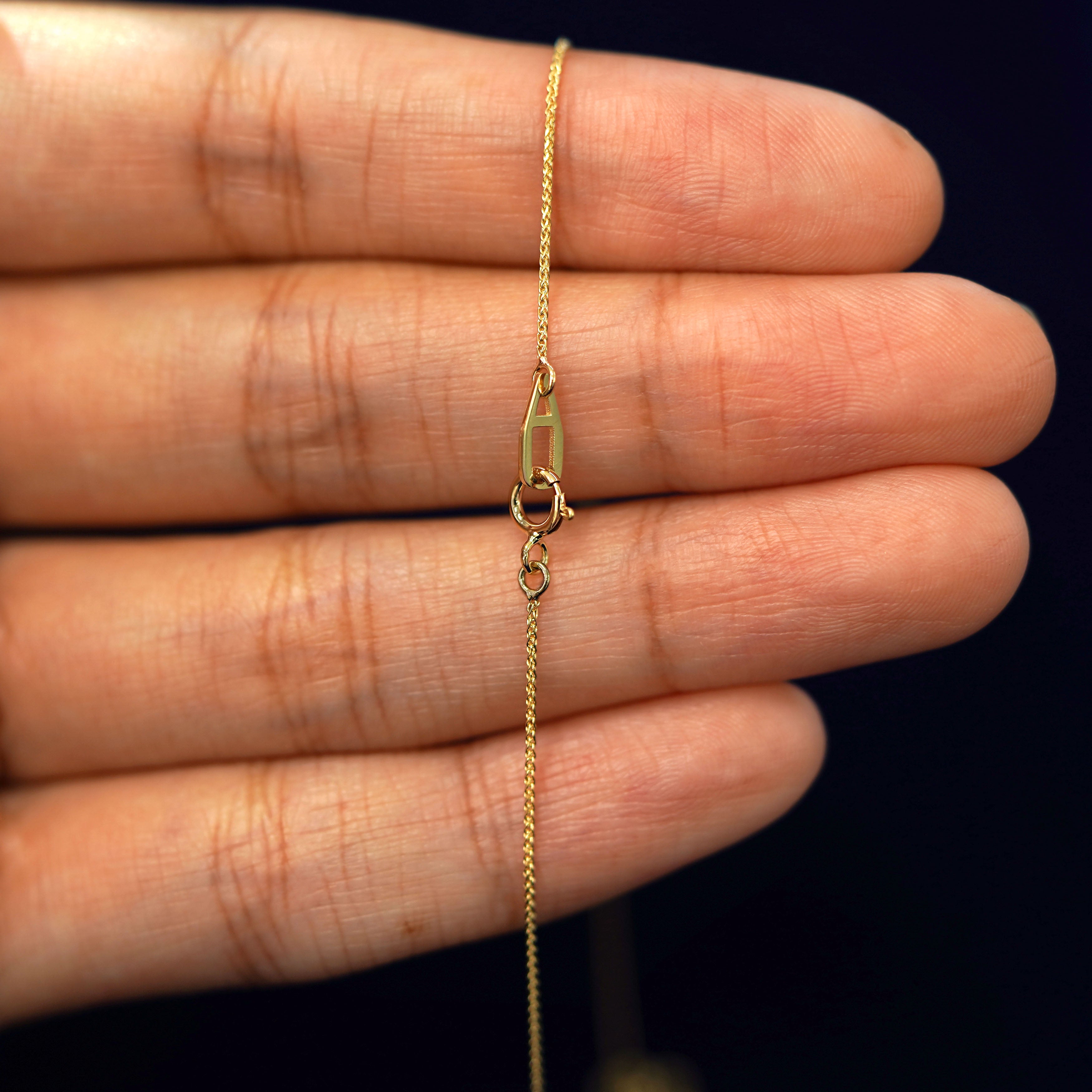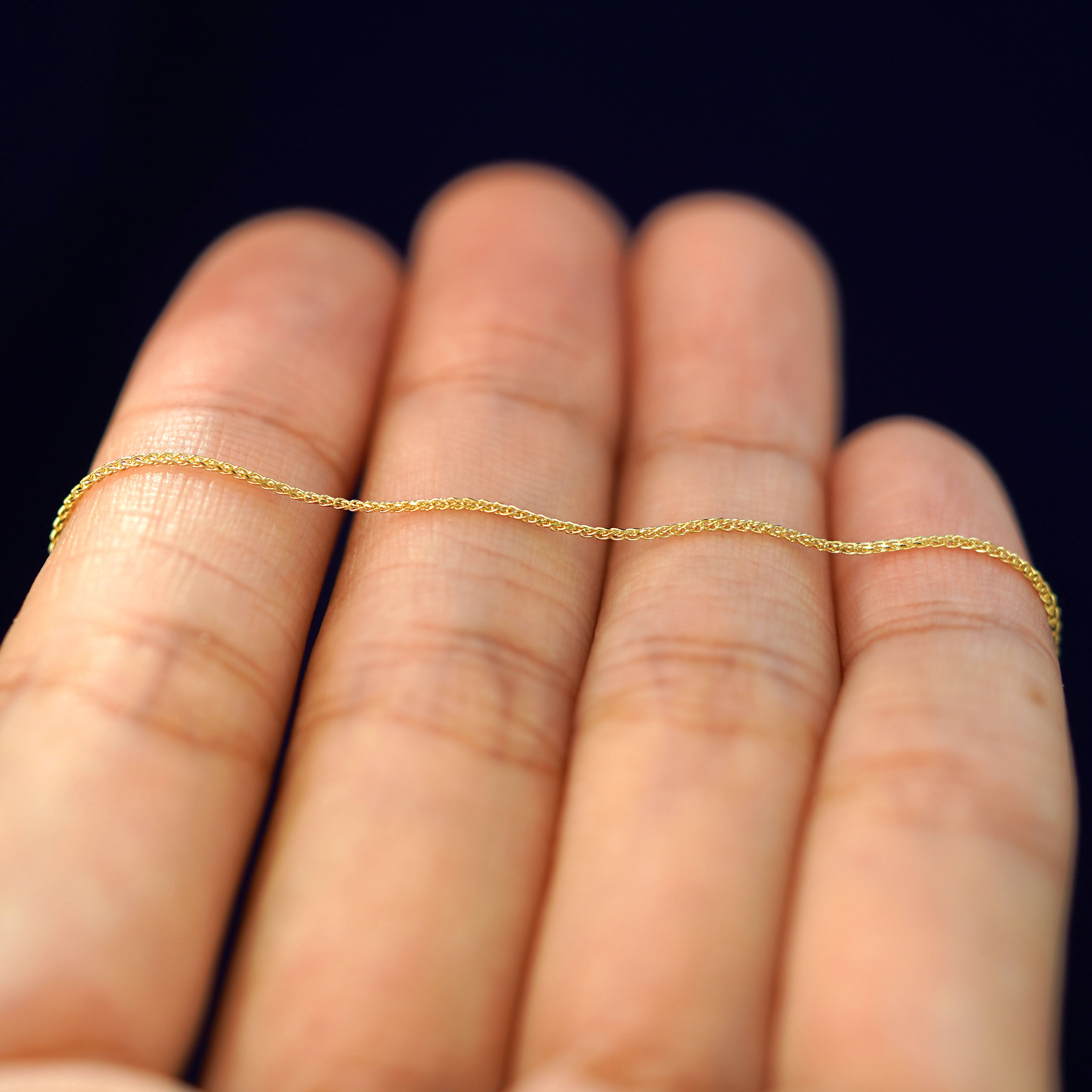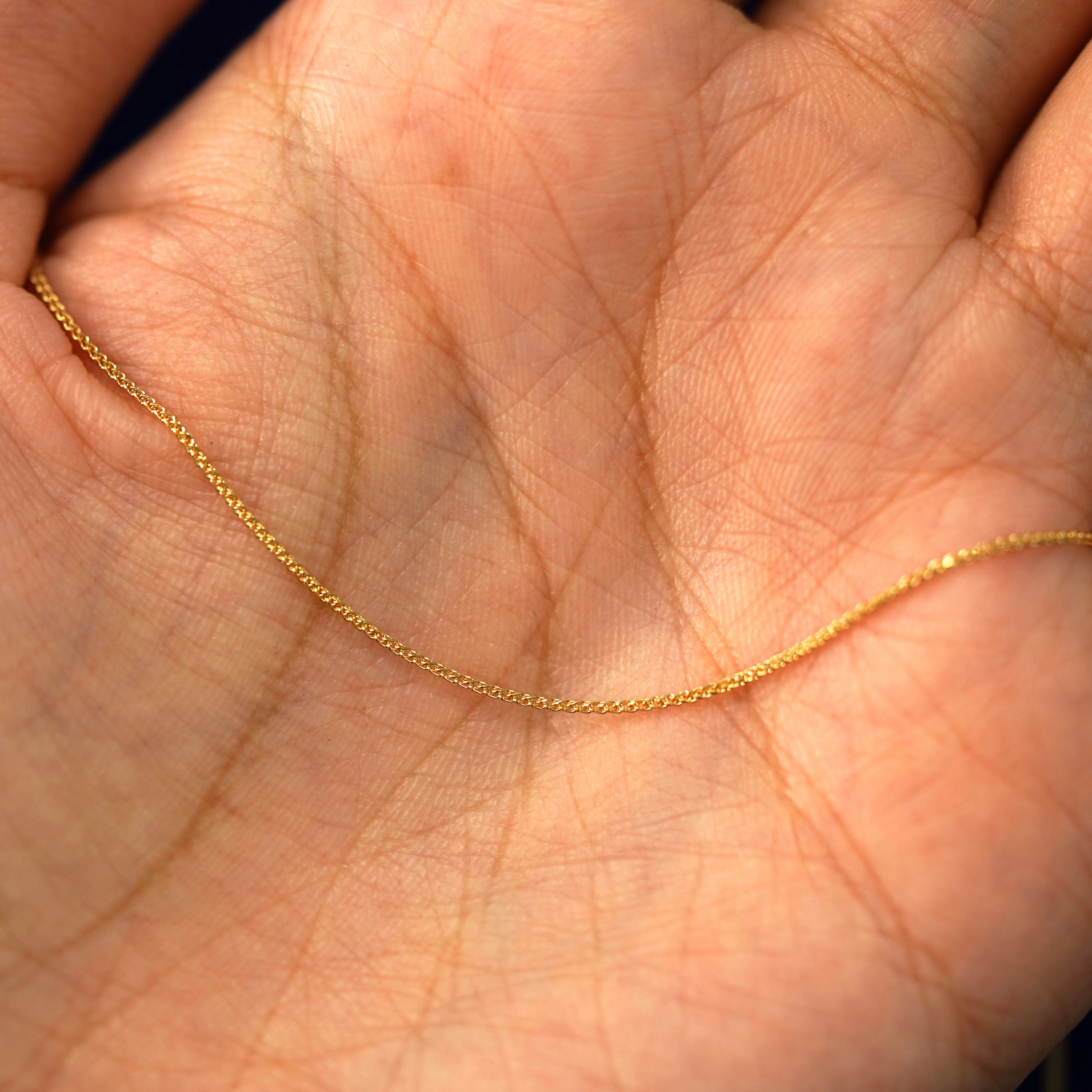 This stunning wheat chain features a chic woven design with diamond-cut links that catch the light and make it sparkle. This chains braided design creates a tight knit so it won’t snag or catch and because it’s crafted from solid 14k gold it’s durable enough to wear every day. Secures with a spring ring lock and an easy-to-grip Automic Gold AU plate.