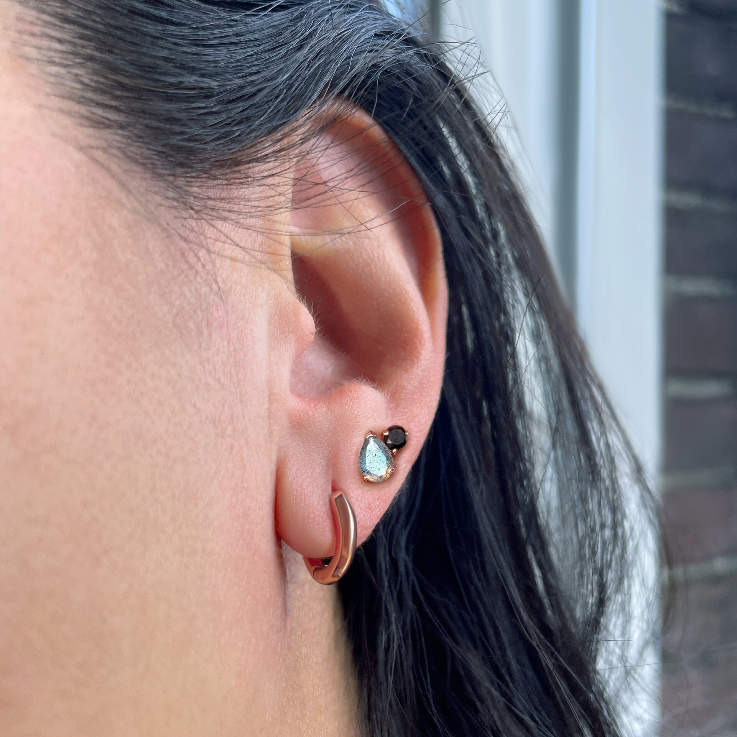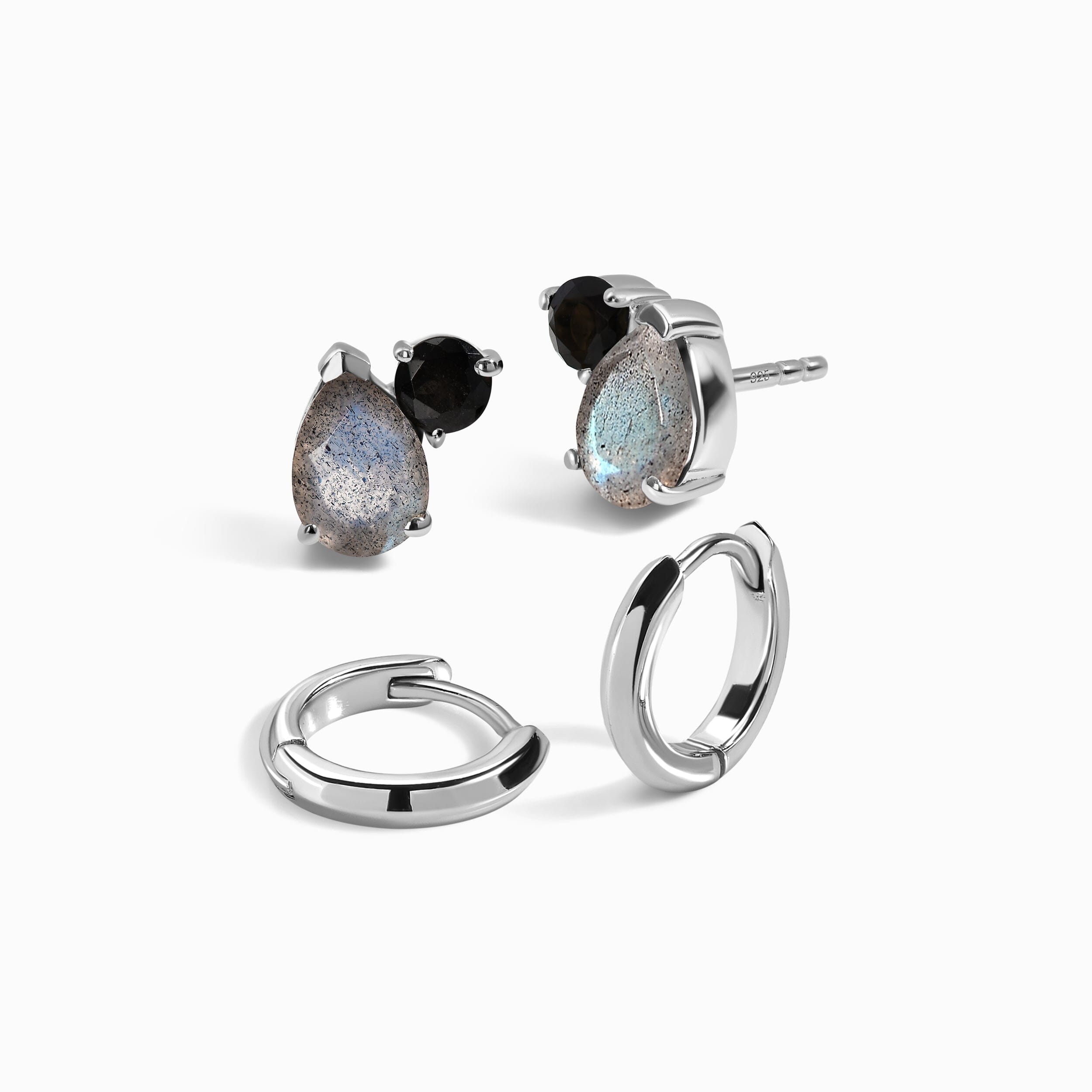 Our Wholeness Hoops are an on-trend staple in the perfect hoop size, while our Toi Et Moi Studs are a bestselling design with the complementary energies of Labradorite and Black Obsidian.