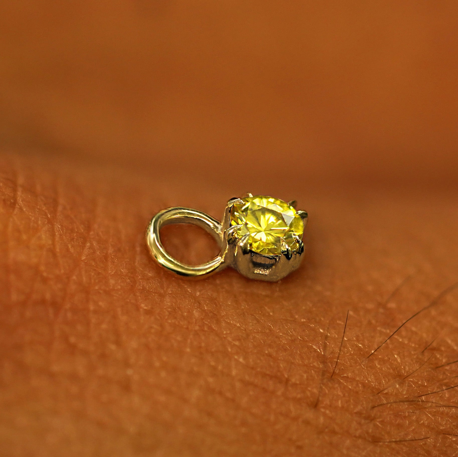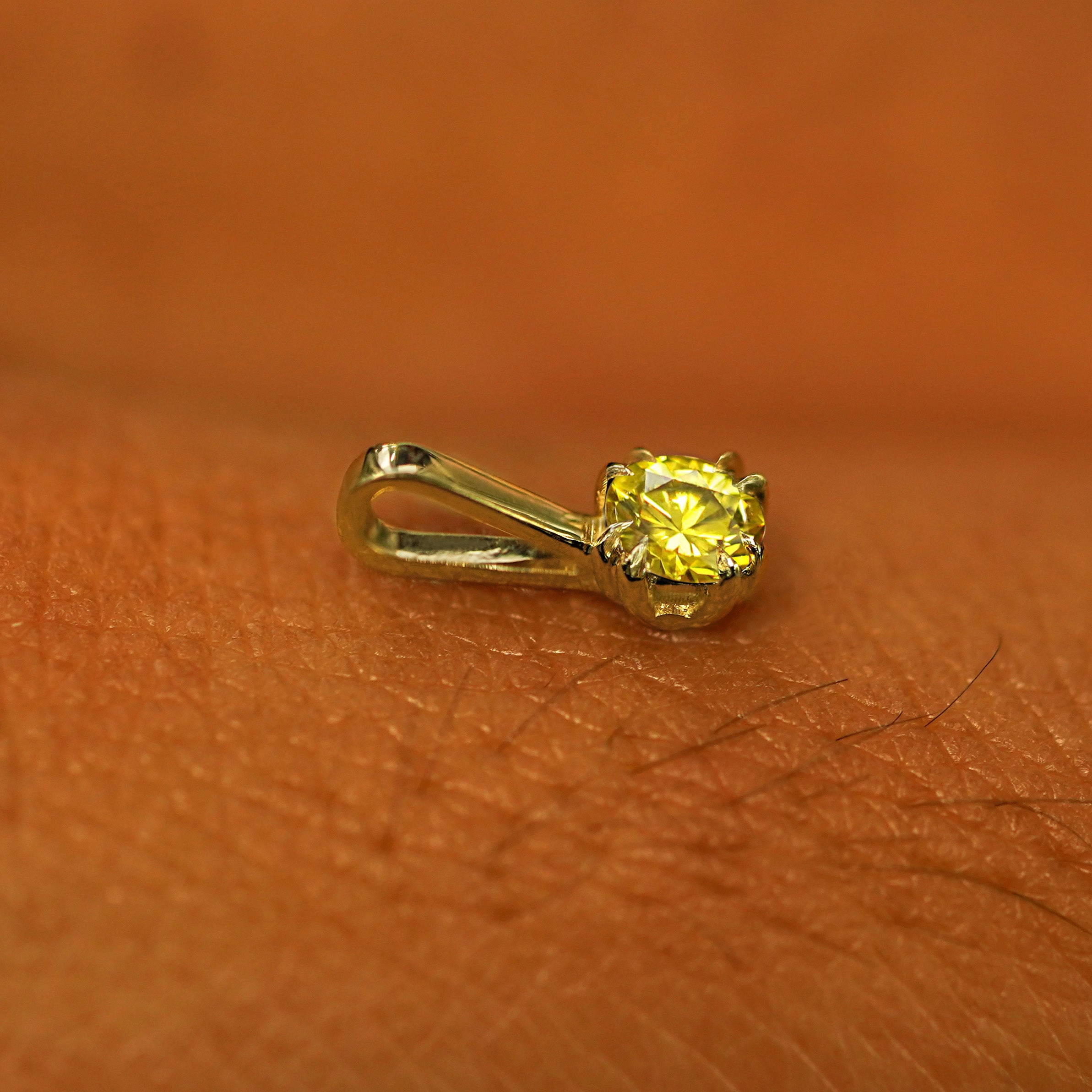 This strong, sunshiny babe is the perfect solid gold charm to spice up your outfit. Wear this bright, reclaimed yellow diamond charm on your favorite necklace, bracelet or hoop for a look that’s as unique as you are.