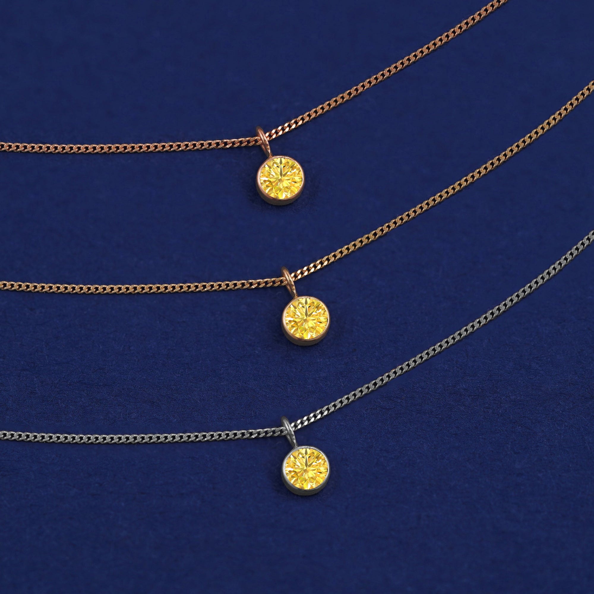 A glittering diamond necklace for someone who loves a little color. This sparkling yellow diamond pendant and solid gold Essential Chain are made with reclaimed and recycled materials, so you can rest easy knowing your beautiful gold jewelry is also sustainable. Secures with a lobster lock and easy-to-grip Automic Gold AU plate.