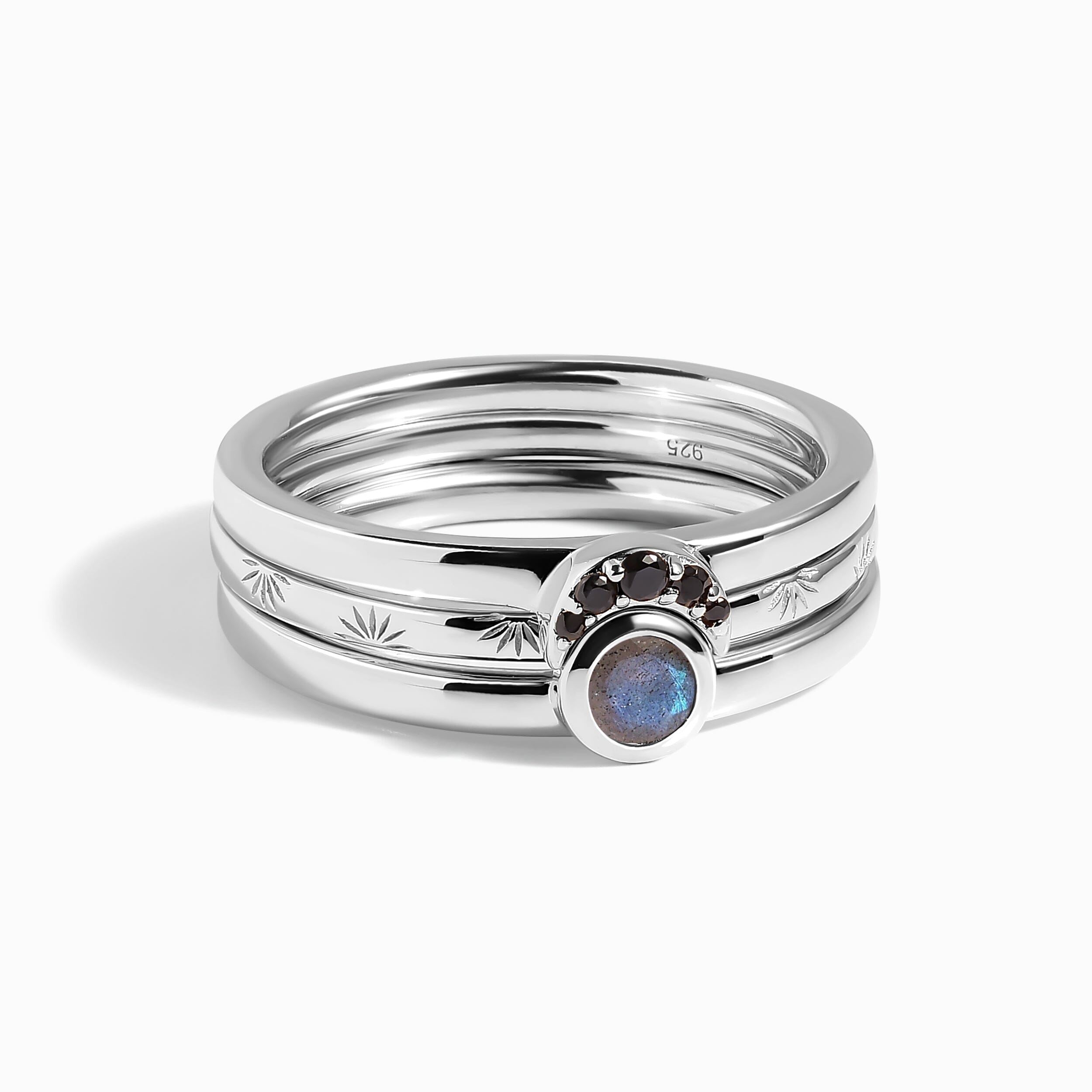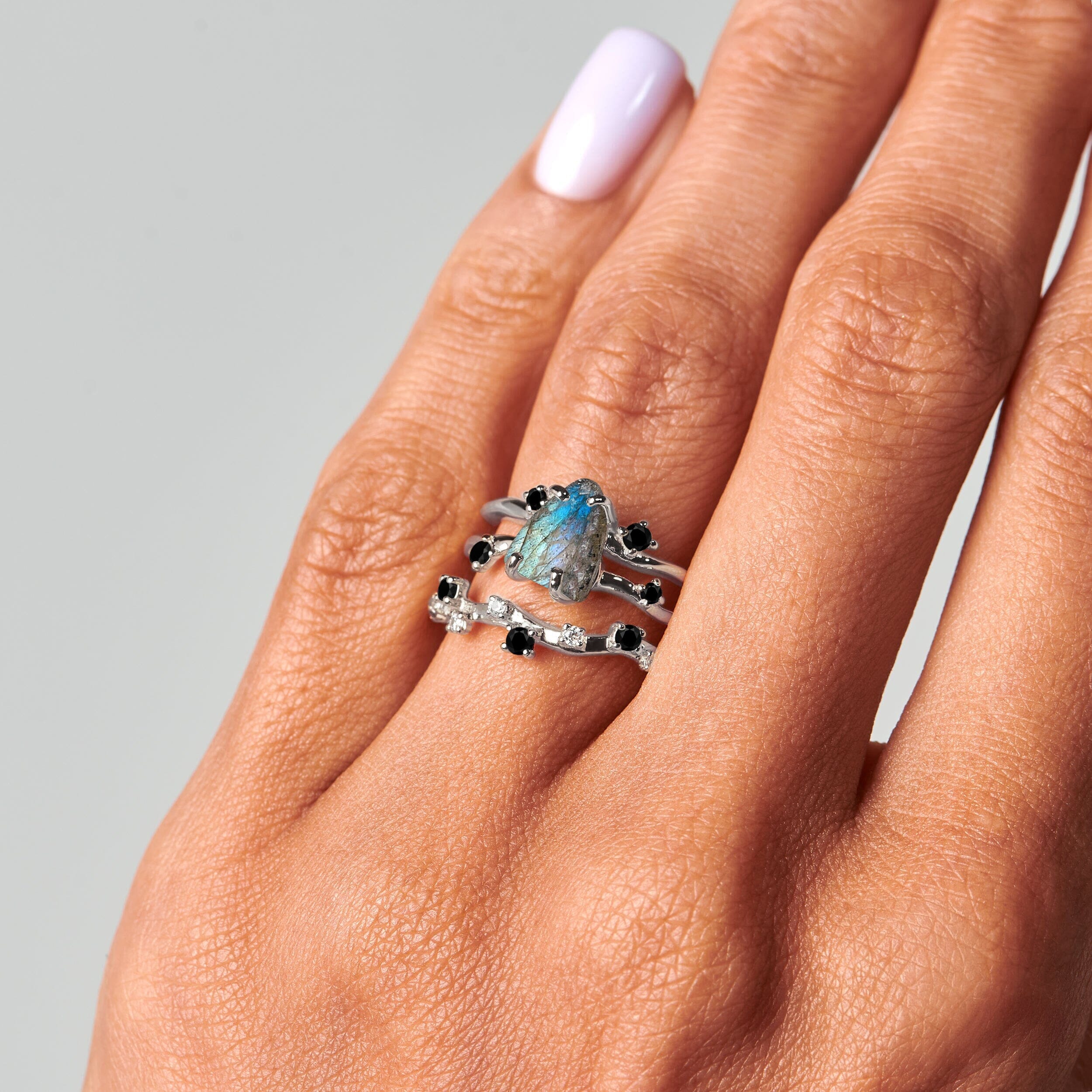 Labradorite Flow Ring & Black Onyx Stardust Band