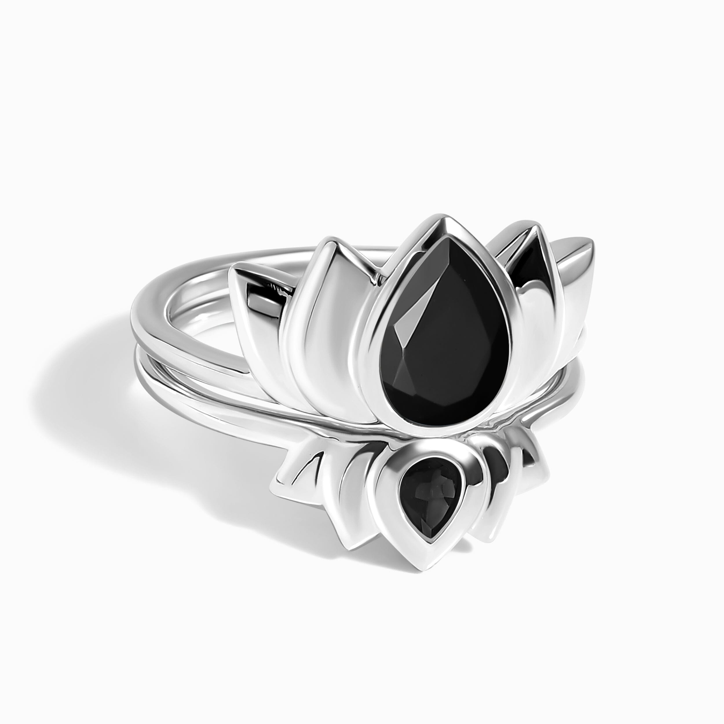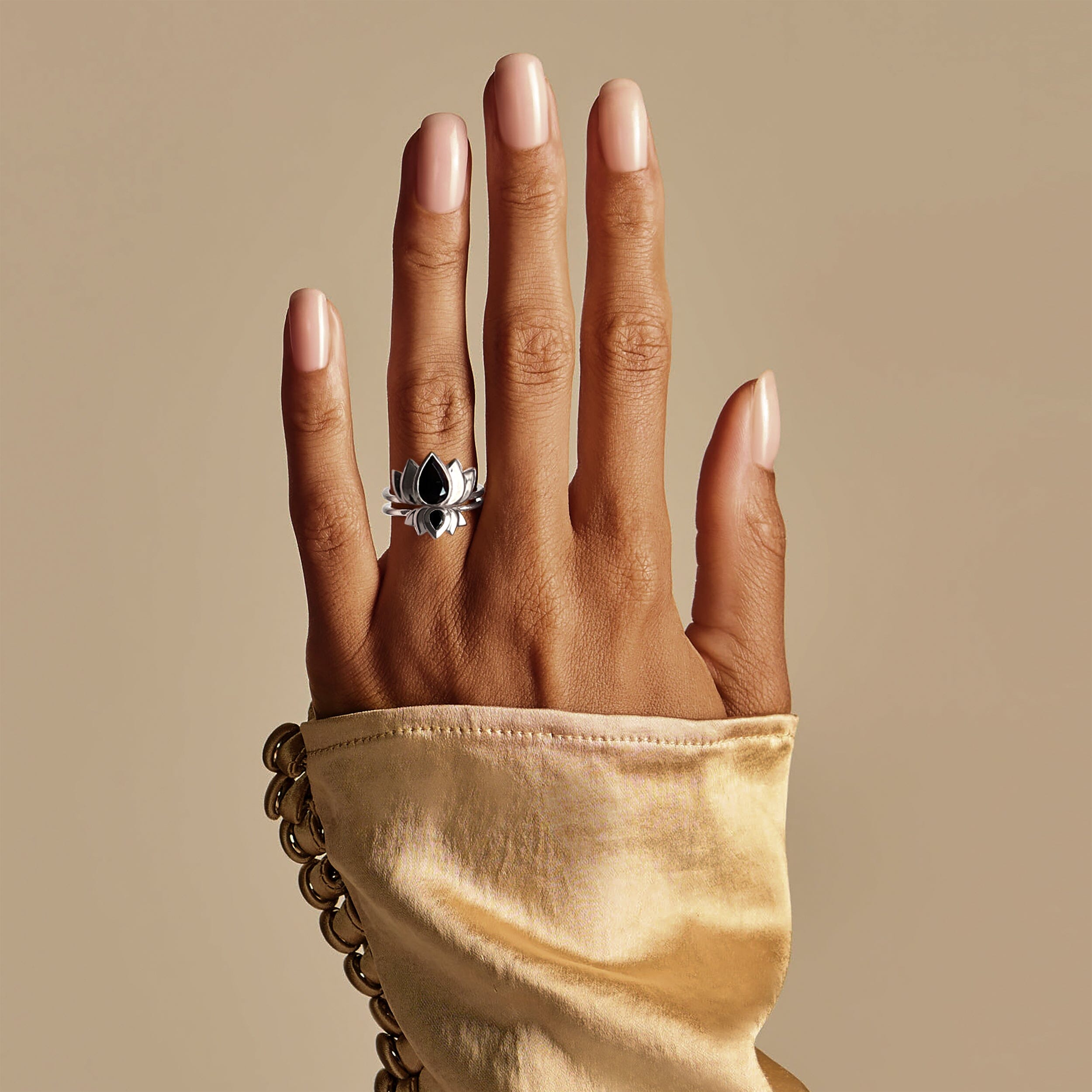 Black Obsidian Rings - Sacred Lotus Strength Set