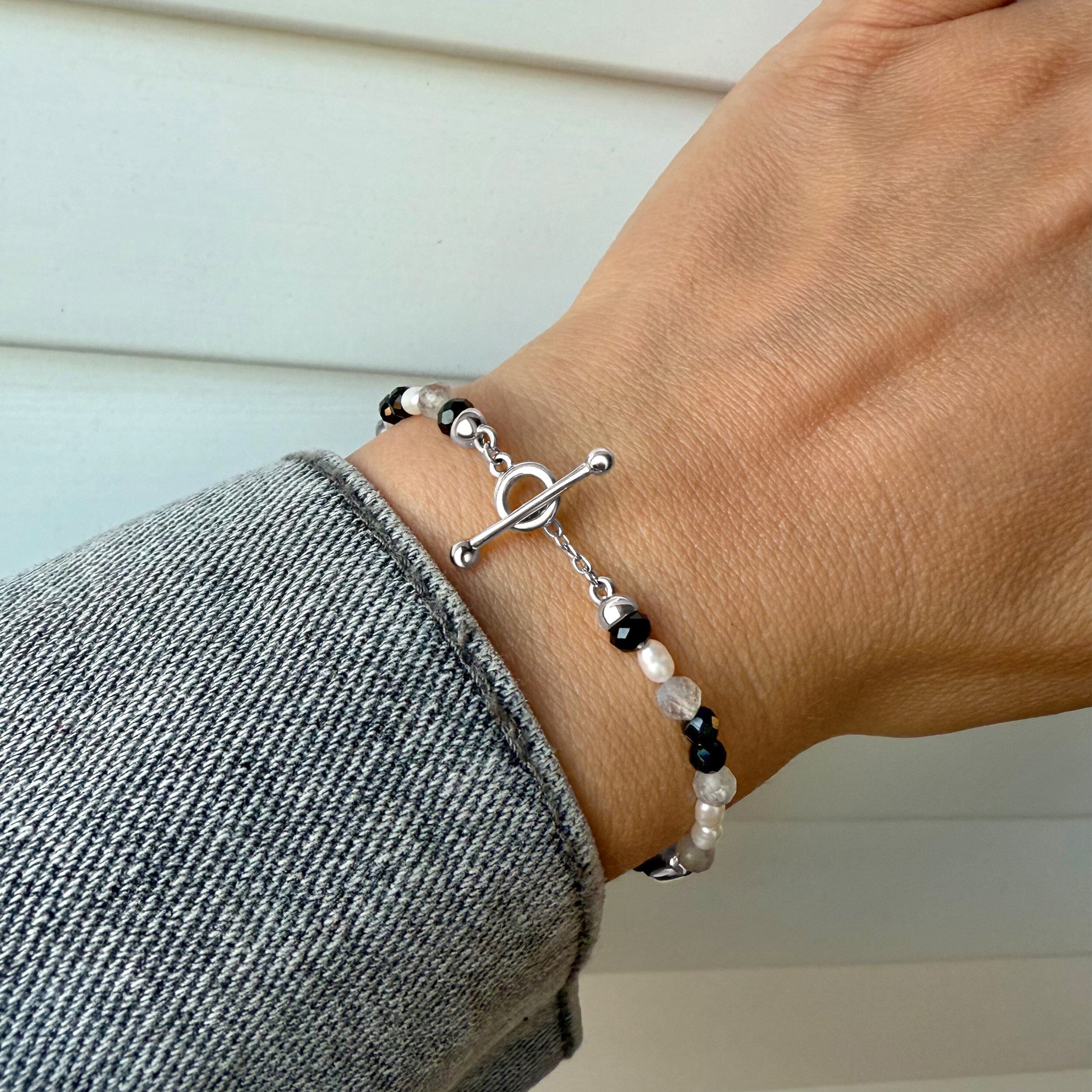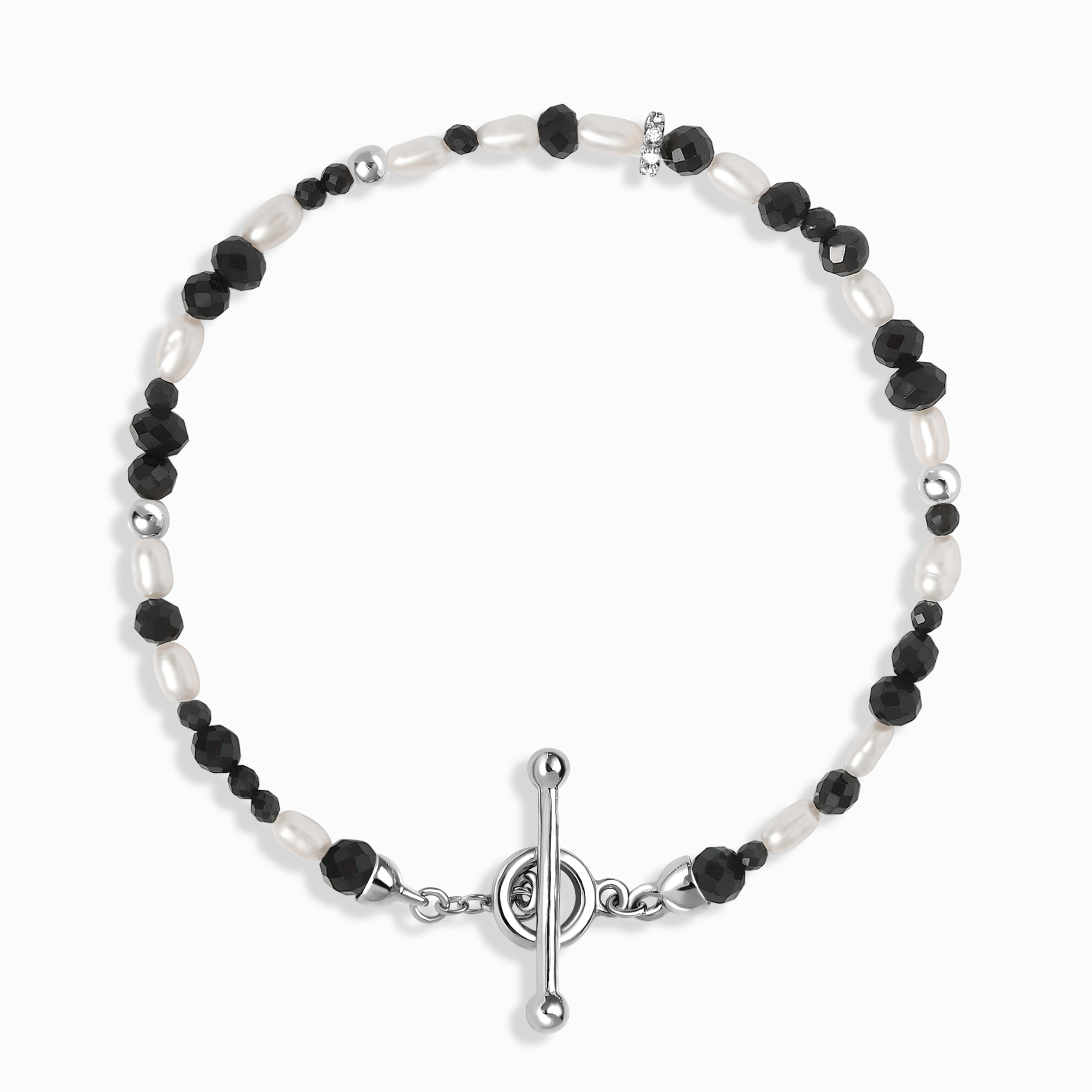 Black Obsidian Rice Pearl T-Lock Beads Bracelet - Power Flow
