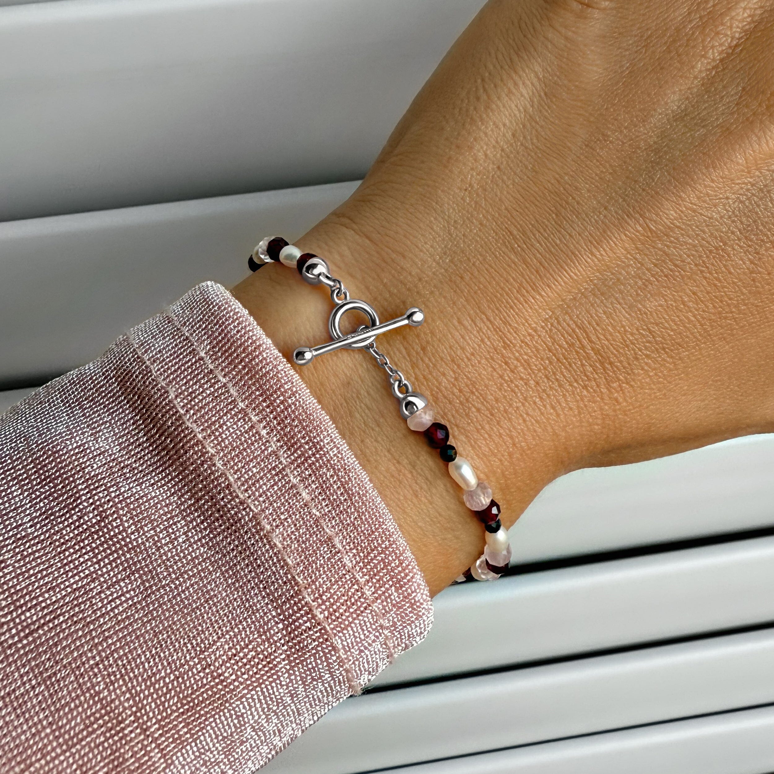 Rose Quartz Garnet T-Lock Beads Bracelet - Love Charge