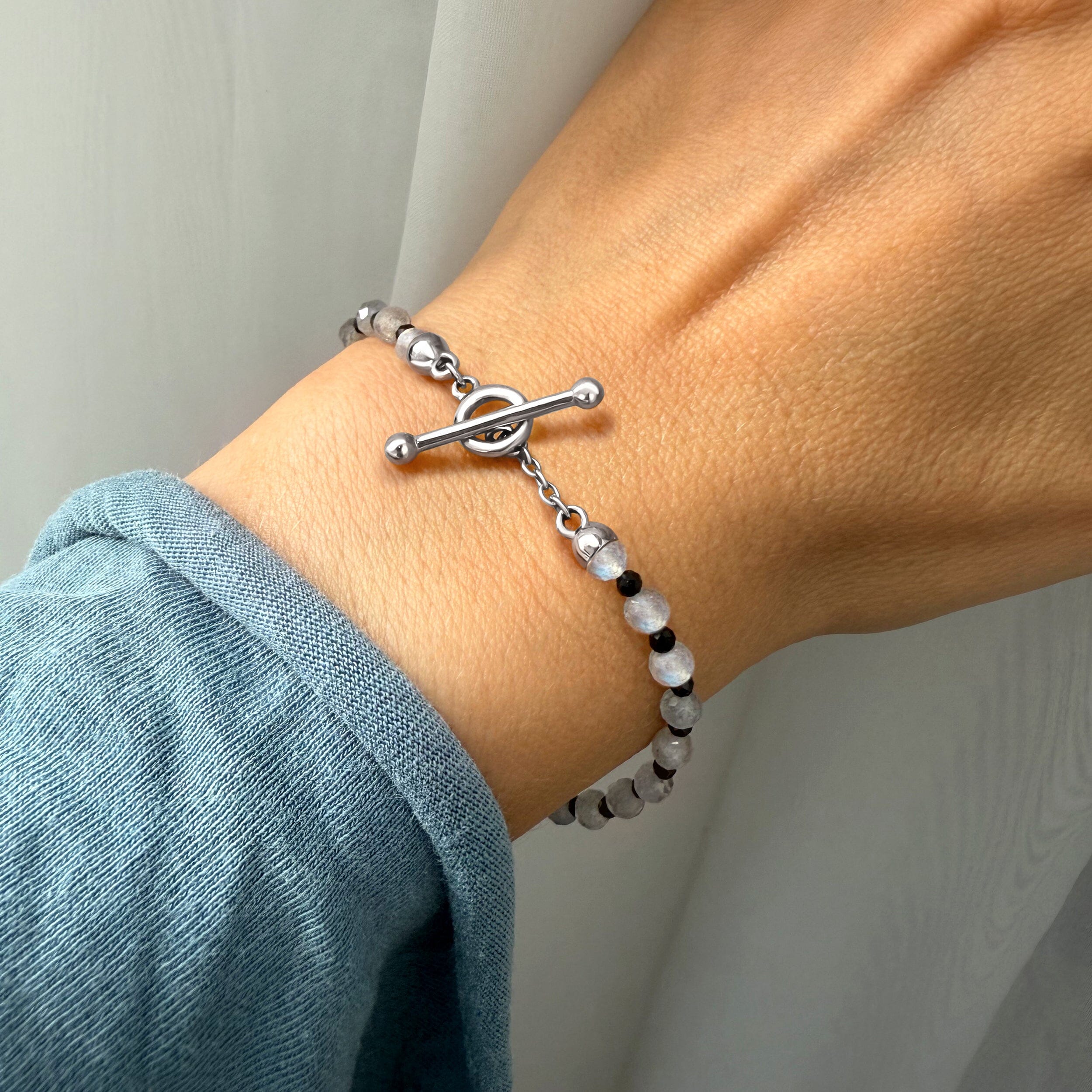 Labradorite Black Obsidian T-Lock Beads Bracelet - Soft Armor