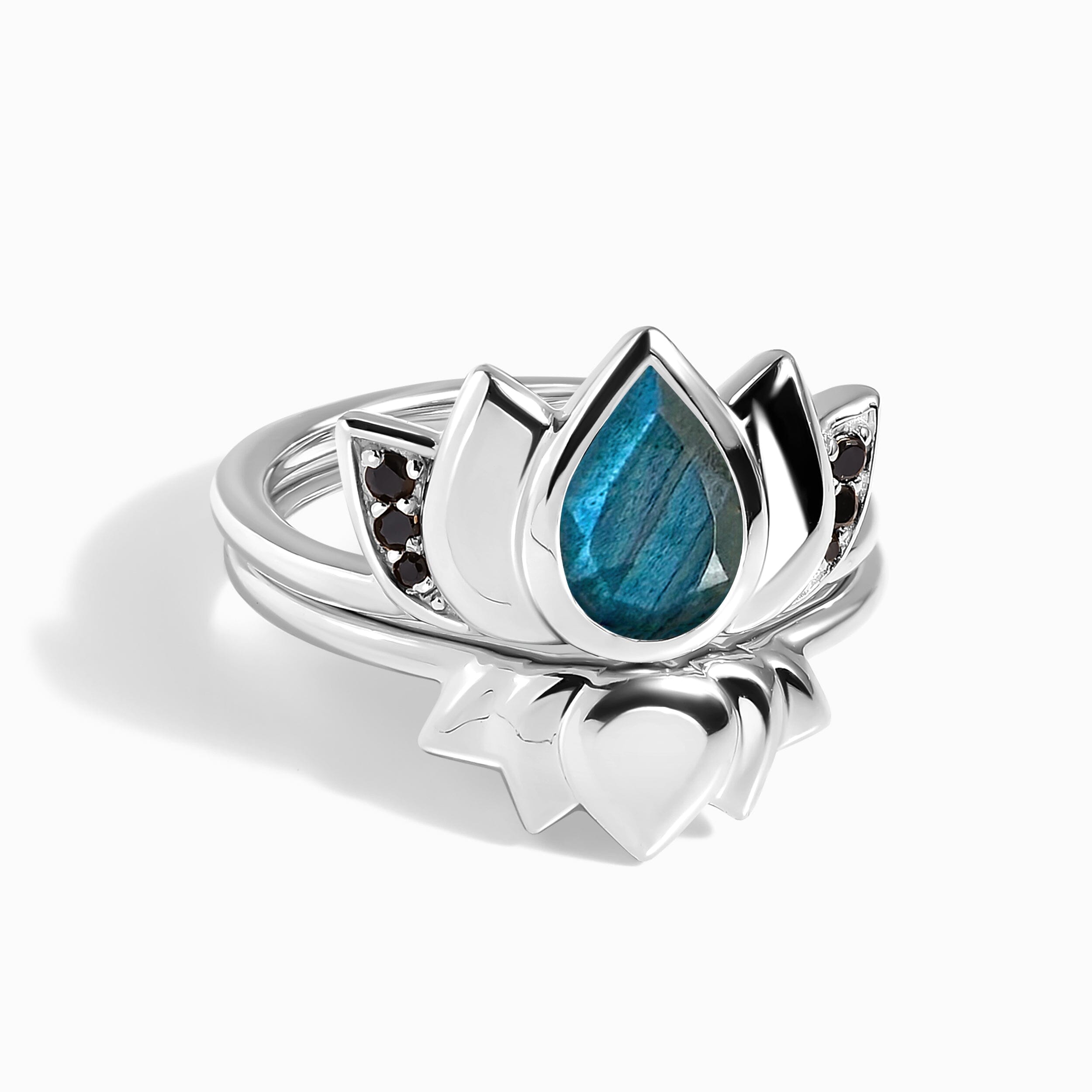 Labradorite Black Spinel Rings - Crescent Moon Set