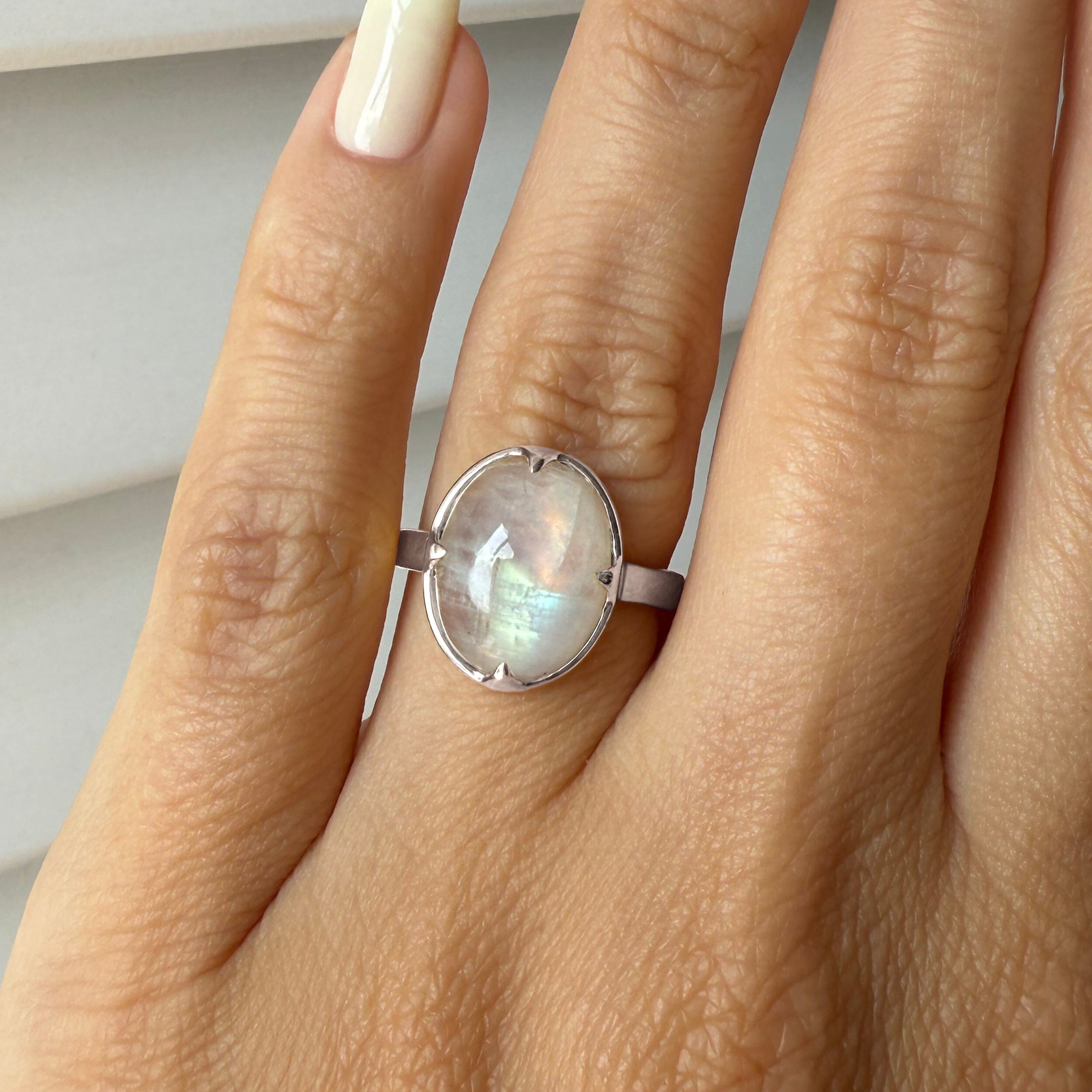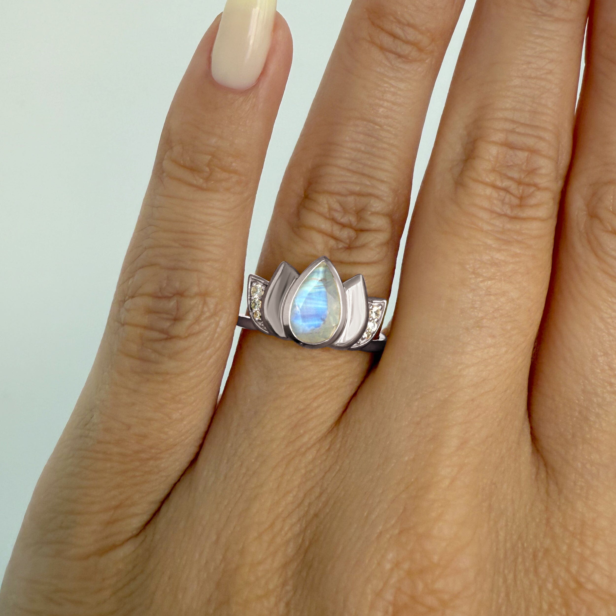 Adjustable Moonstone Ring Flourish - June Birthstone + Free Gift Bag