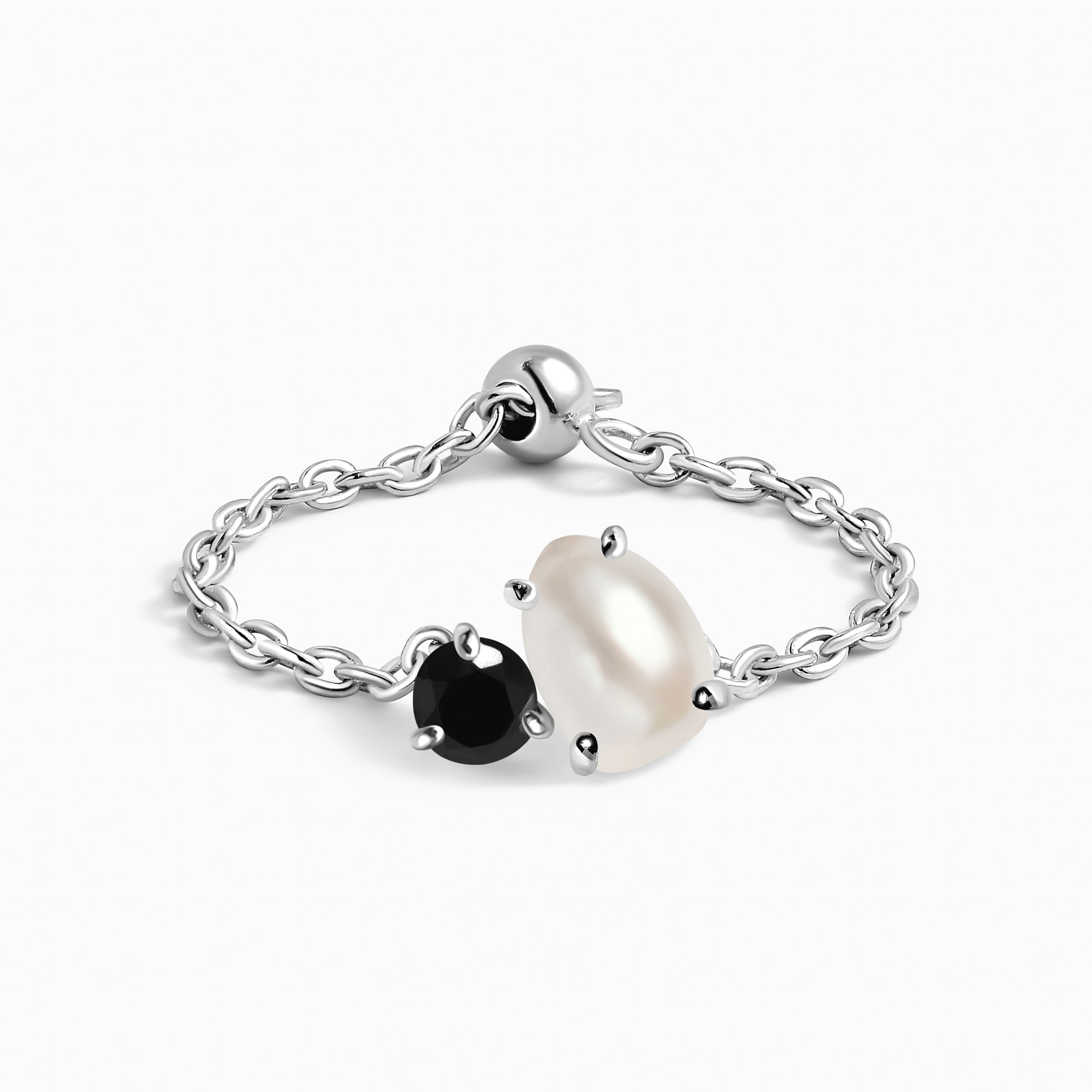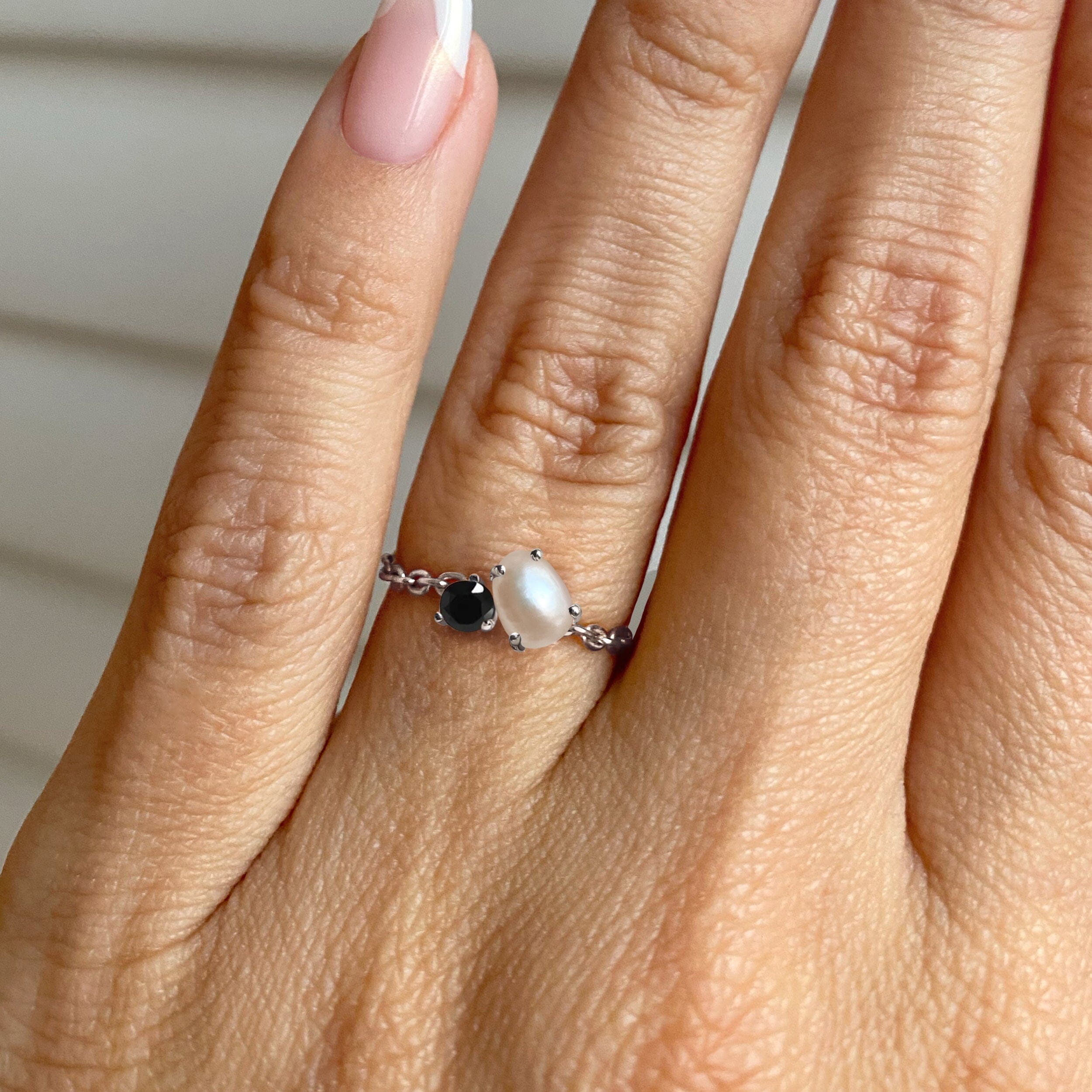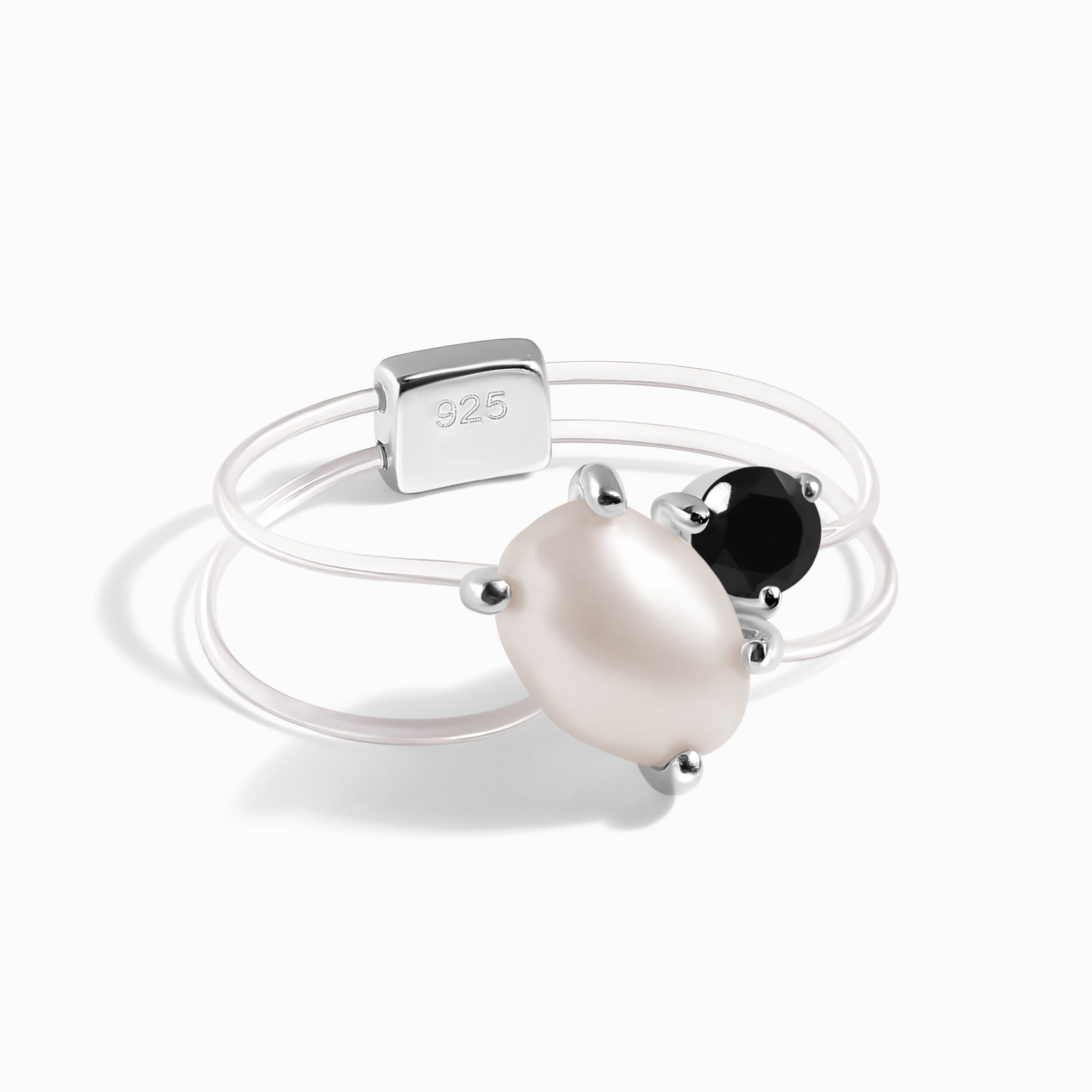 Floating Ring - Toi Et Moi Pearl & Black Obsidian