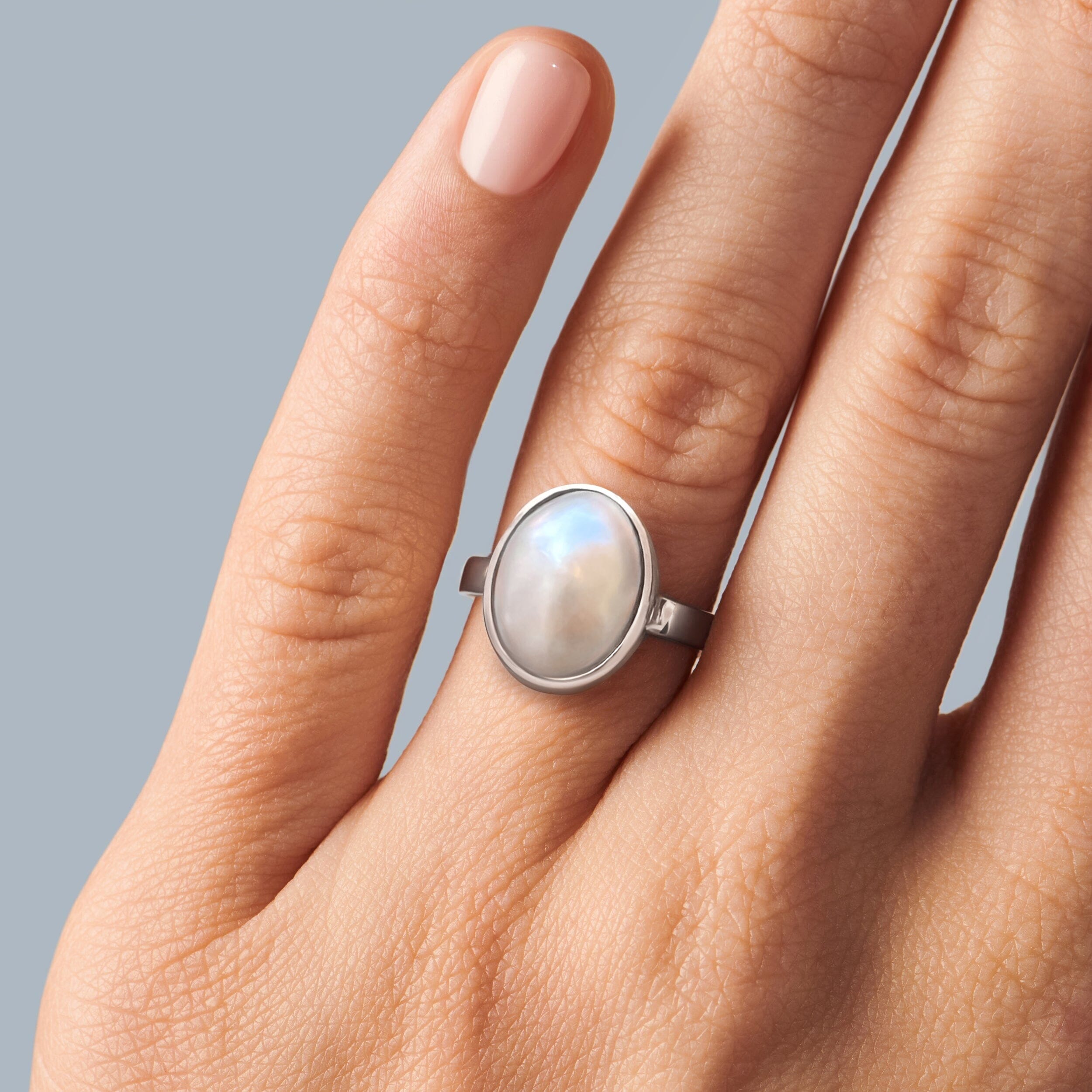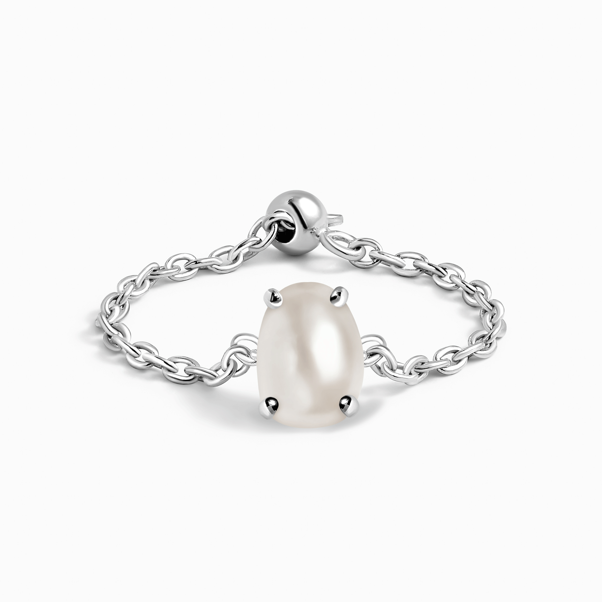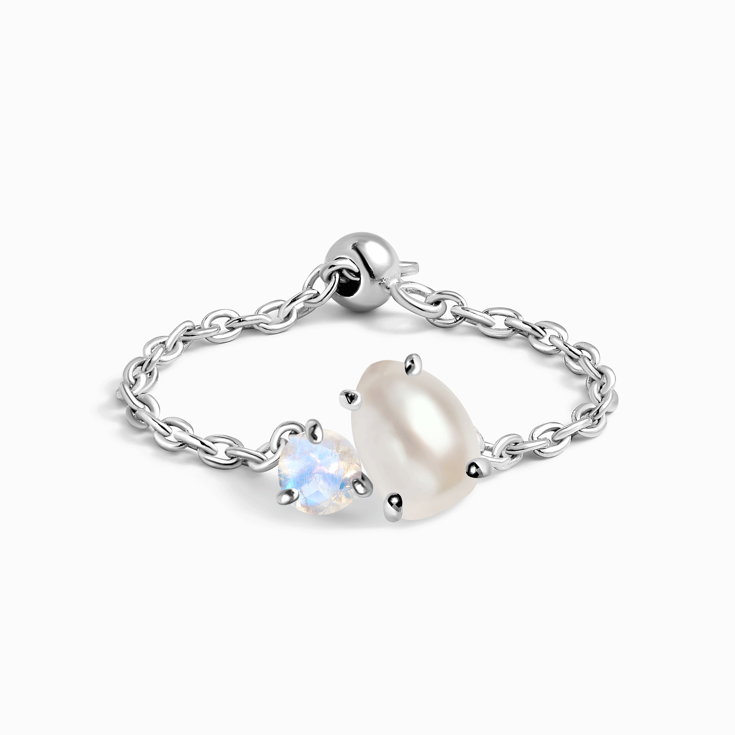 Pearl Moonstone Adjustable Chain Ring - Nura
