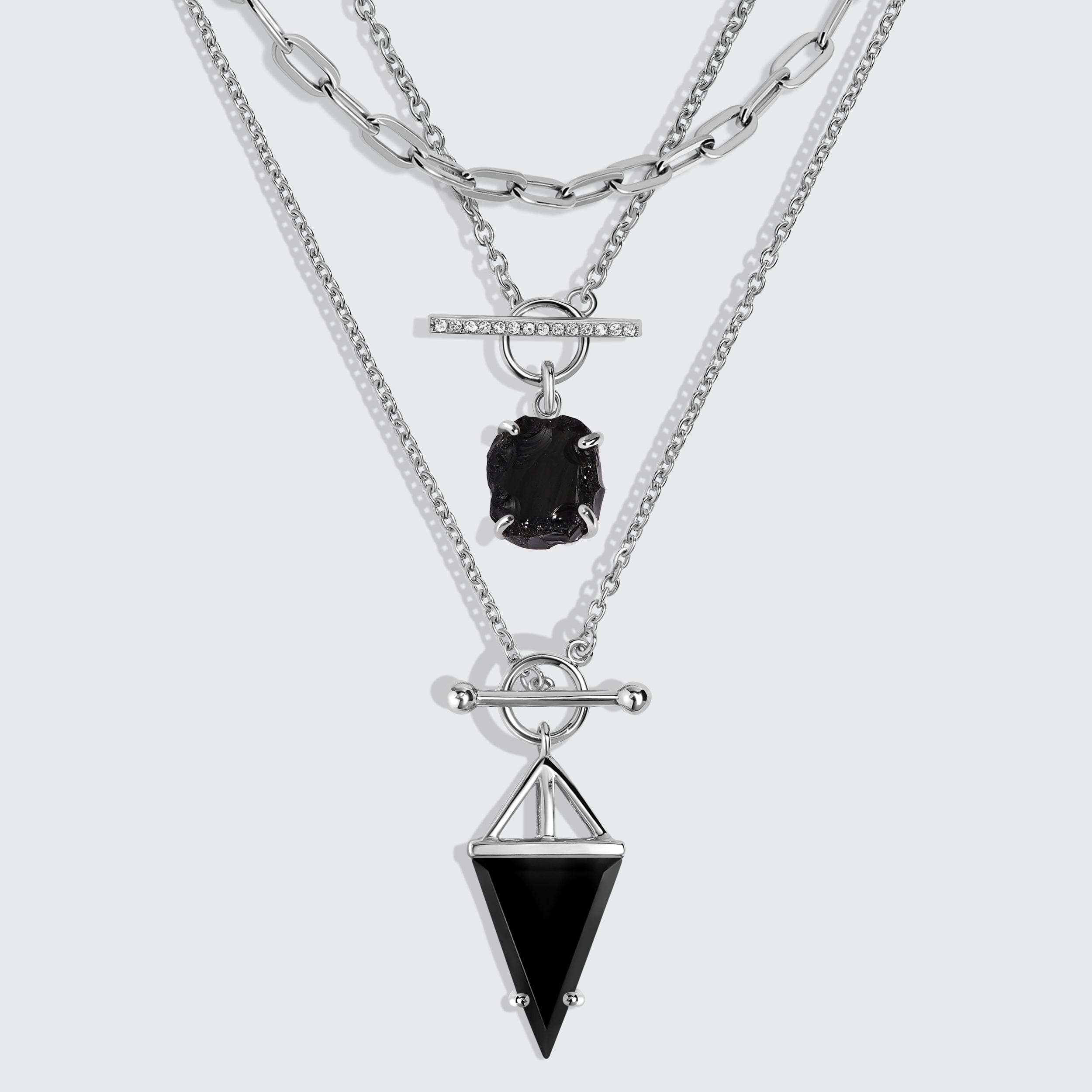 Black Obsidian Heroine T-Lock & Raw Crystal T-Lock Necklaces & Widelink Chain