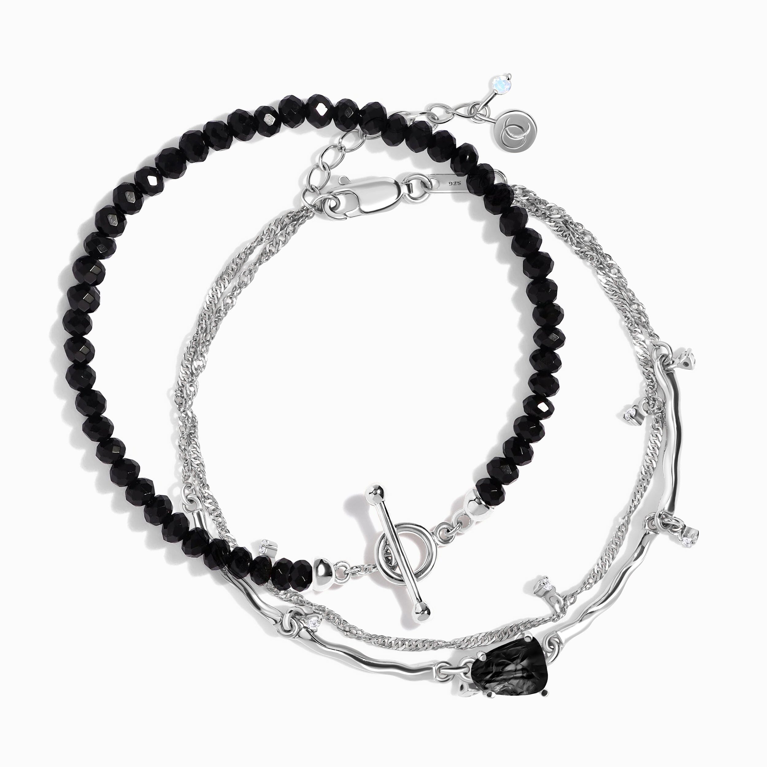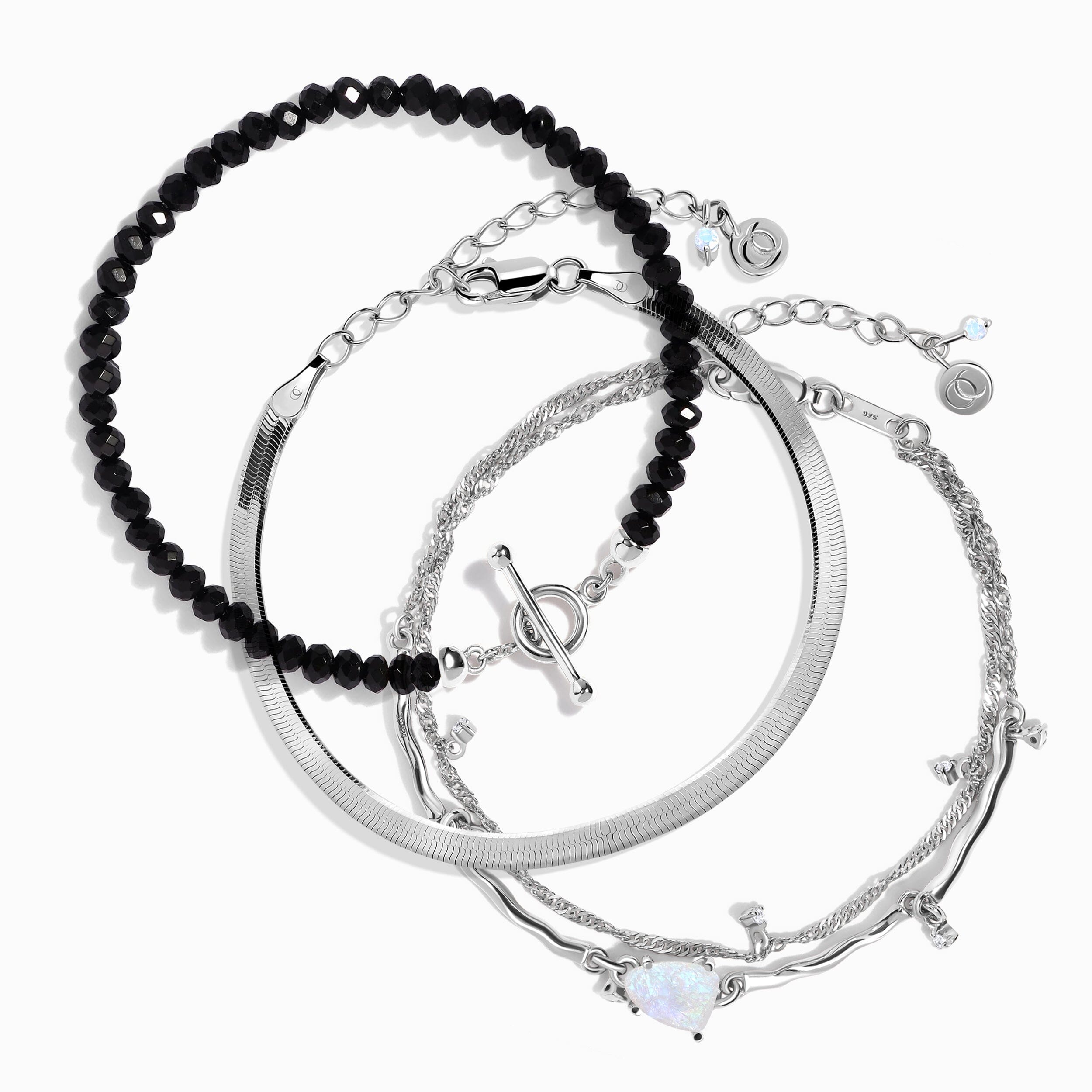 Black Obsidian & Moonstone Bracelet Stack - Deeply Connected