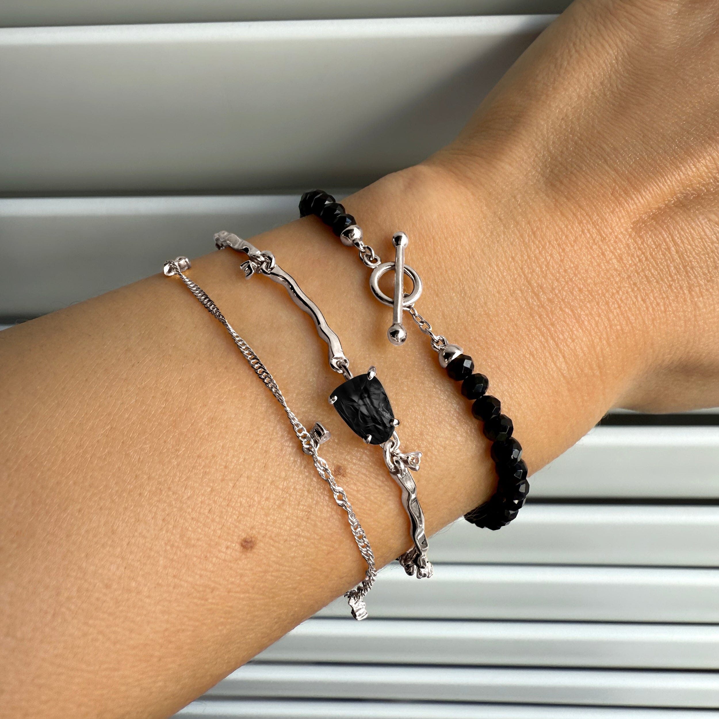 Black Obsidian Widelink Bracelet - Heroine T-Lock