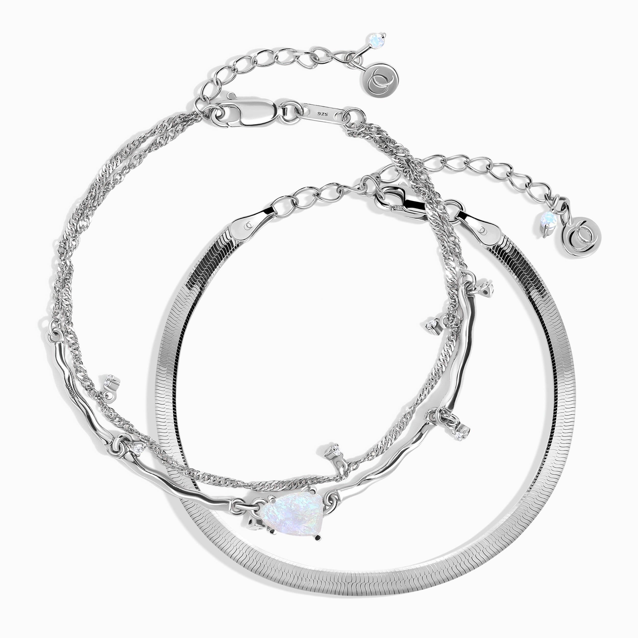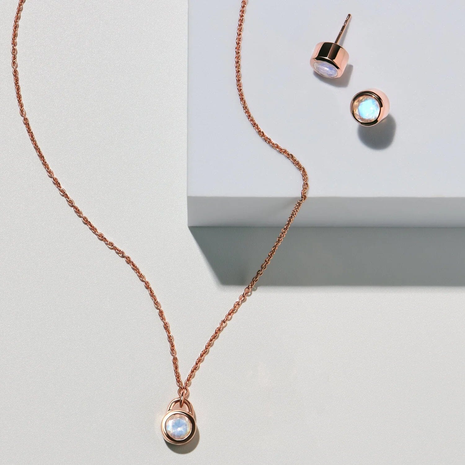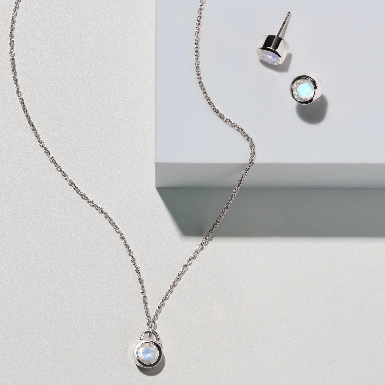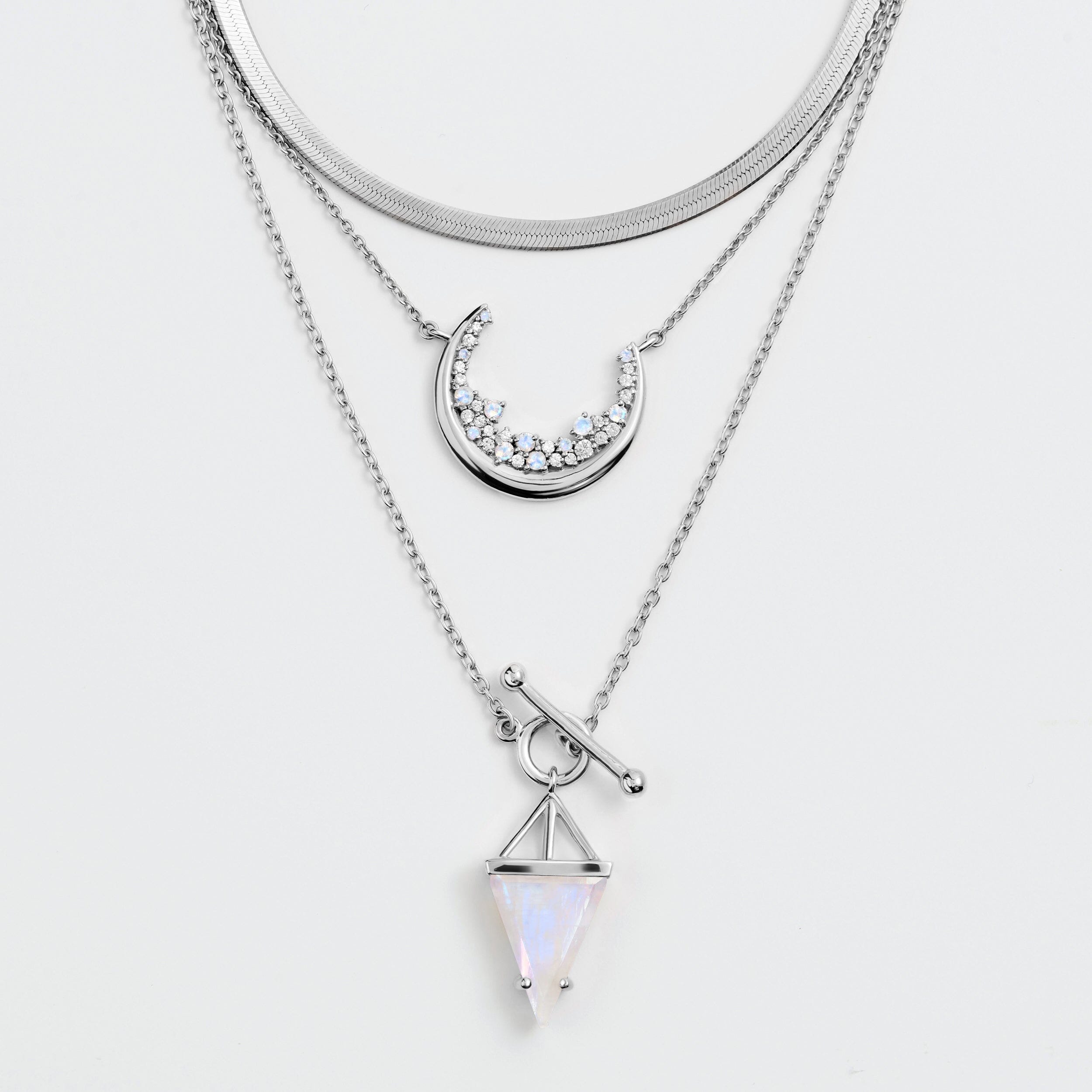 Moonstone Heroine T-Lock Necklace & Herringbone Chain