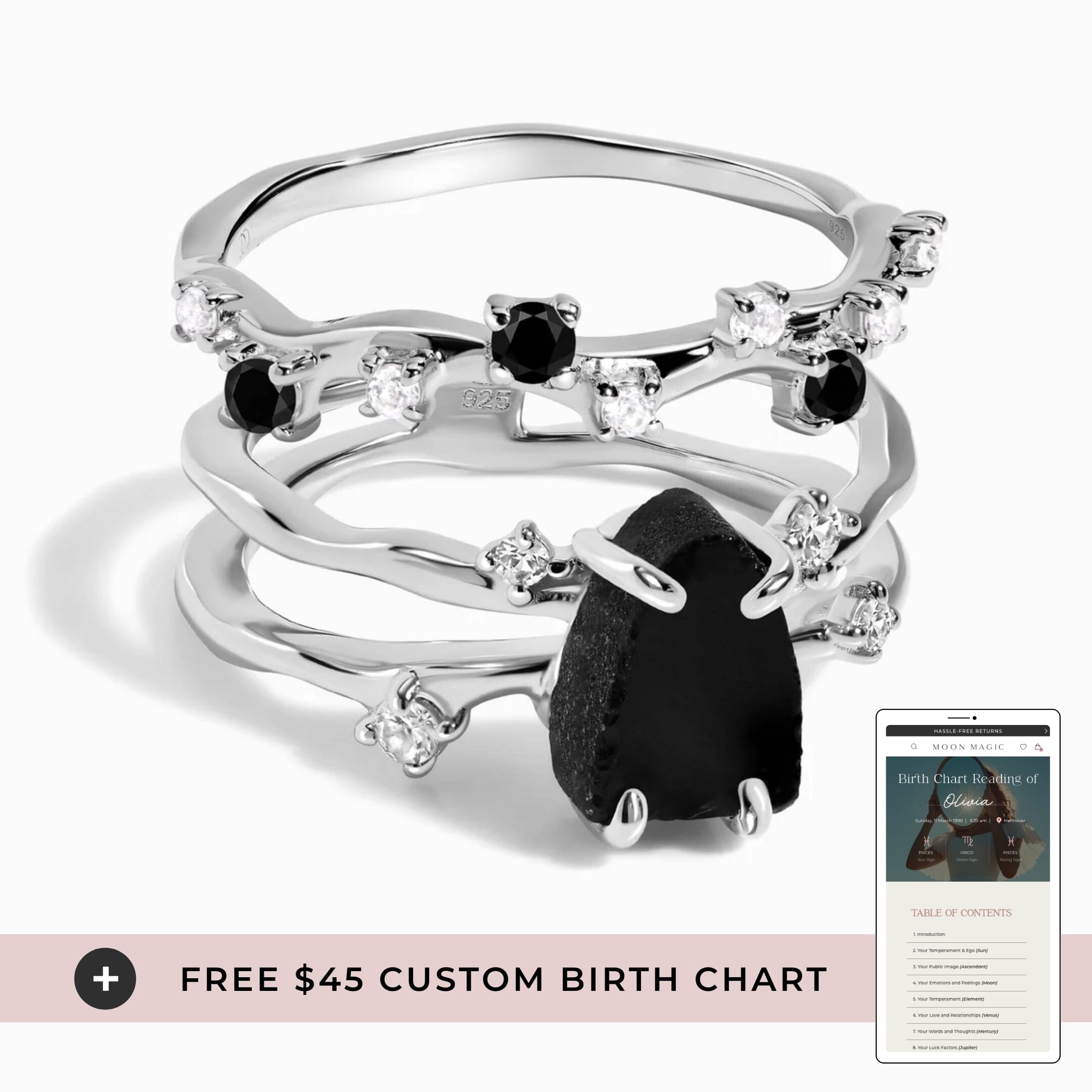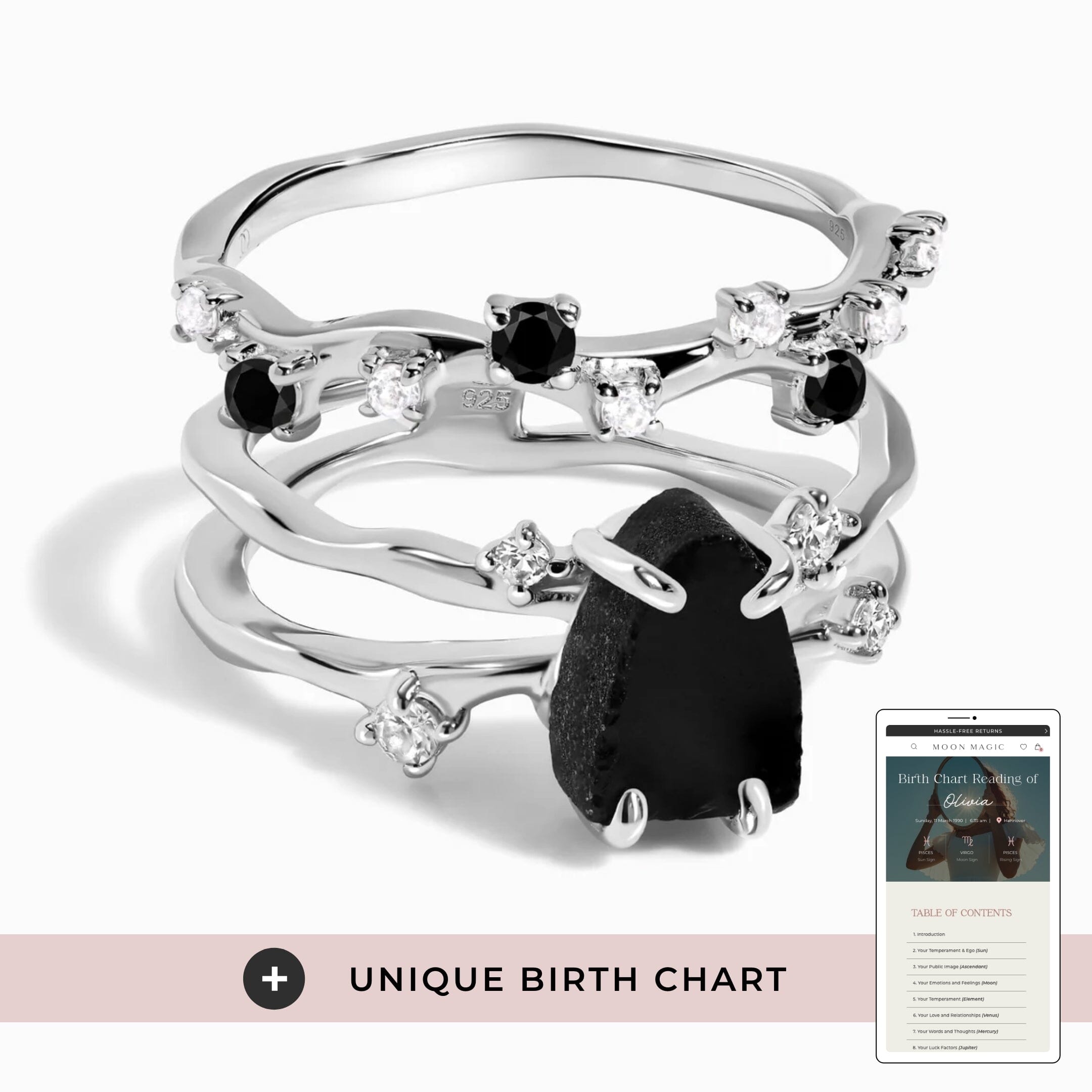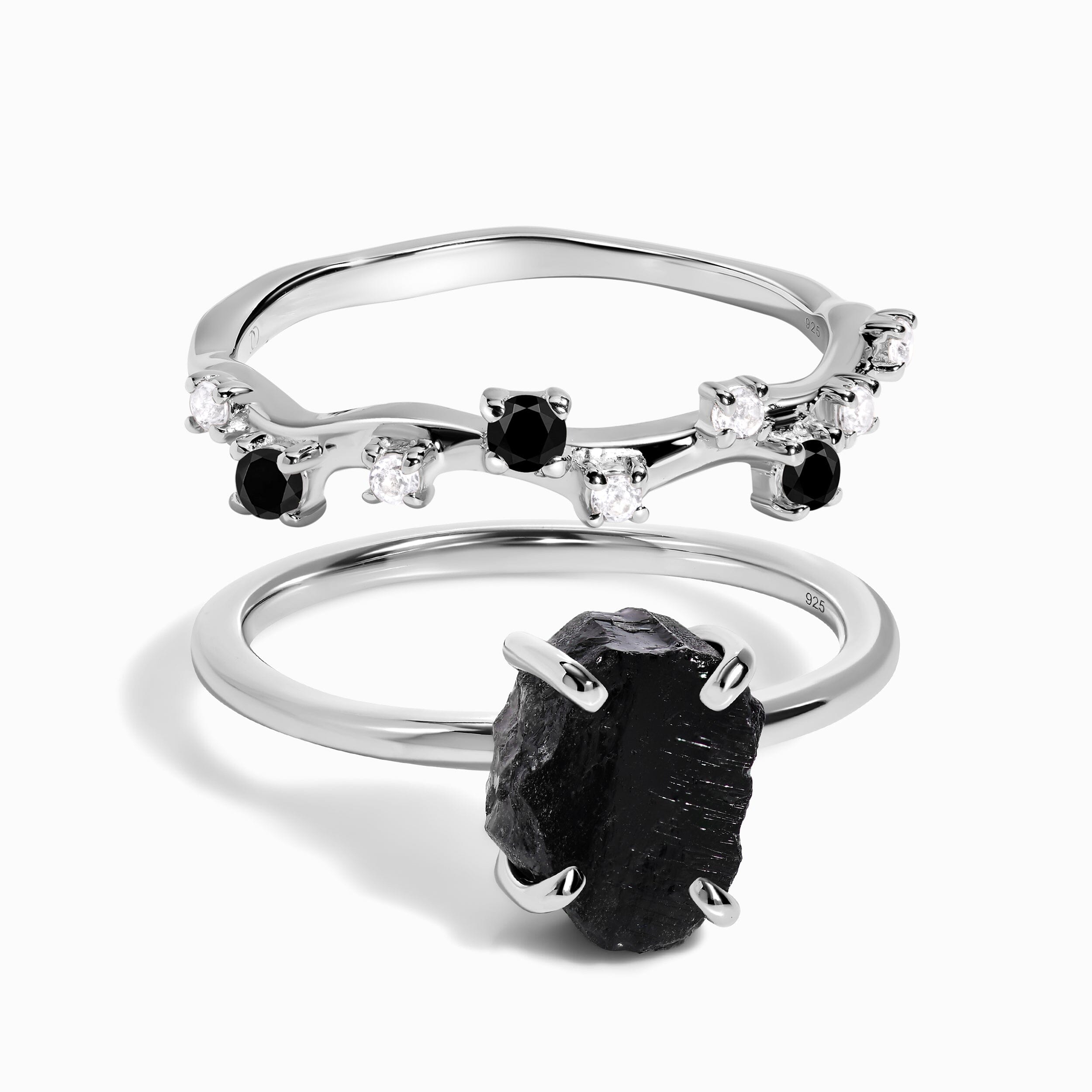 Black Obsidian Flow Ring & Black Onyx Stardust Band