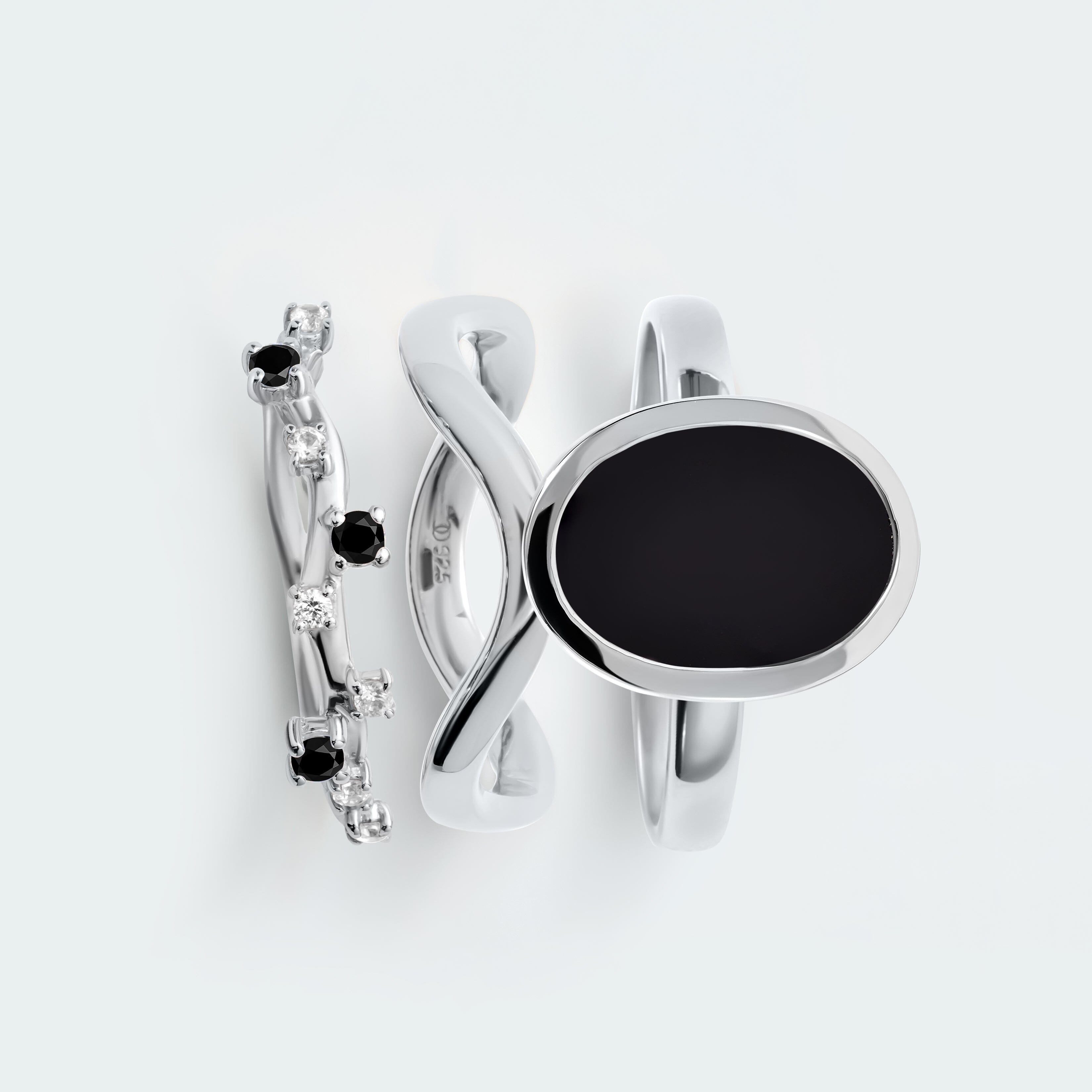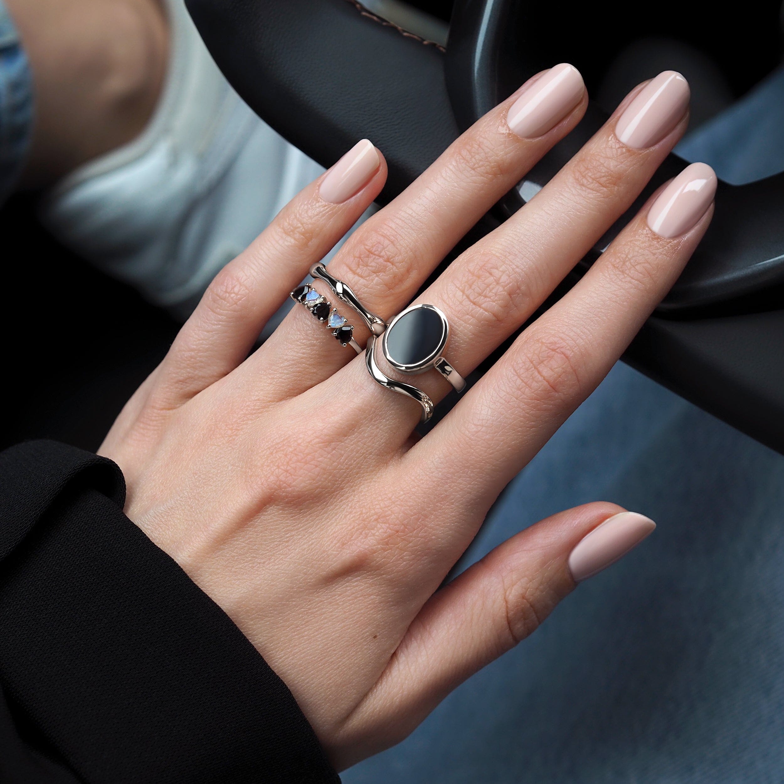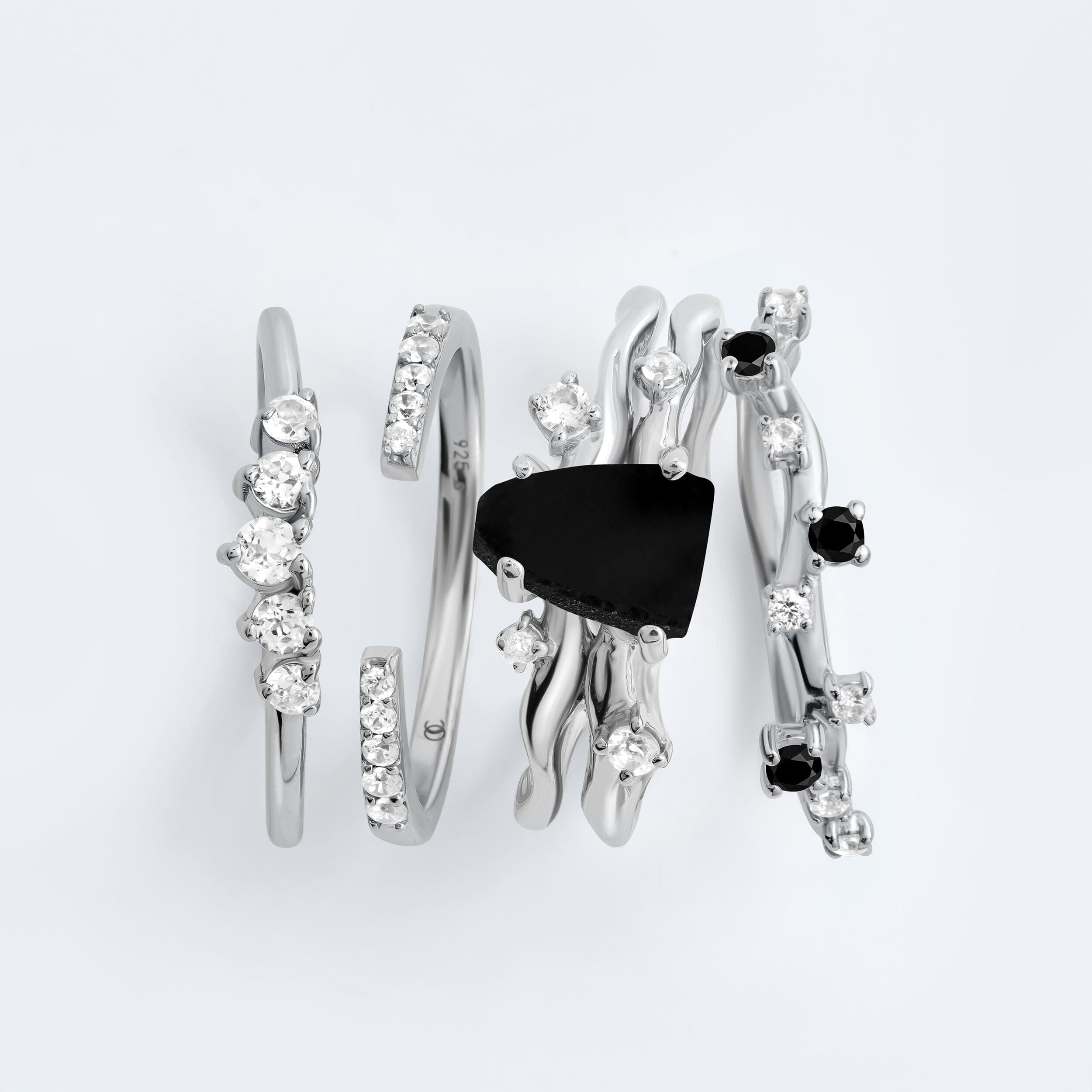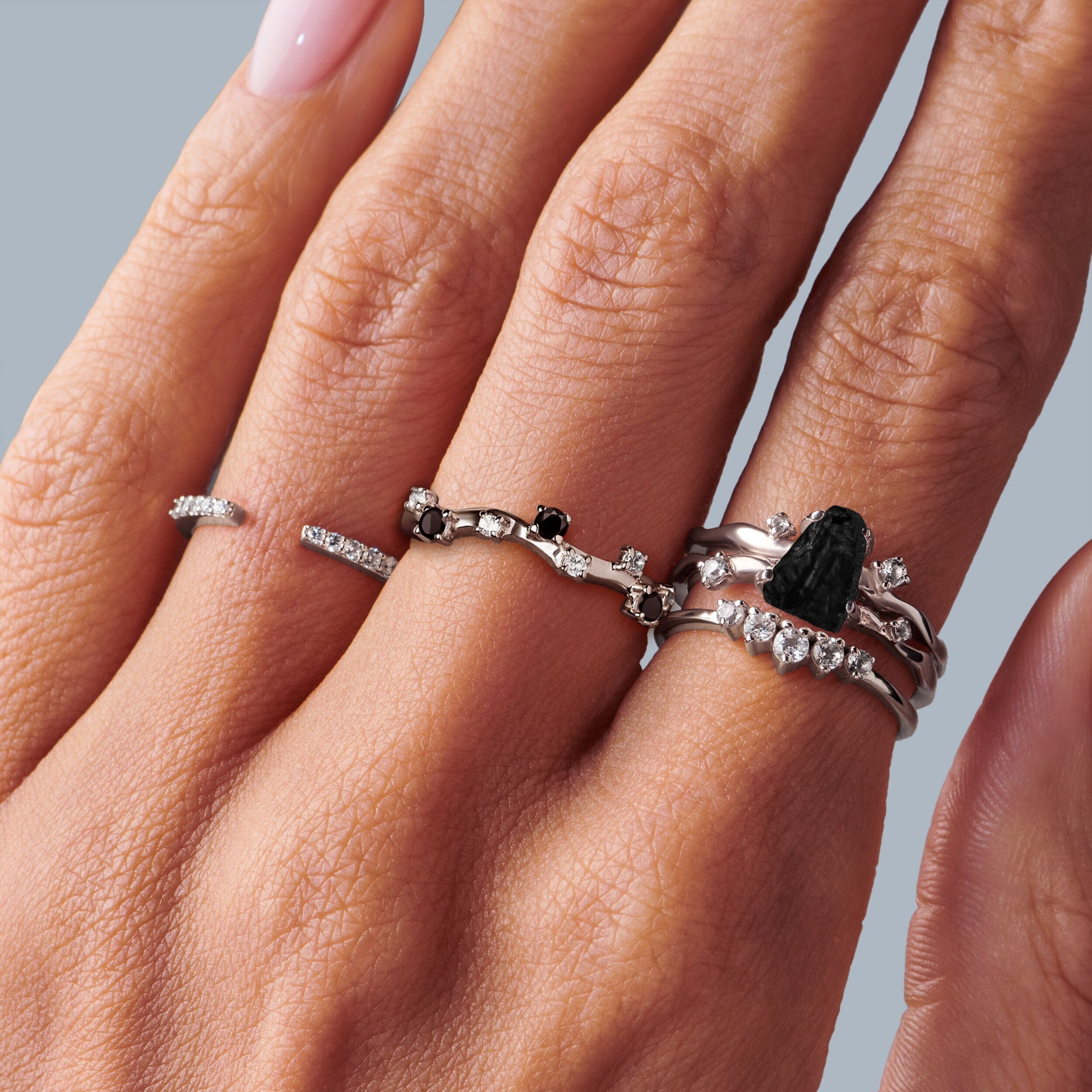 Black Obsidian Flow Ring & Black Onyx Stardust Band
