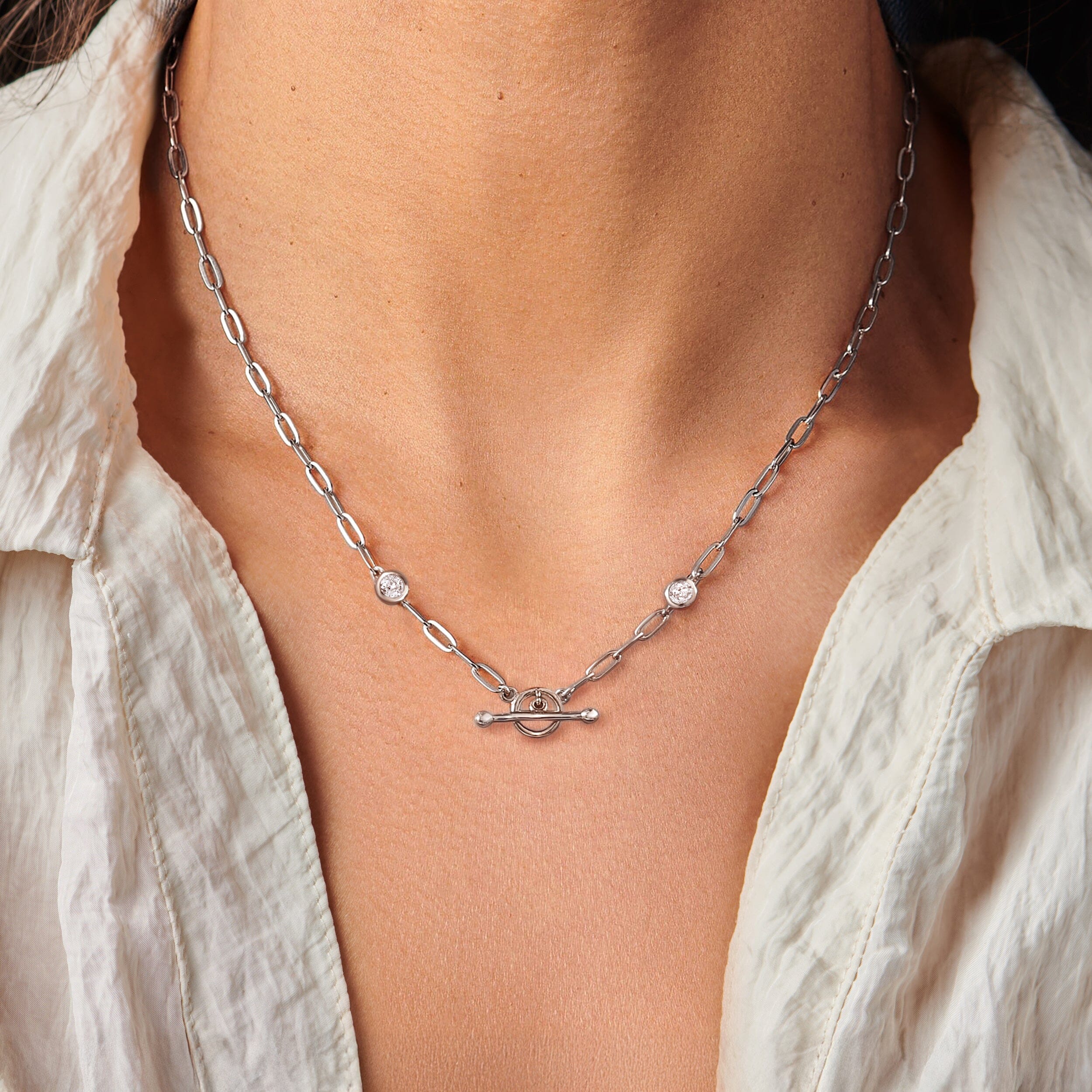 White Zircon Widelink Necklace - Talia T-Lock Look