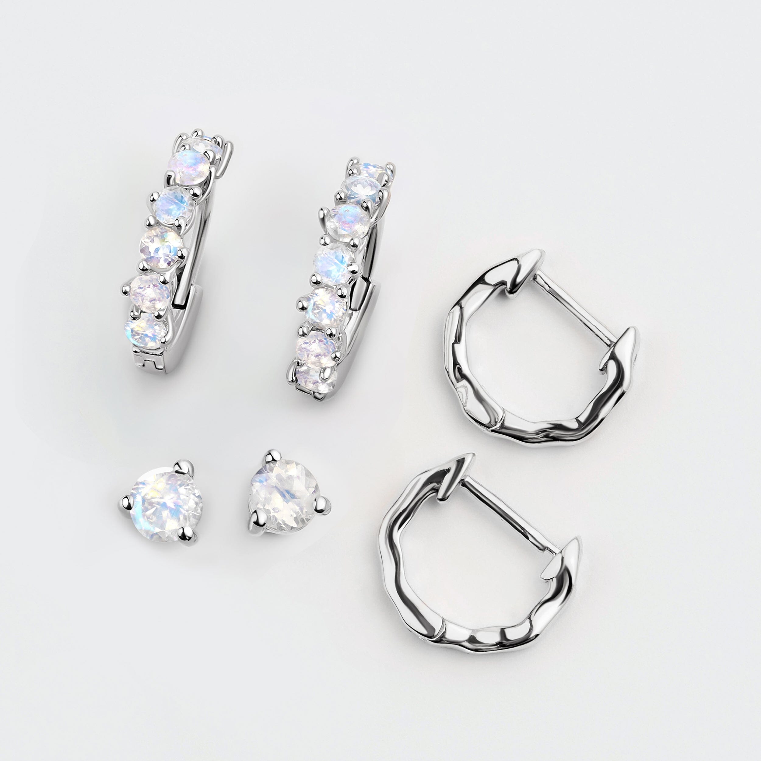 Moonstone & Opal Hoop Earring Set - High Vibe Trio