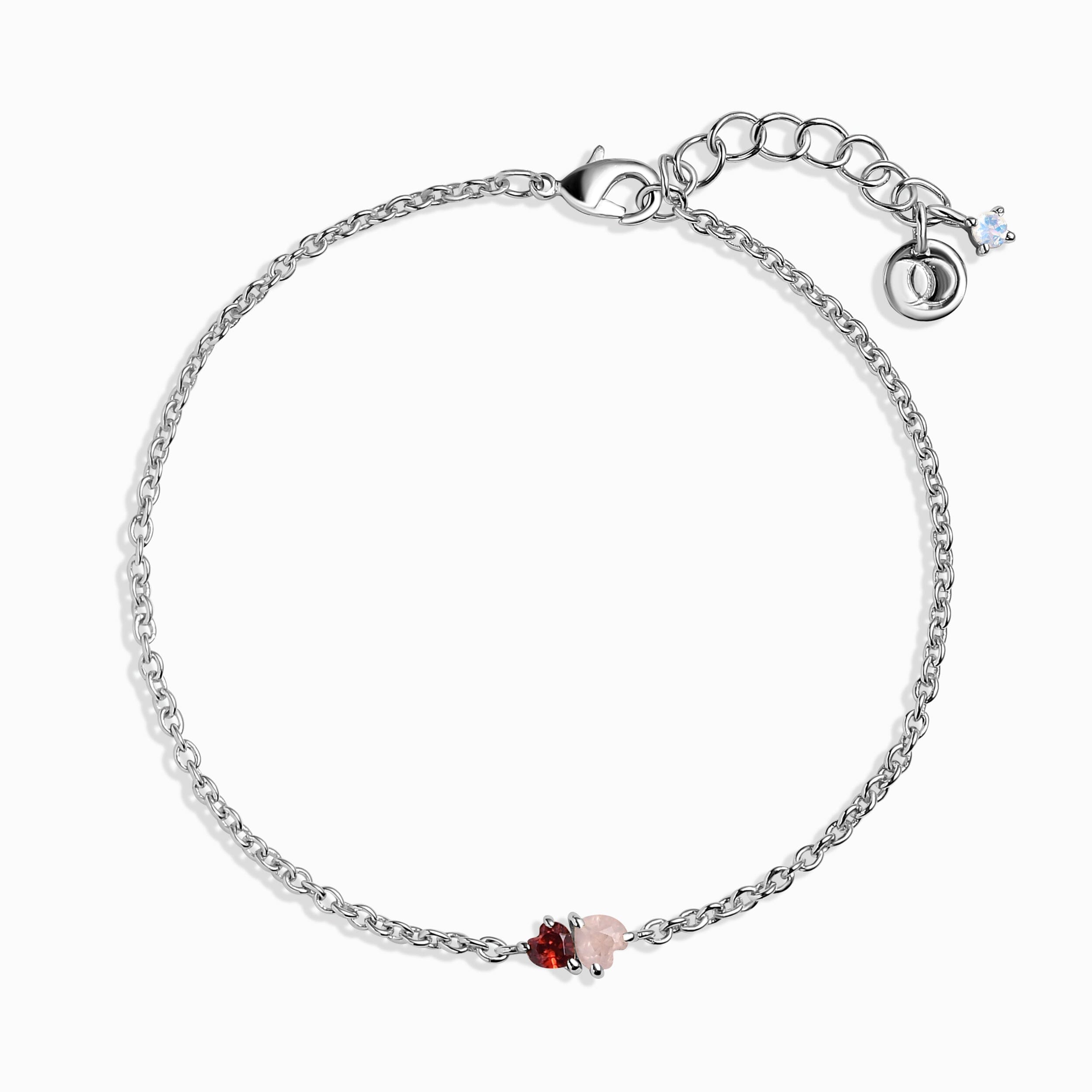 Rose Quartz & Garnet - Toi Et Moi Bracelet (Hearts)