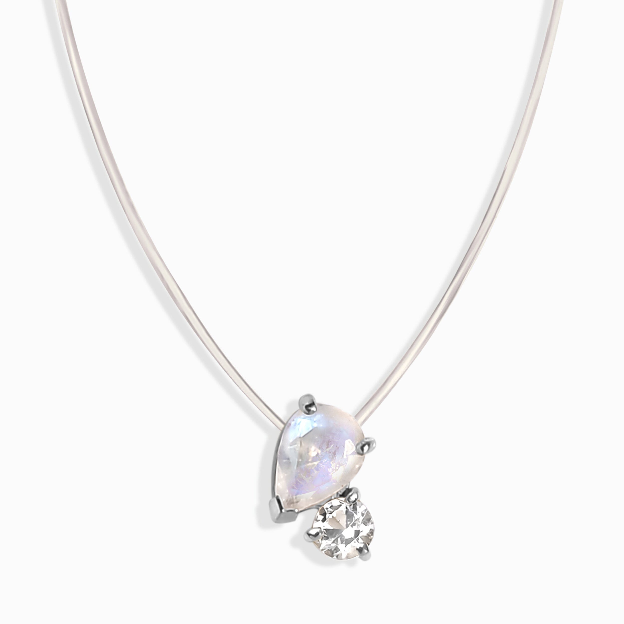 Floating Necklace - Toi Et Moi Moonstone & White Topaz