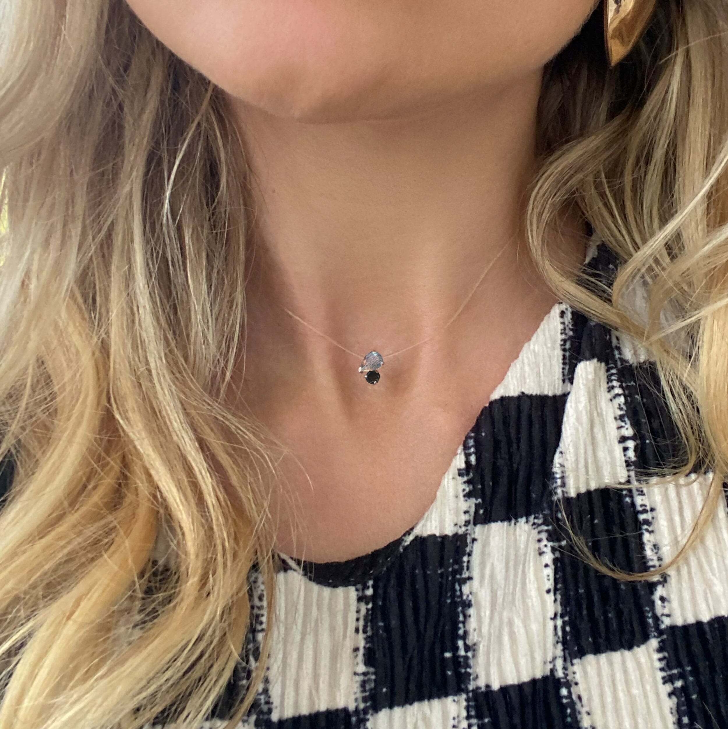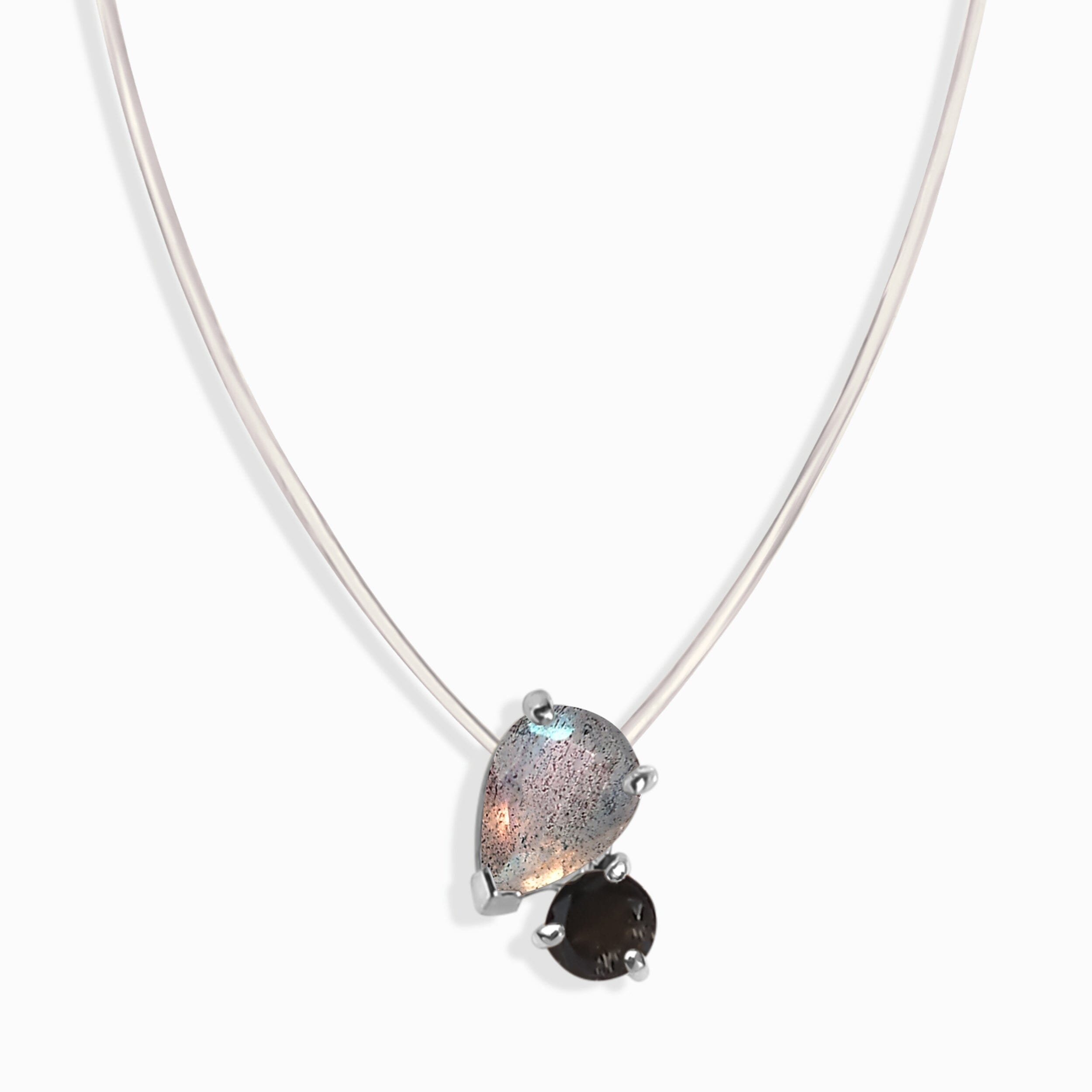 Floating Necklace - Toi Et Moi Labradorite & Black Obsidian