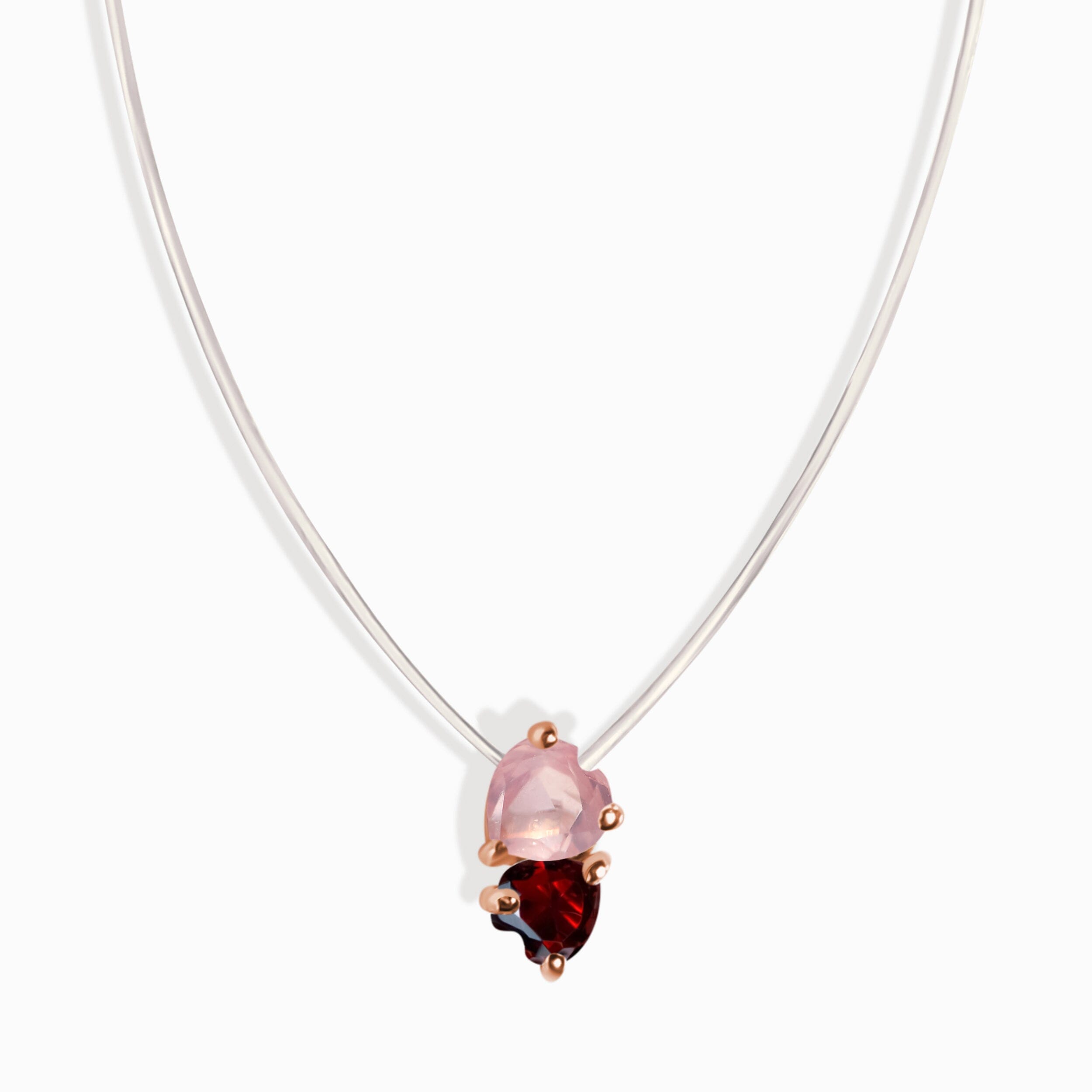 Rose Quartz & Garnet Necklace - Floating Hearts