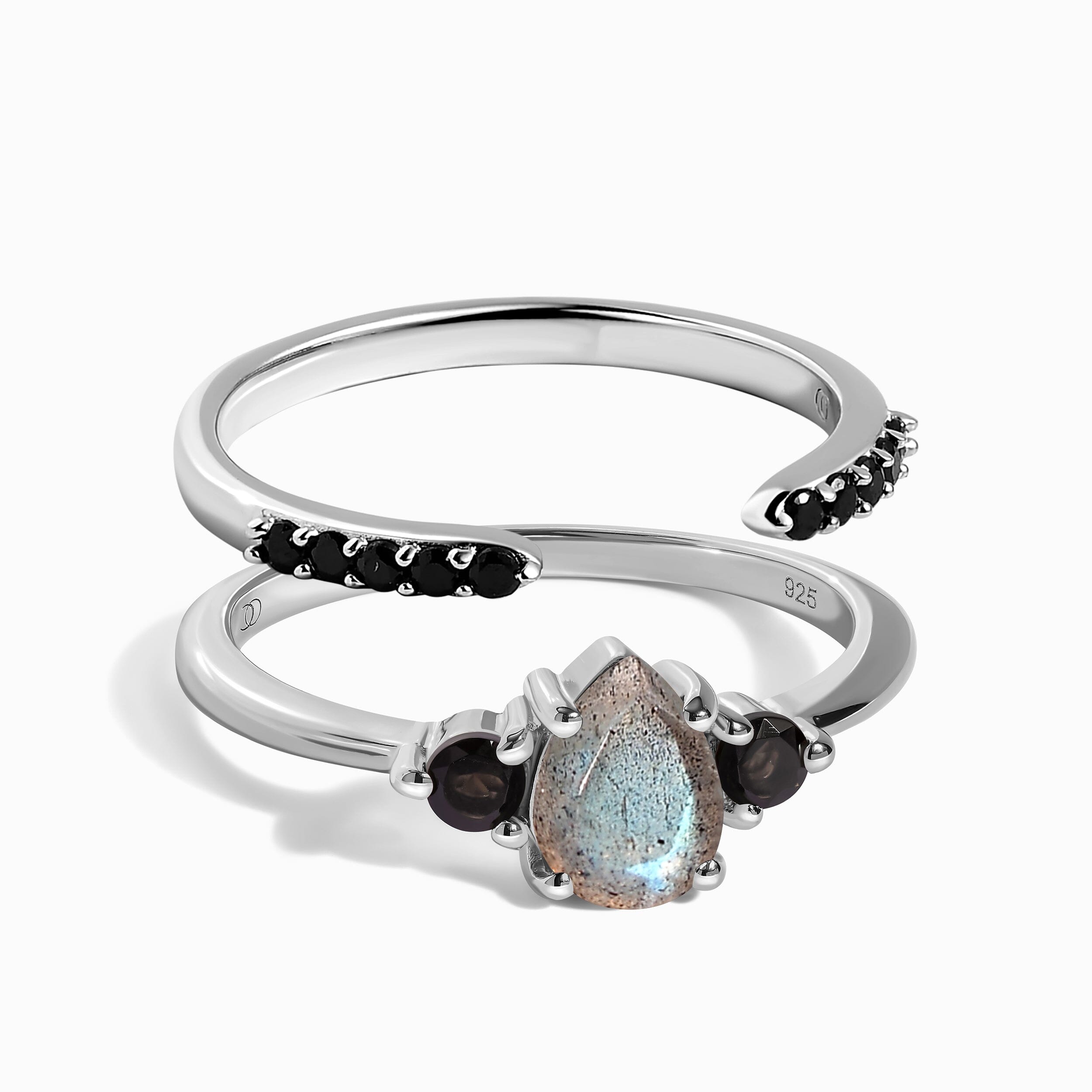 Black Obsidian Labradorite Lania Ring & Black Spinel Twinkling Band