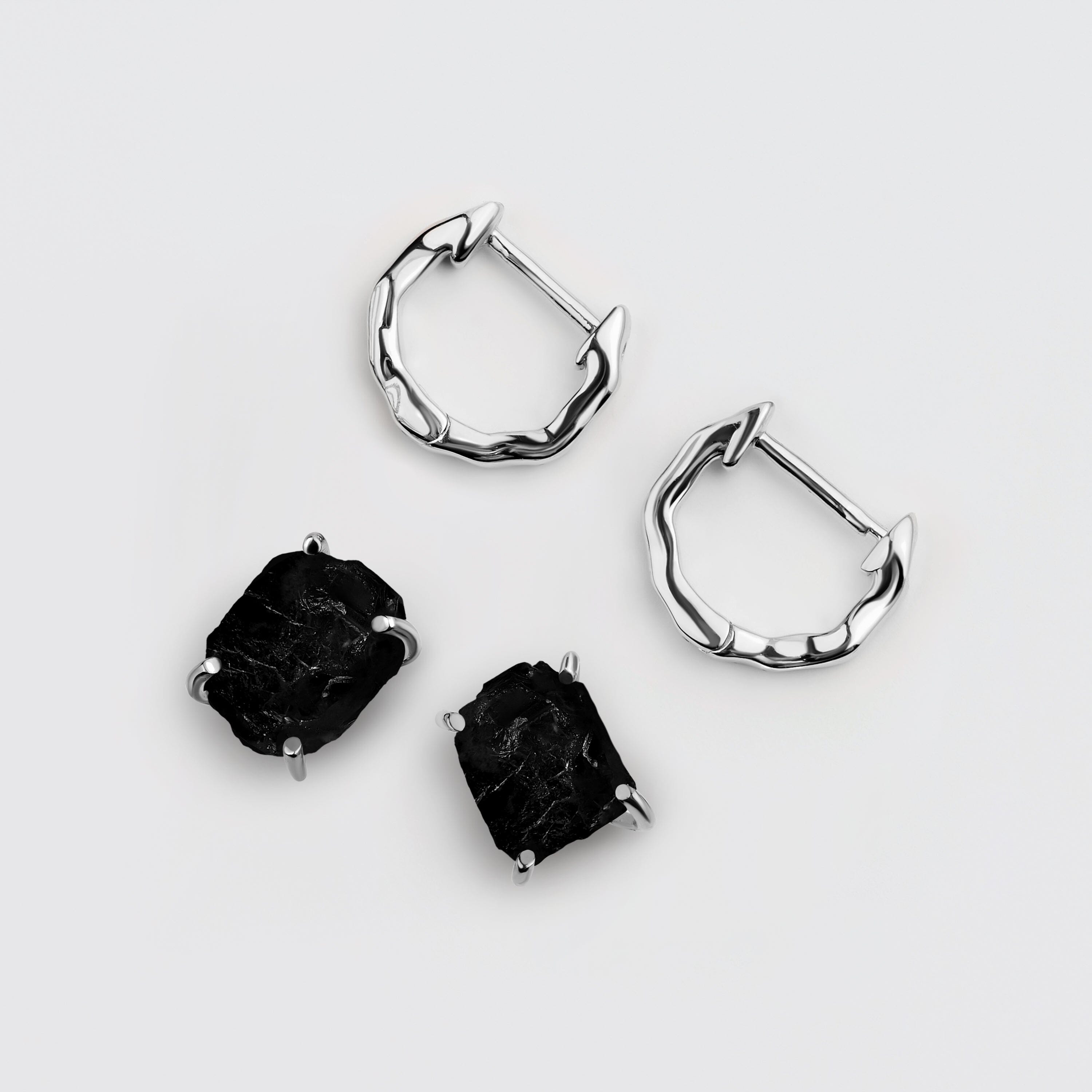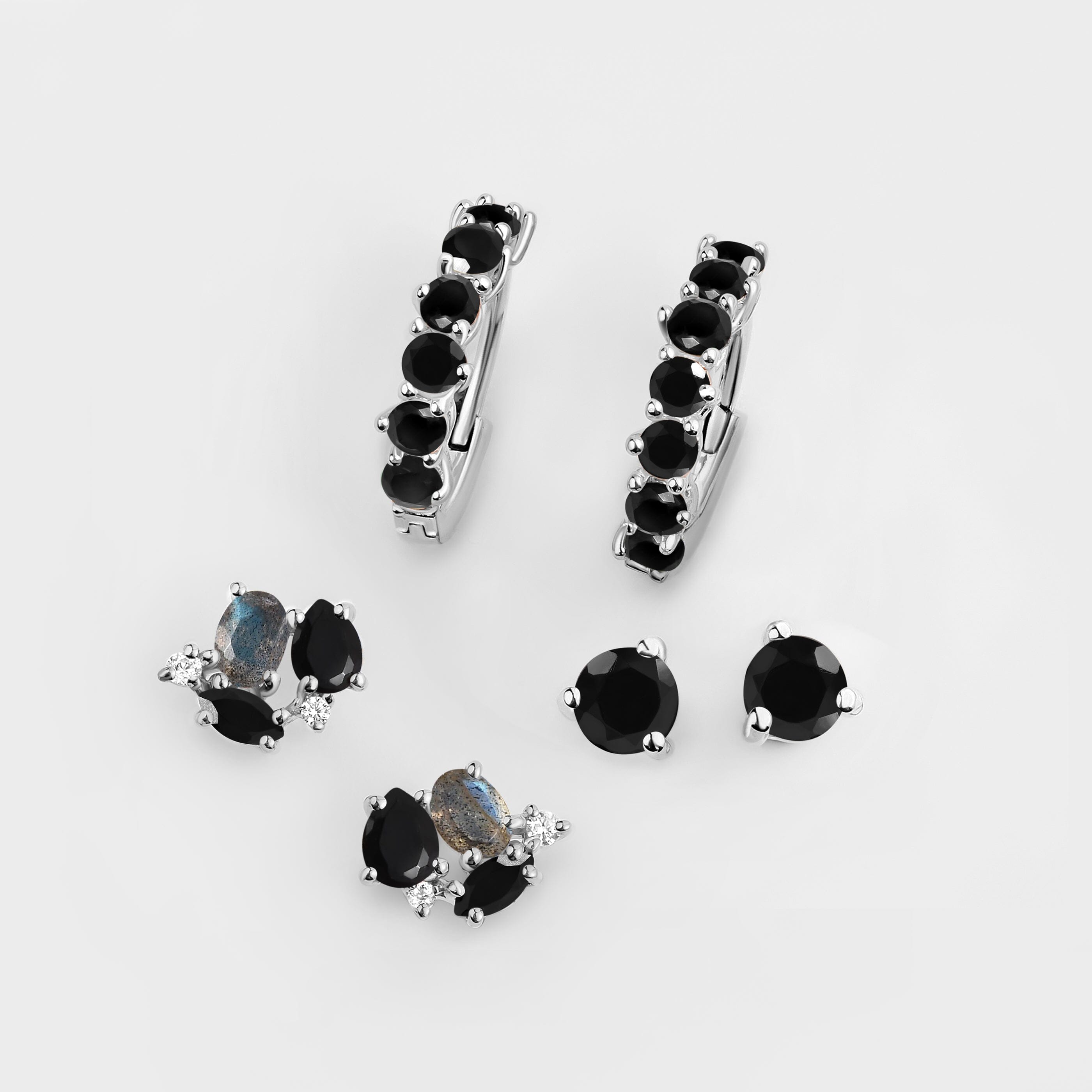 Black Onyx & Black Obsidian Hoop Earring Set - Classic Trio