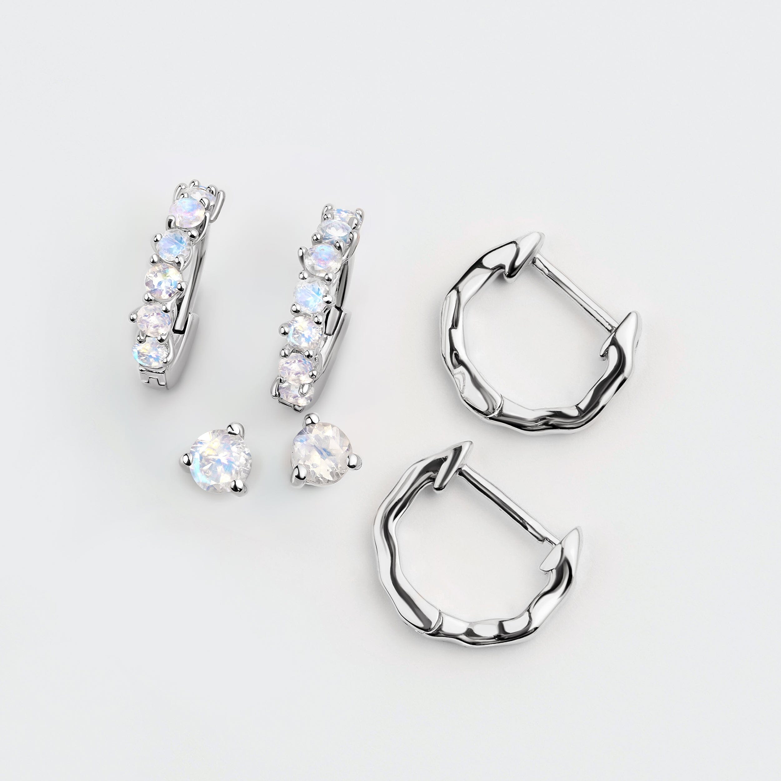 Moonstone Diamond Earrings - Aquarius Zodiac Constellation