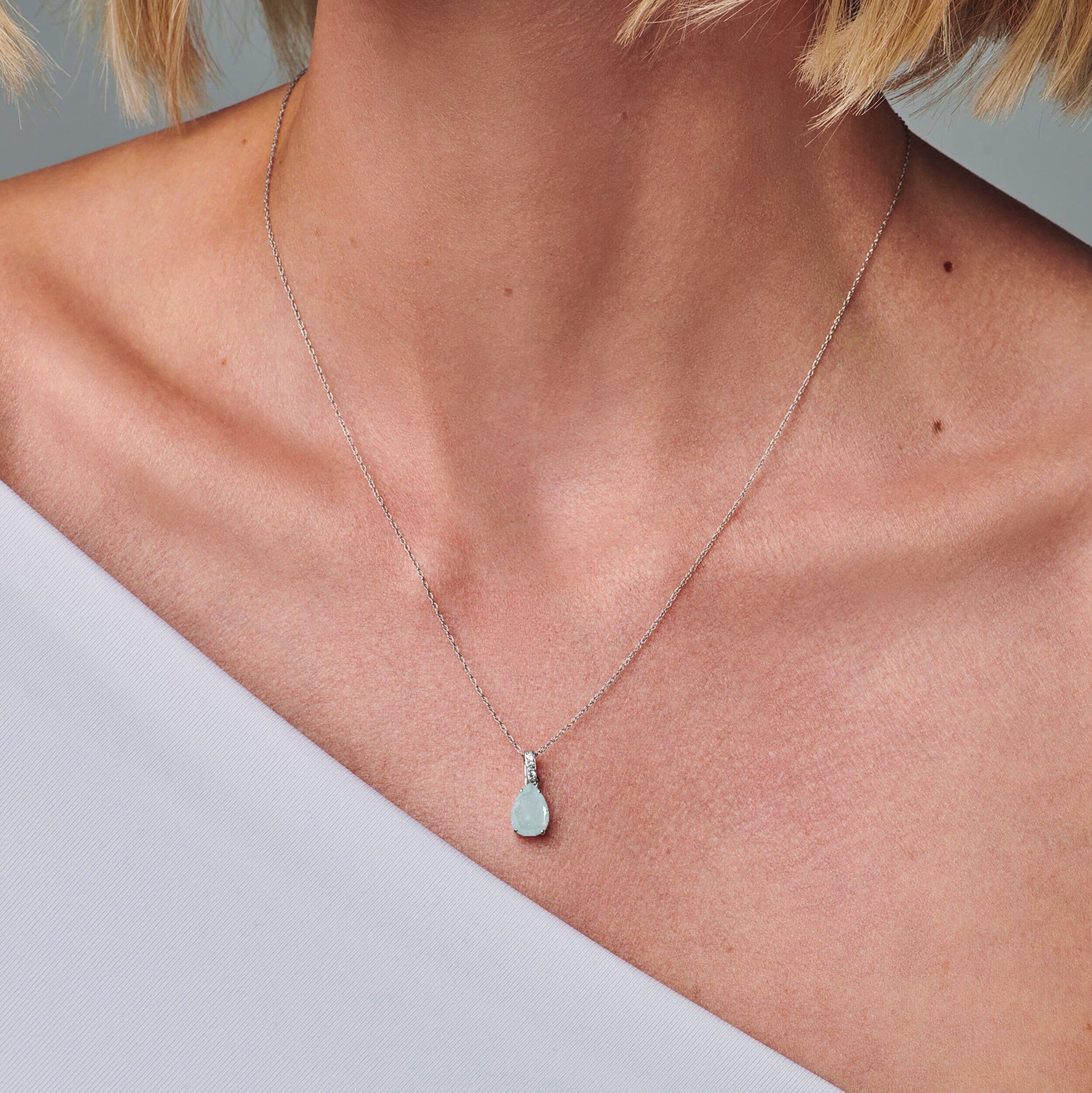 Aquamarine Diamond Necklace Sway - March Birthstone