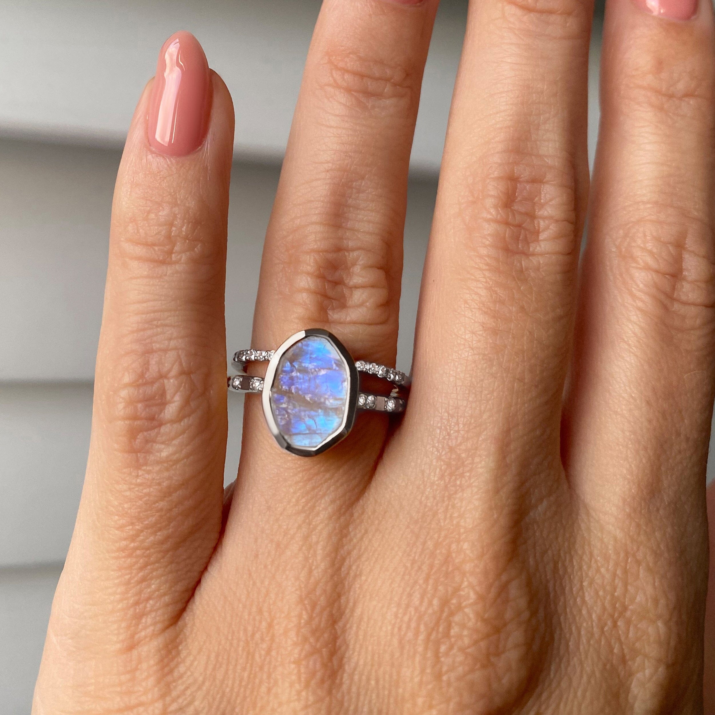 Adjustable Aquamarine Ring Flourish - March Birthstone