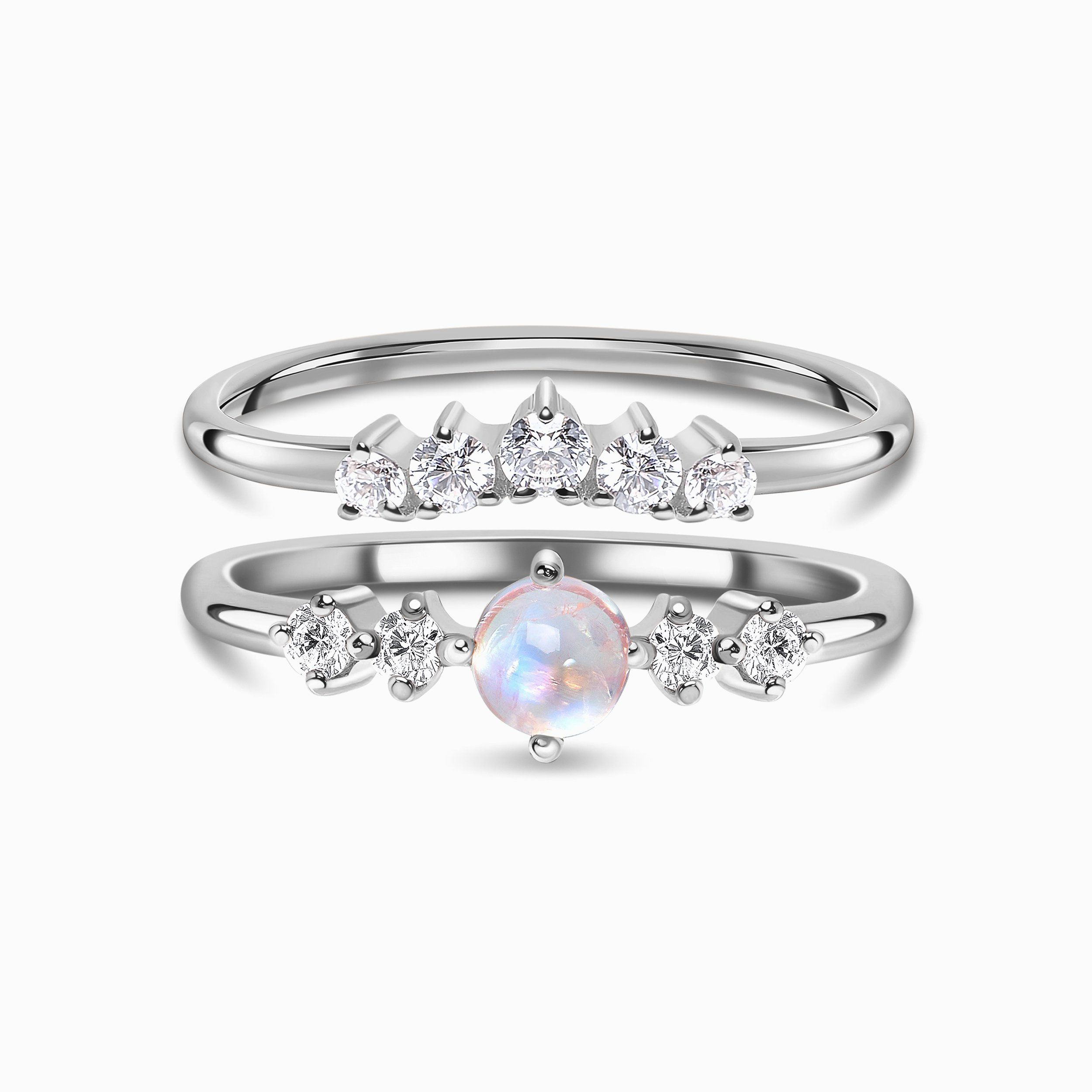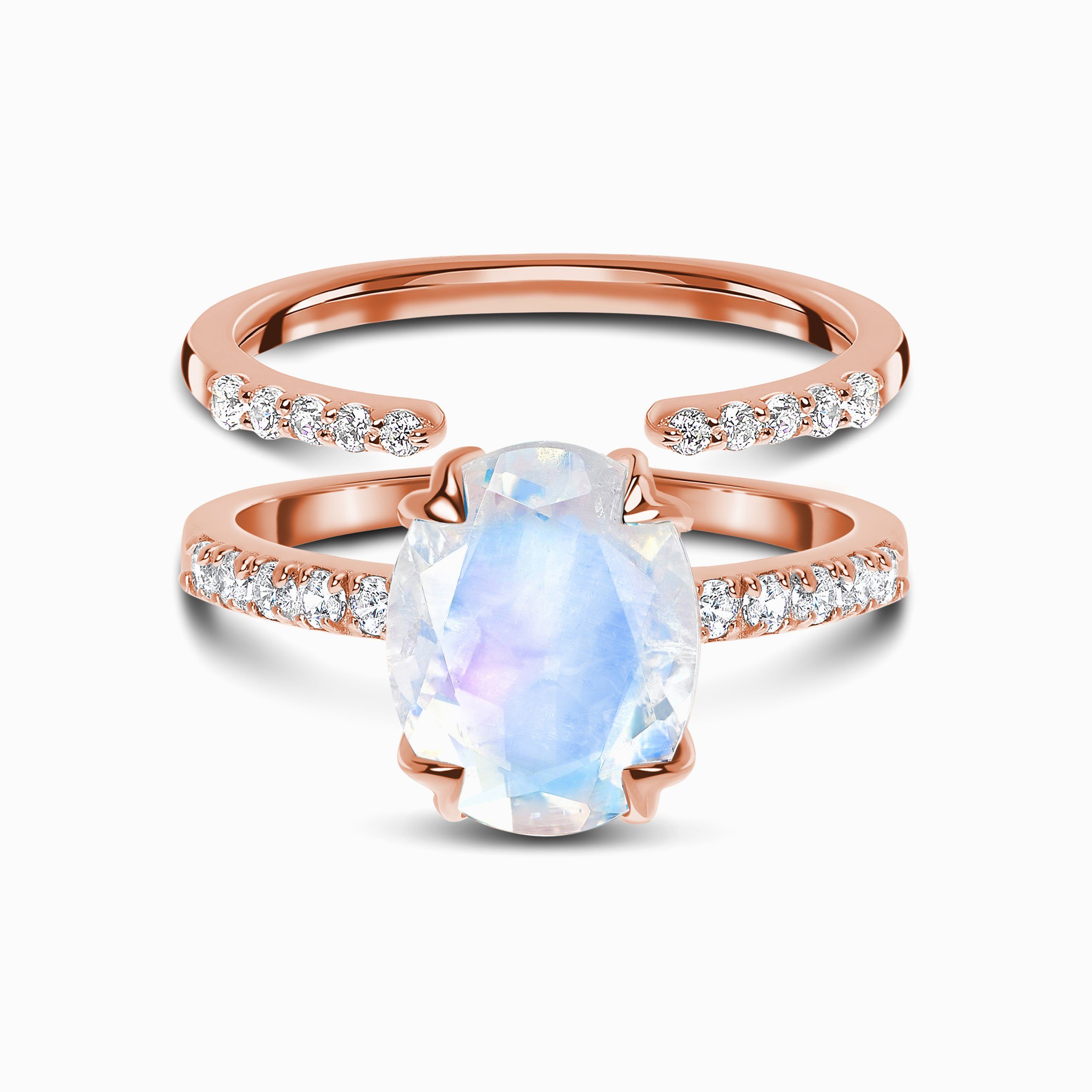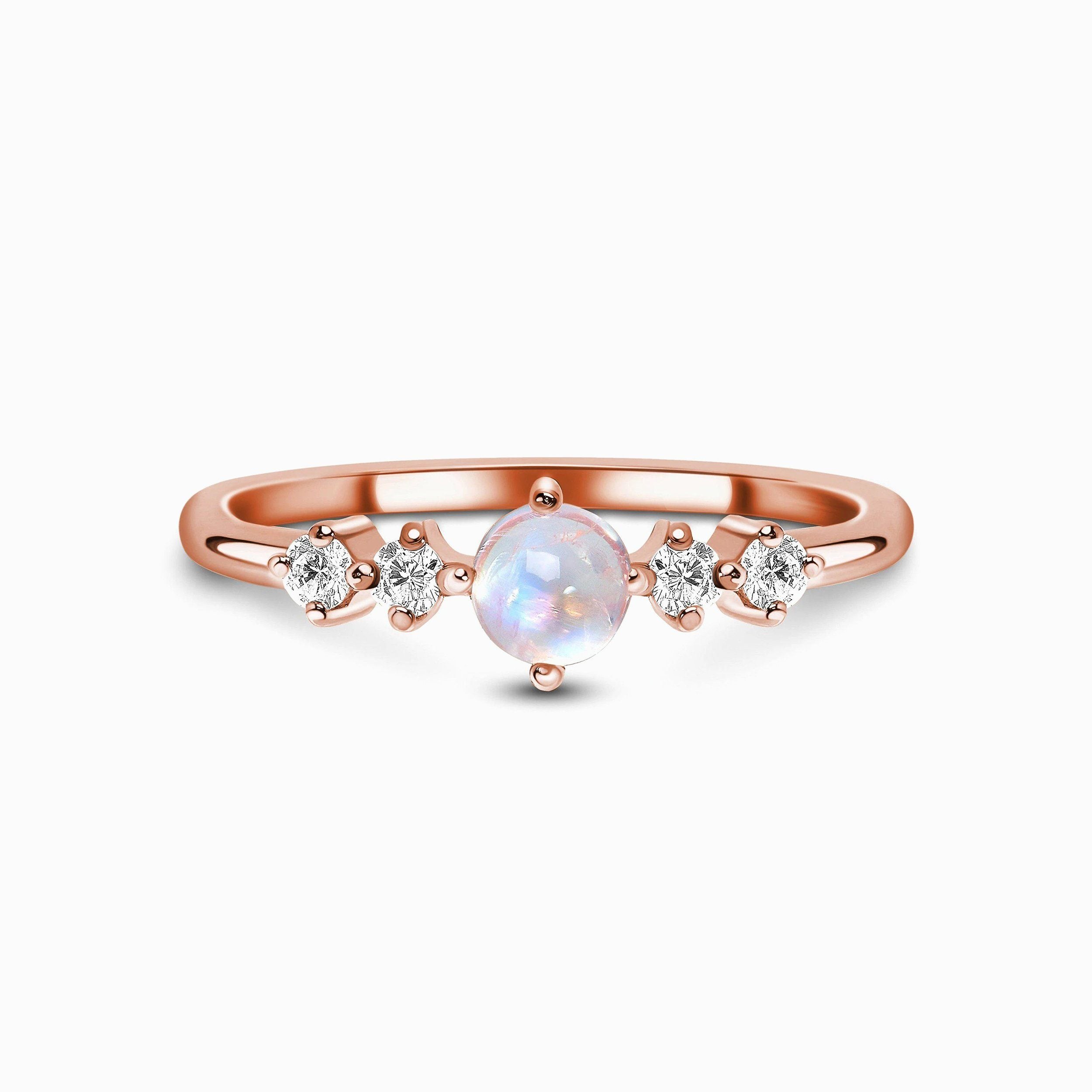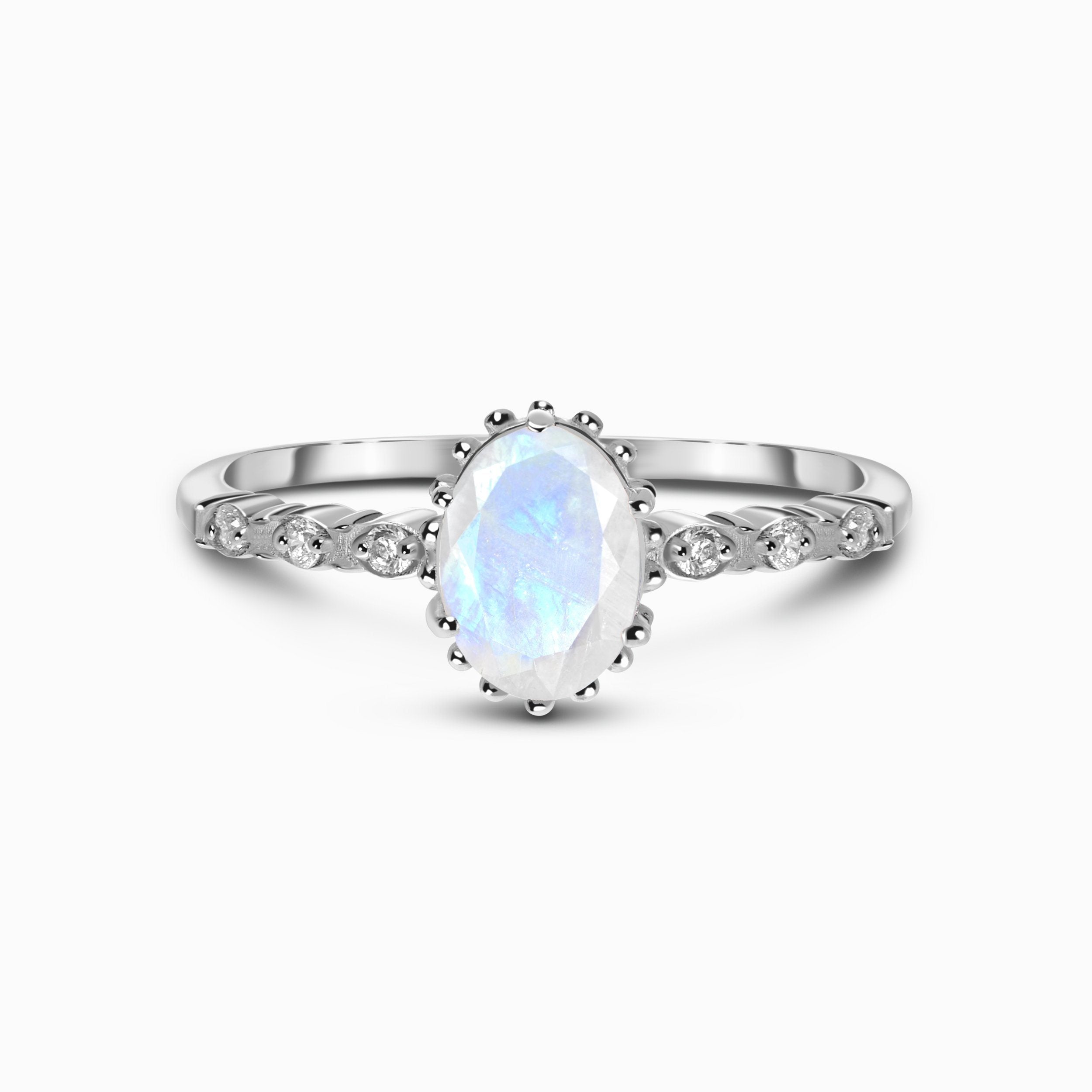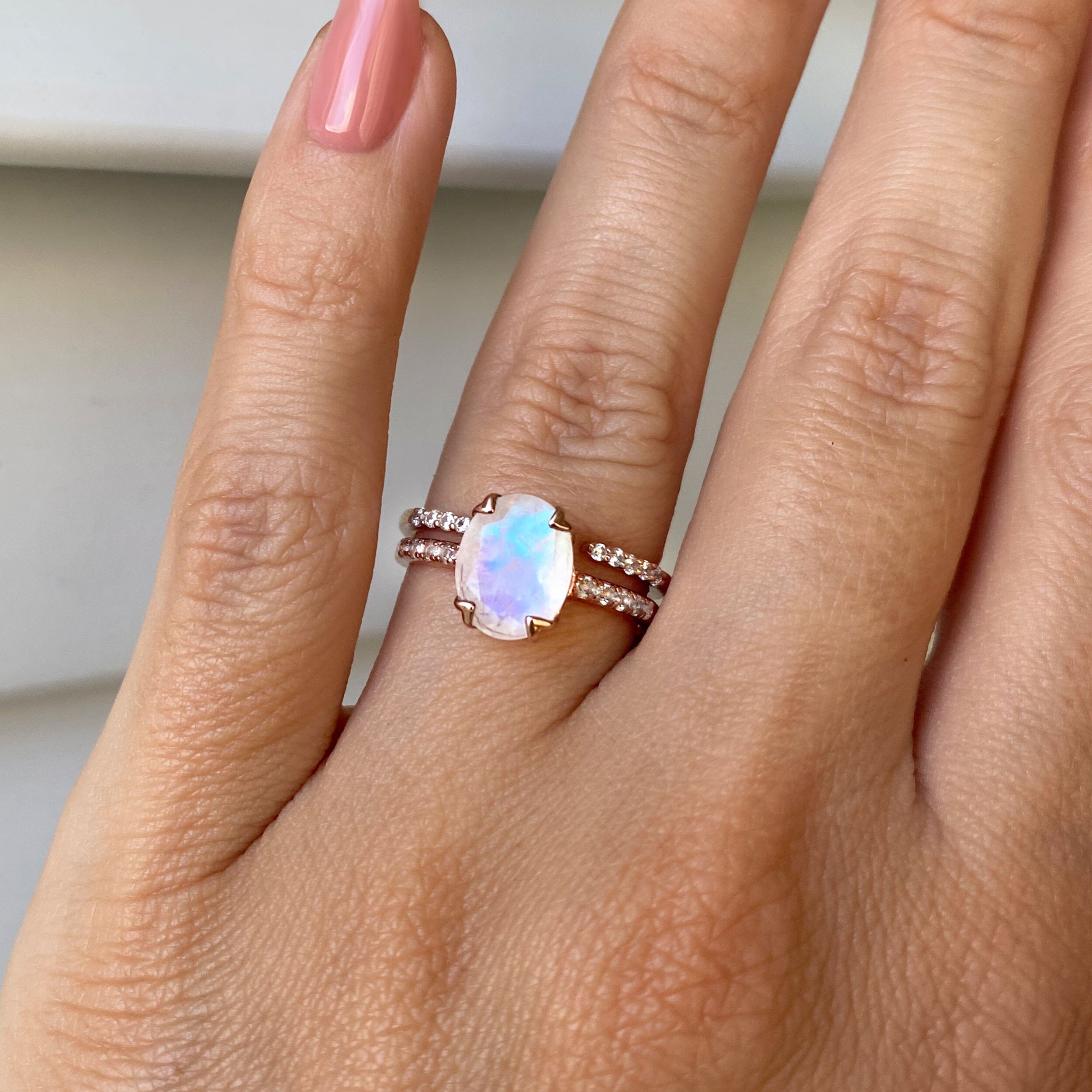 Petite Oval Rainbow Moonstone Ring - Size 8
