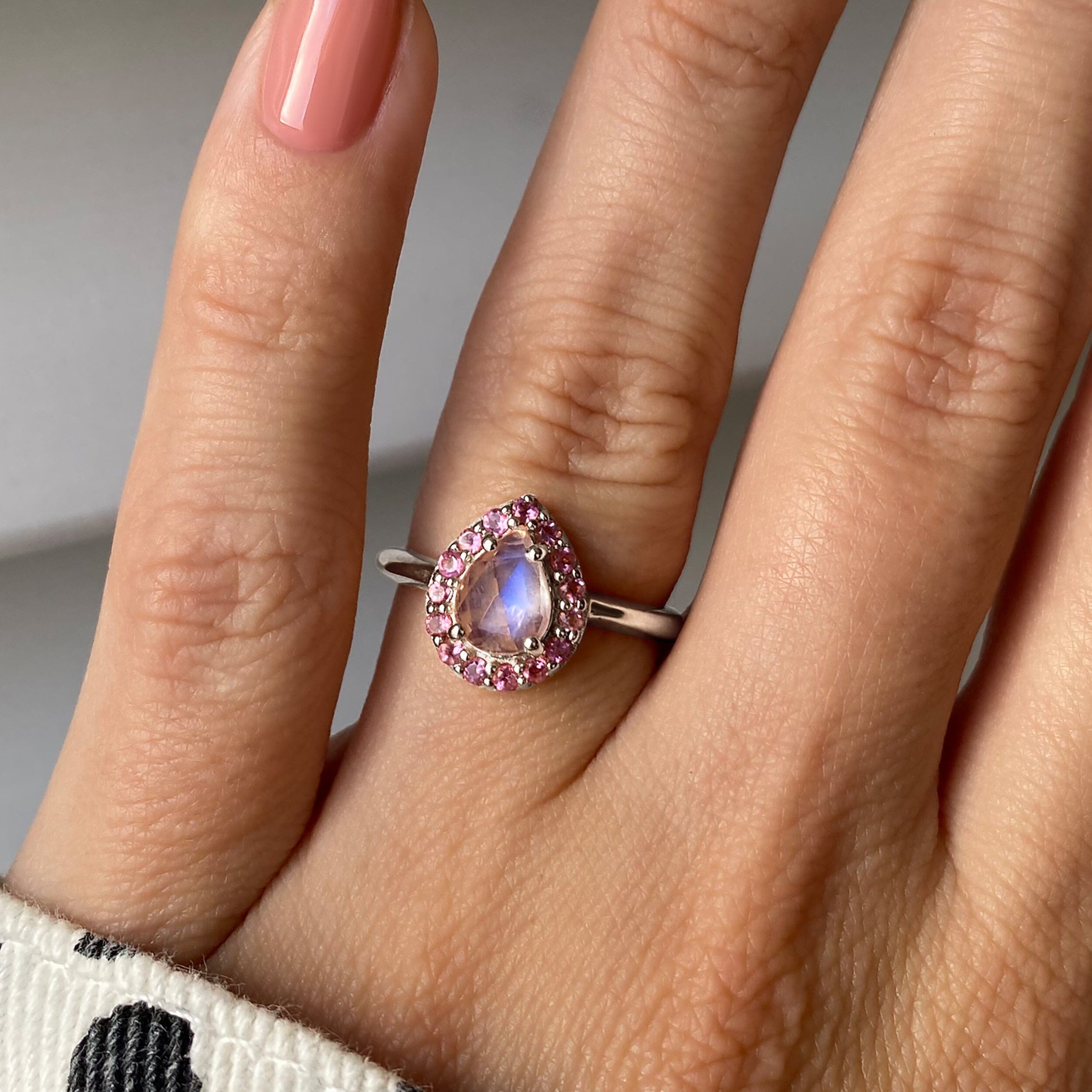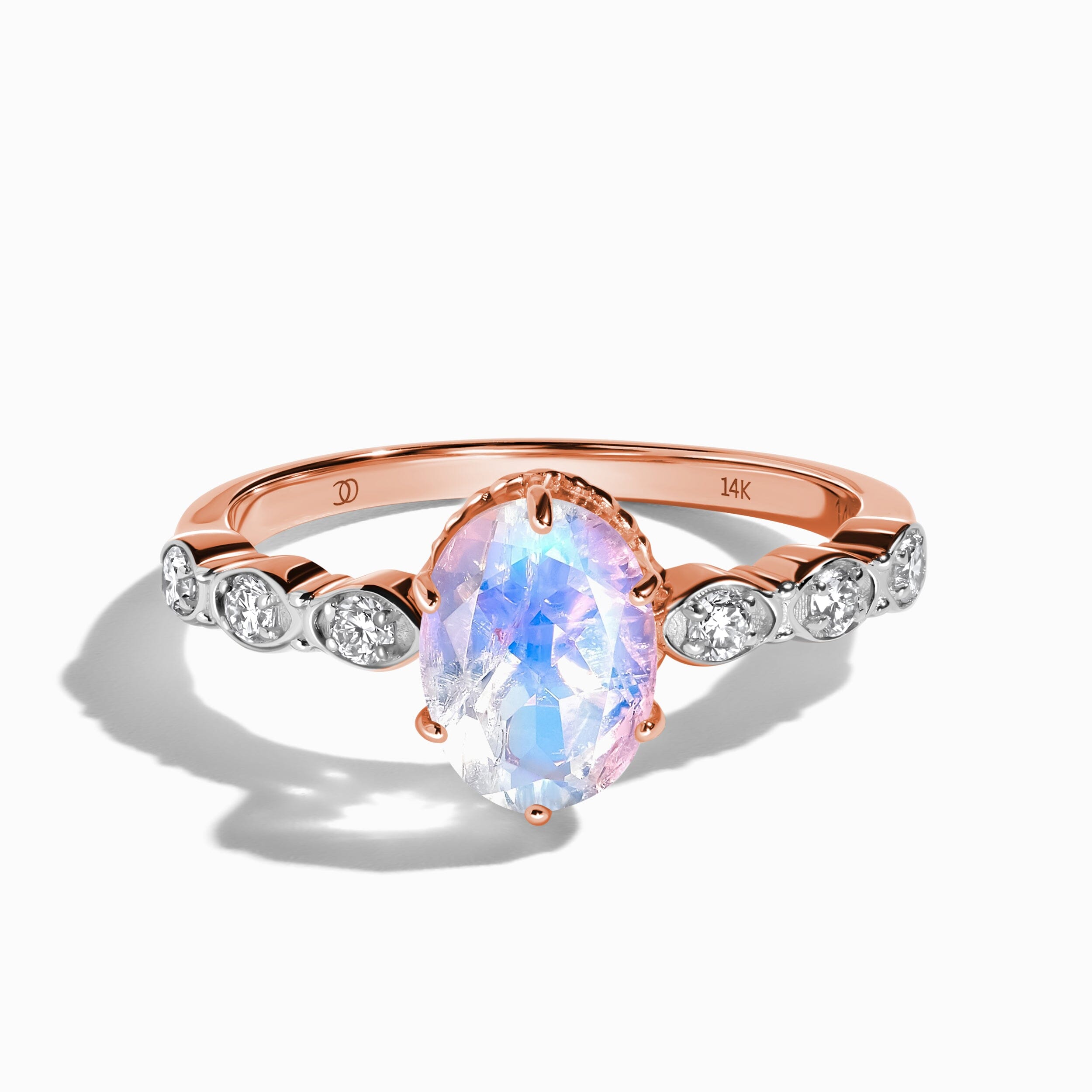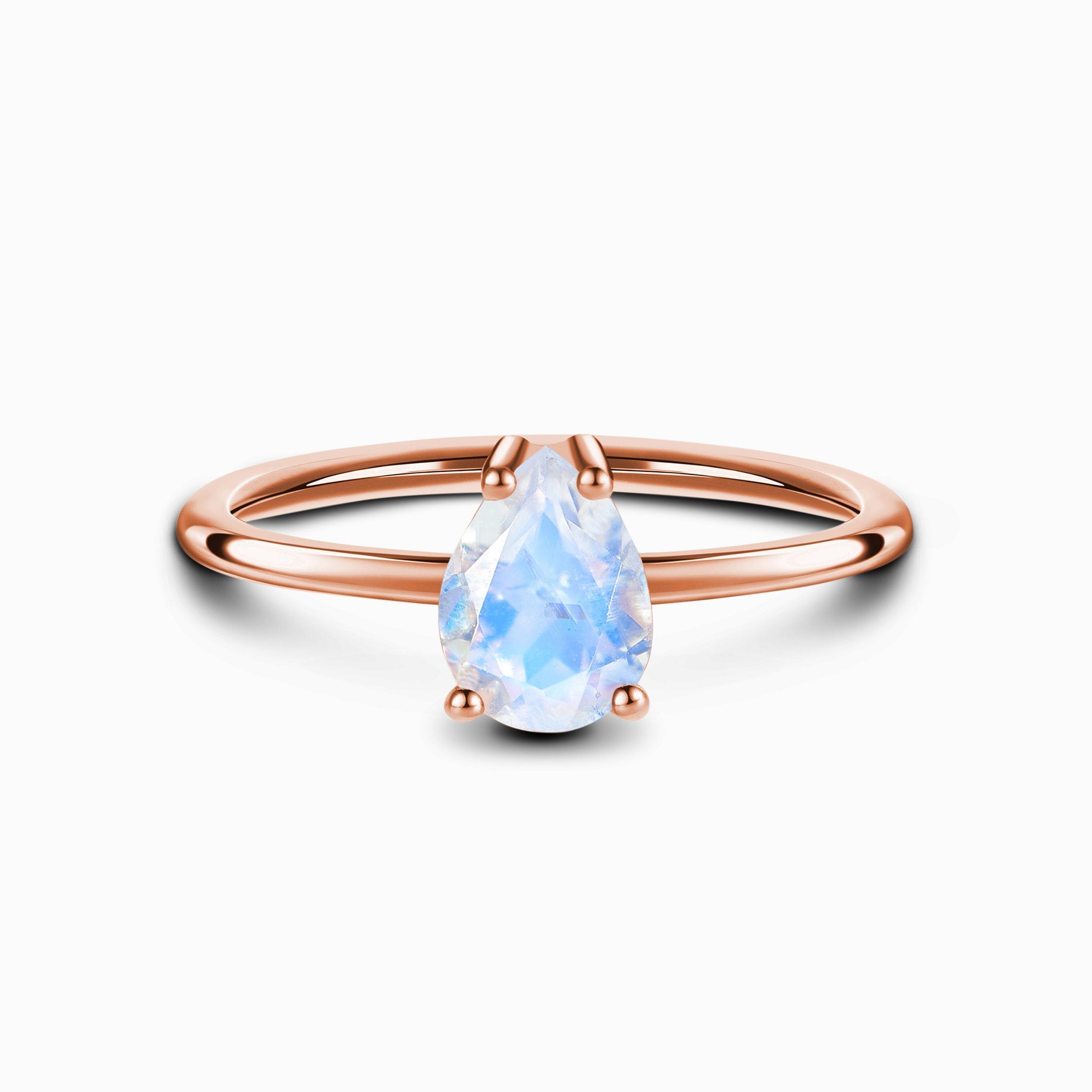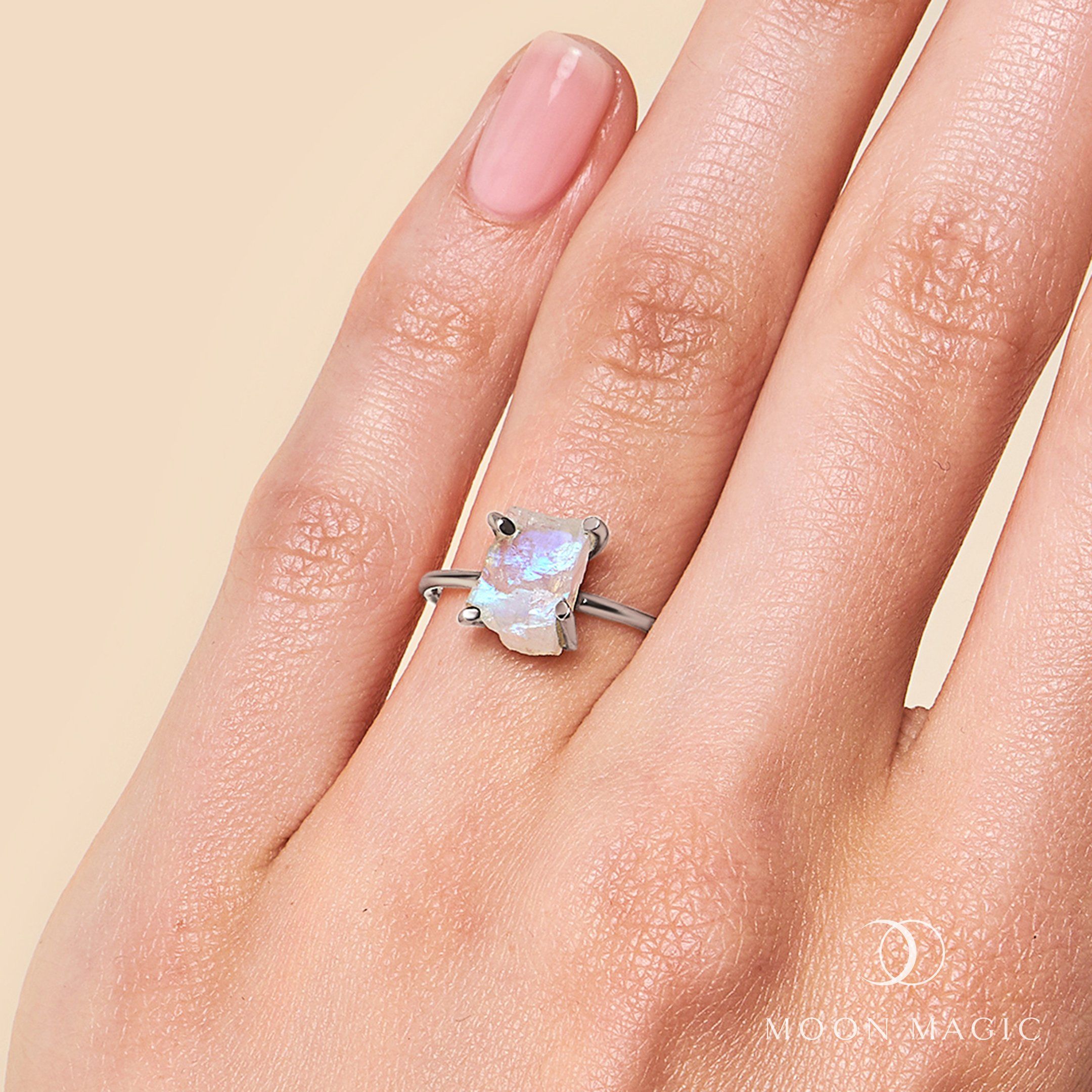 Petite Oval Rainbow Moonstone Ring - Size 8