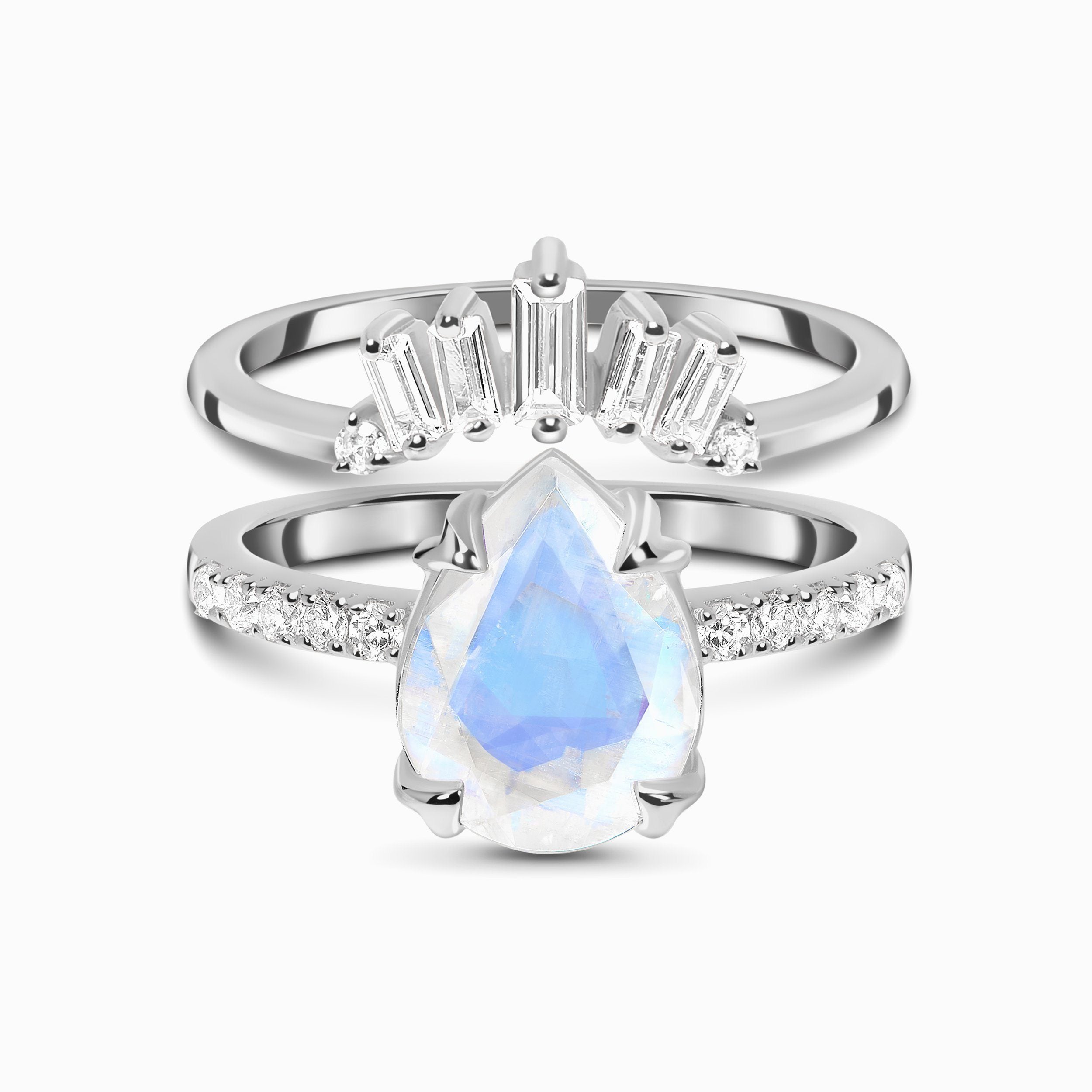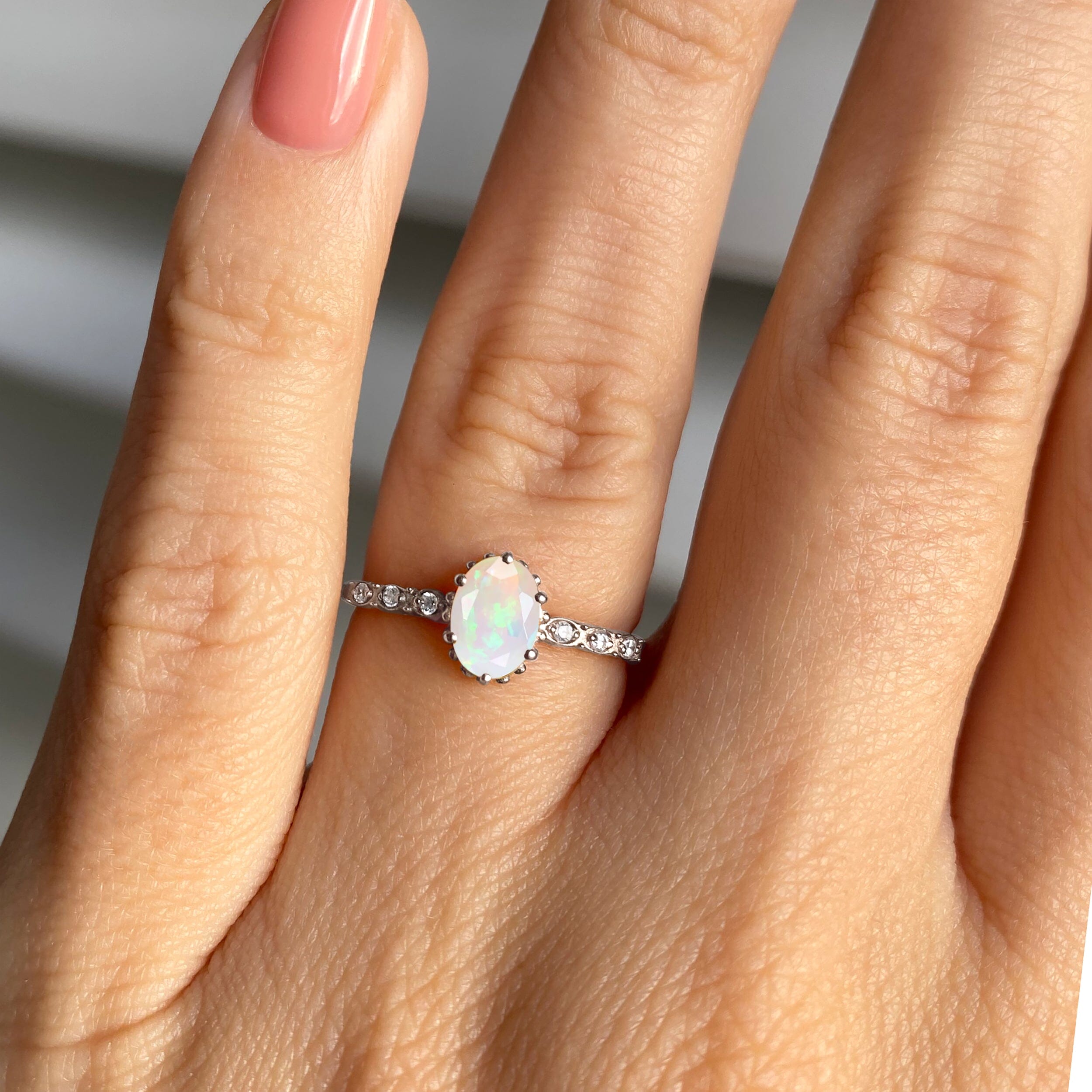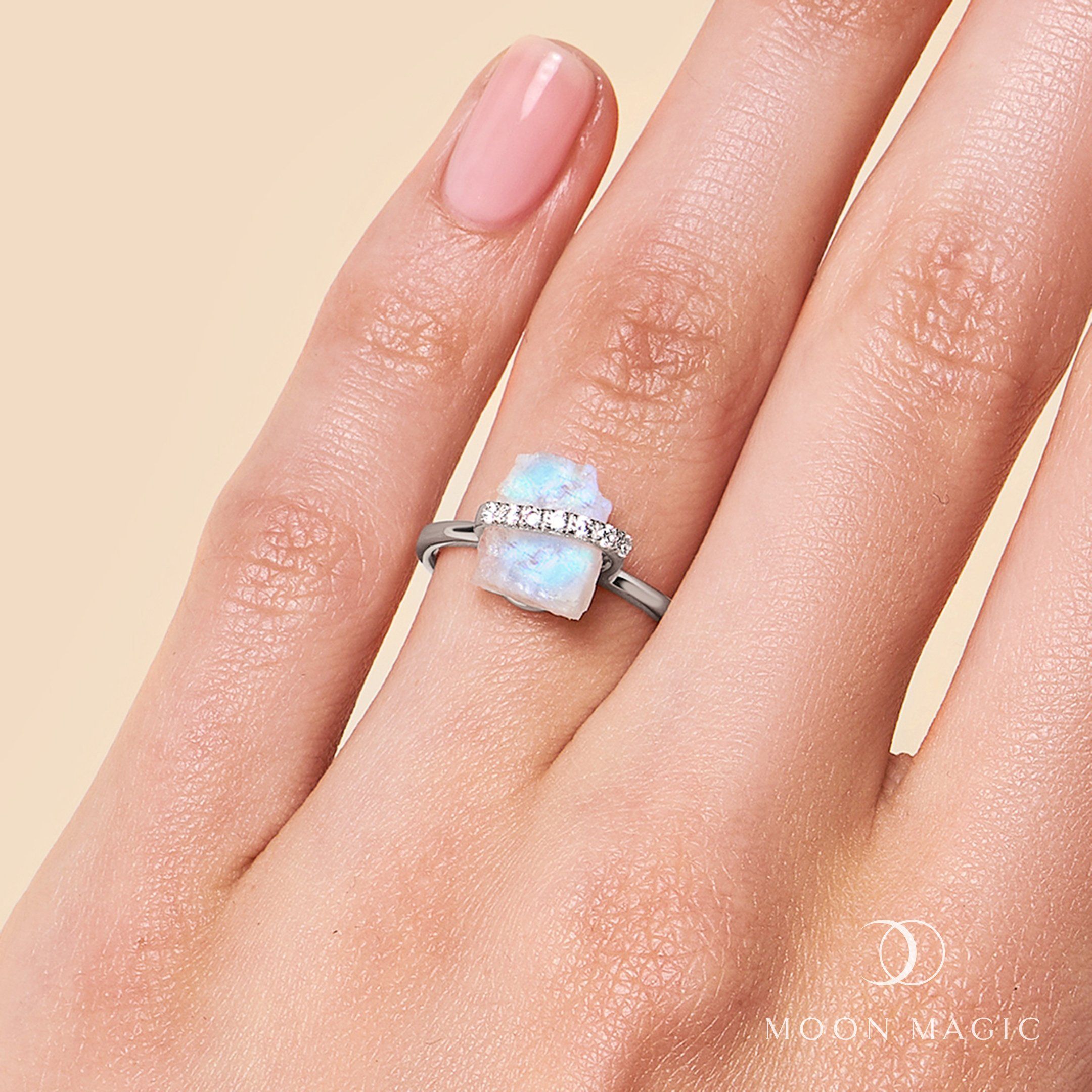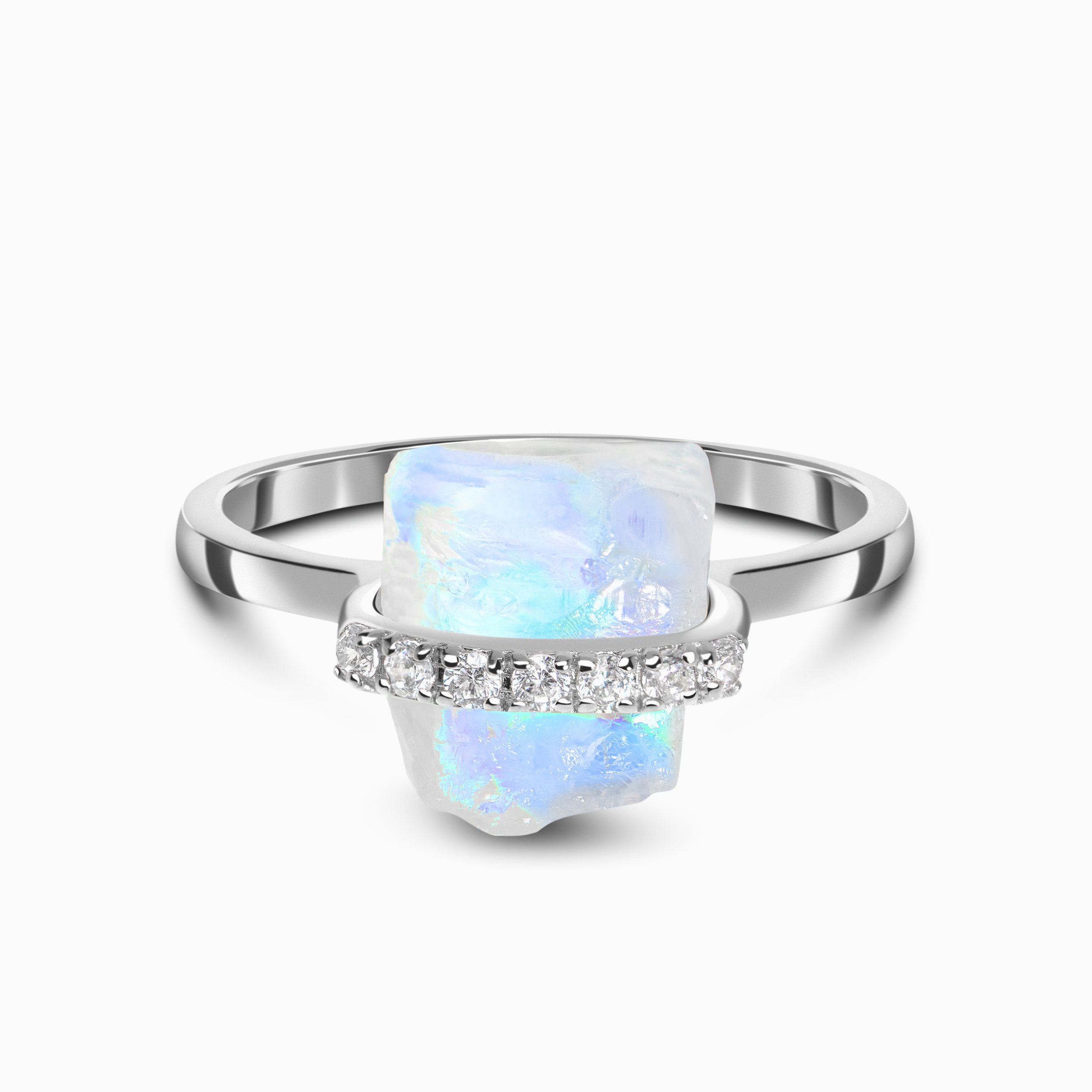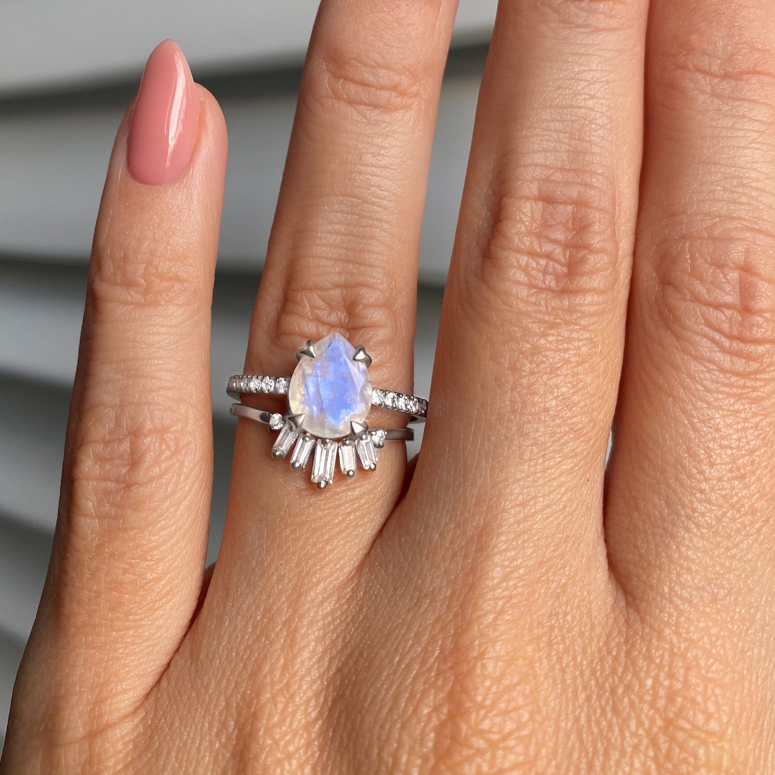 Petite Oval Rainbow Moonstone Ring - Size 8