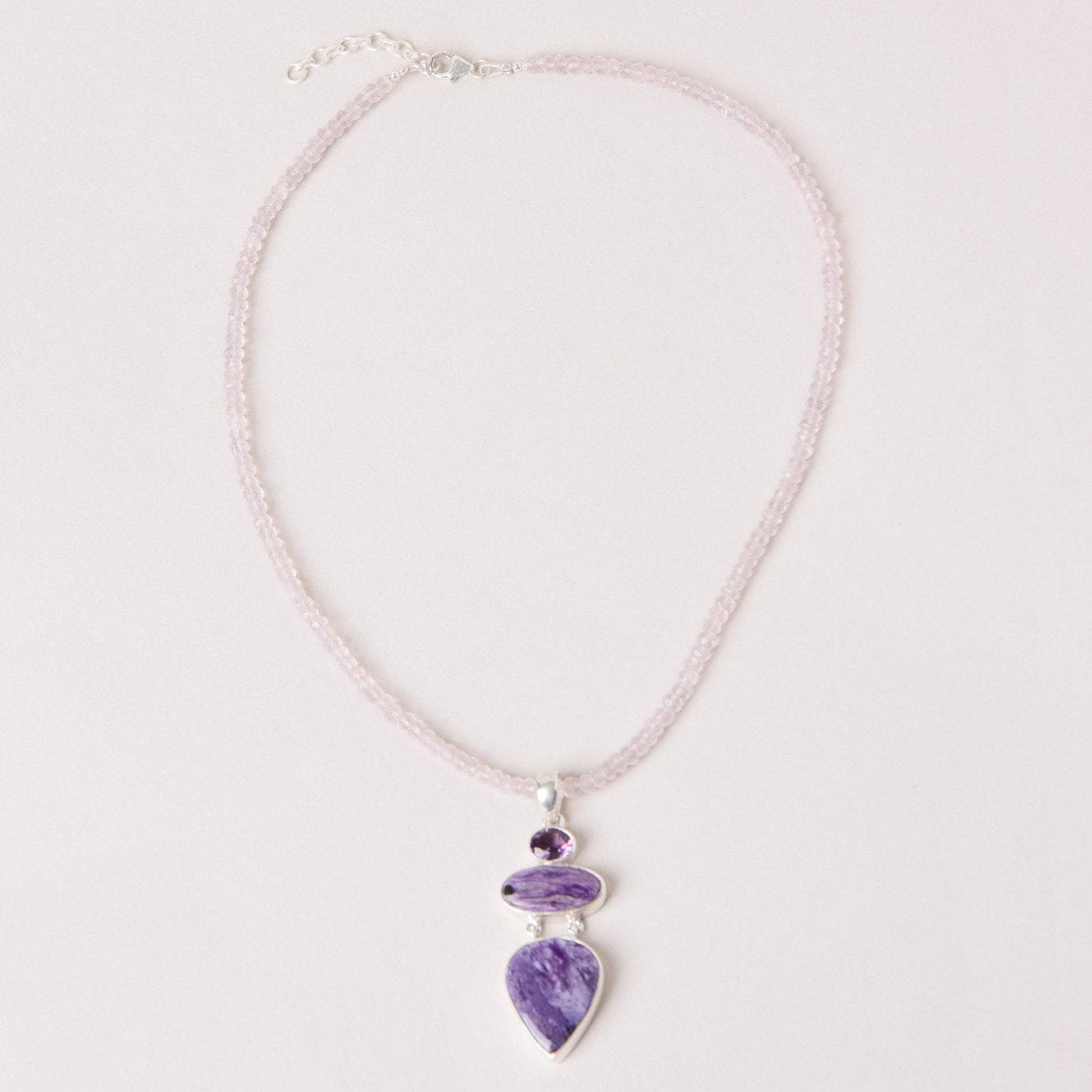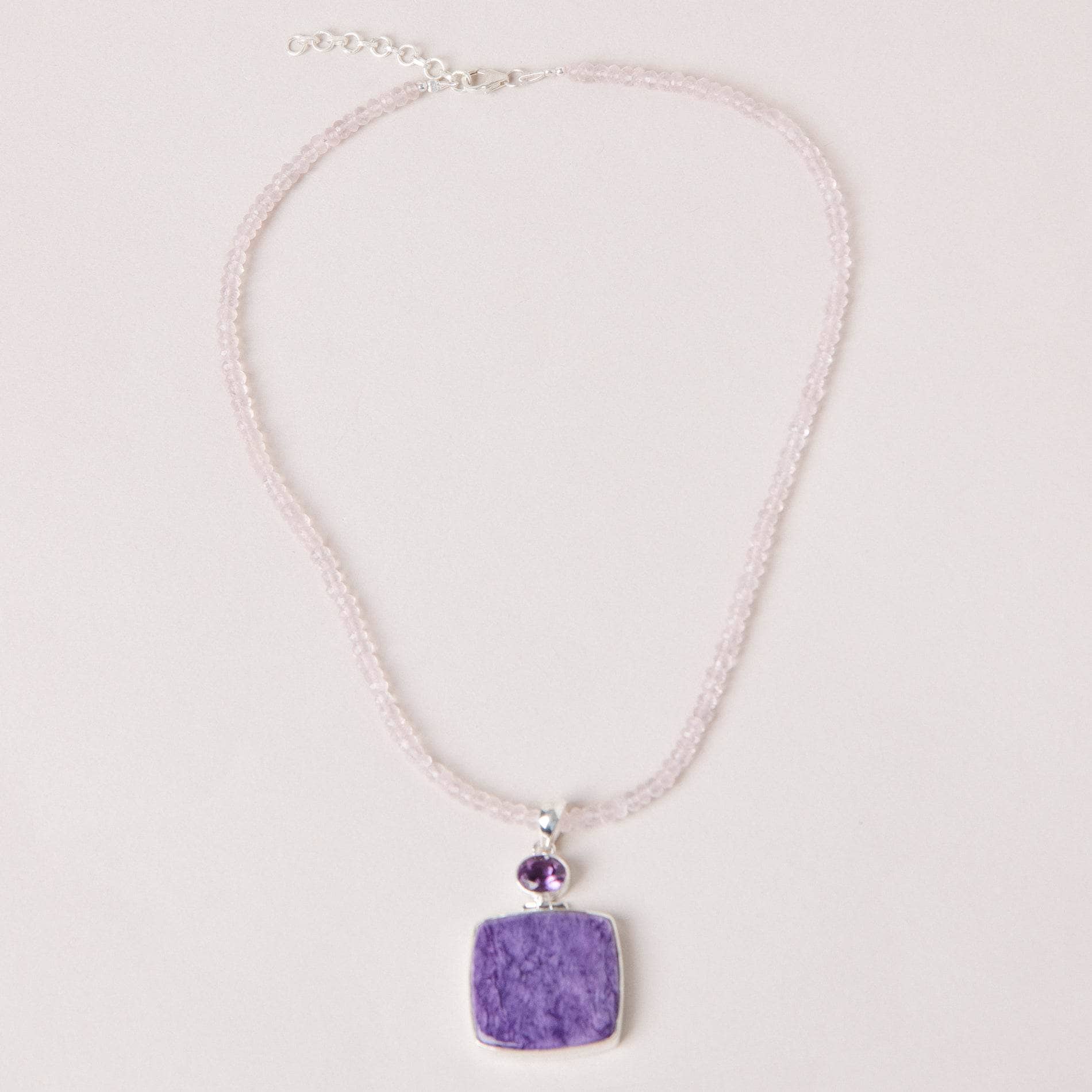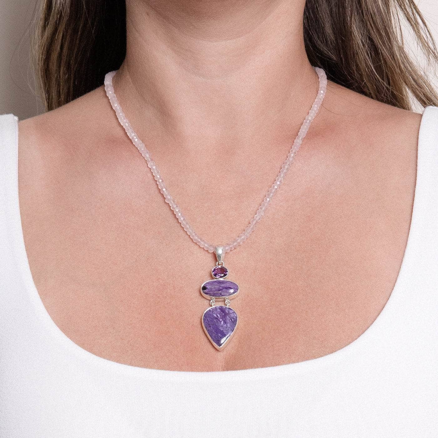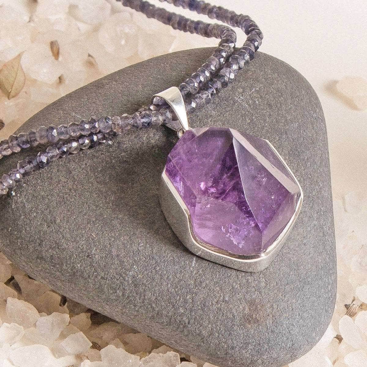 Large Amethyst Crystal on Beaded Iolite Necklace - One of a Kind