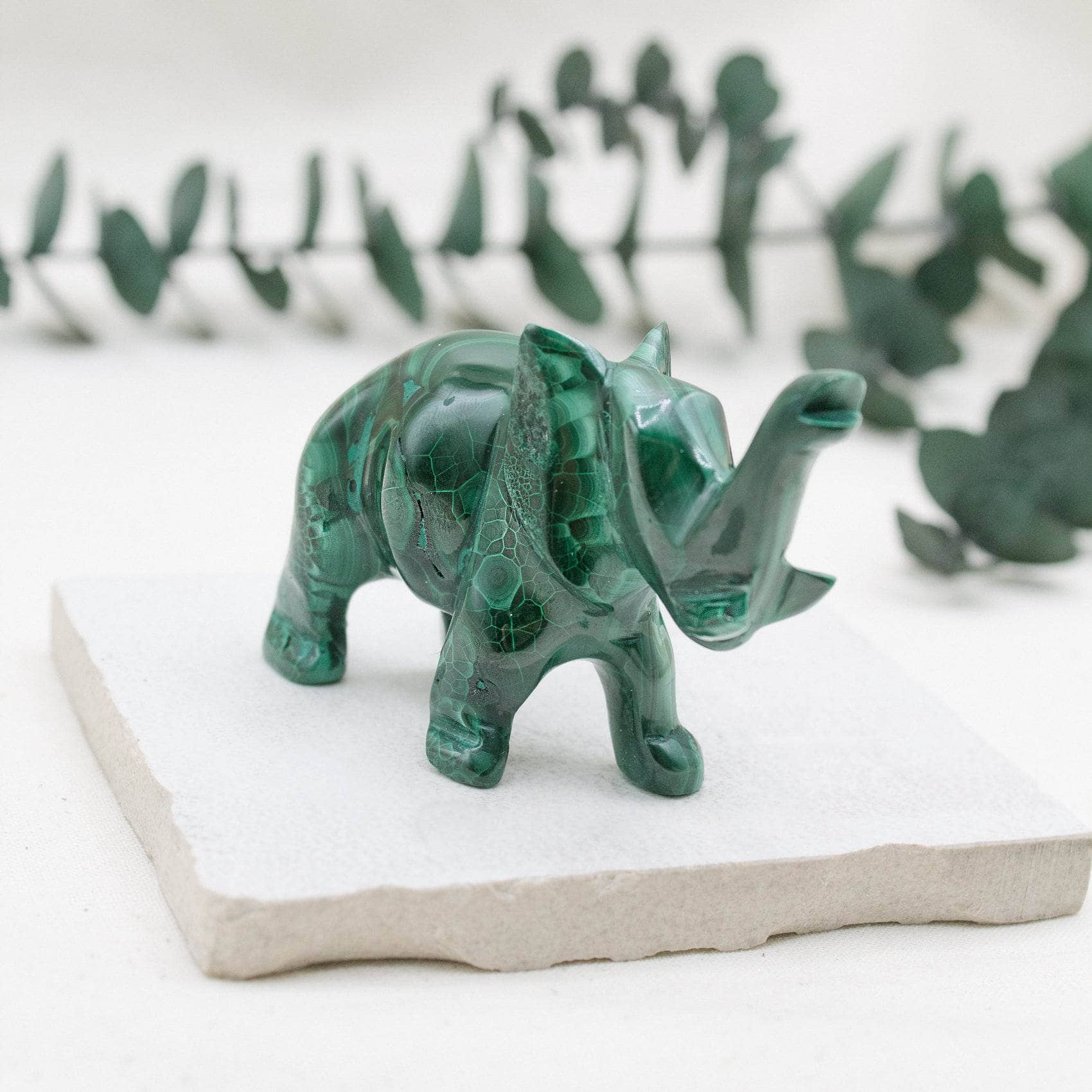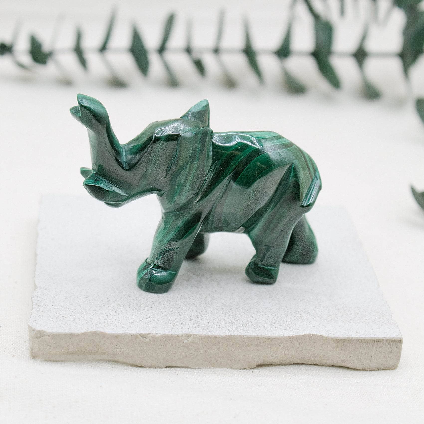 Genuine Malachite Elephants - Hand Carved - 1 of a Kind