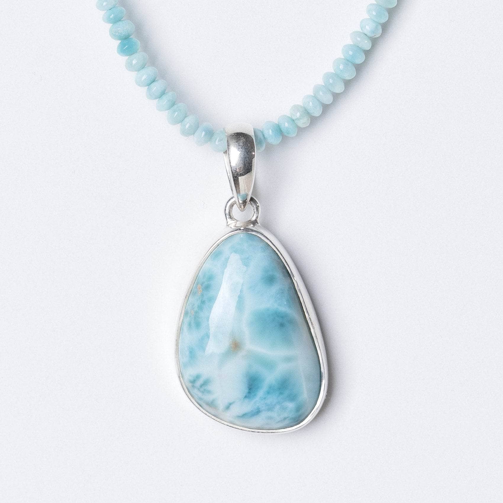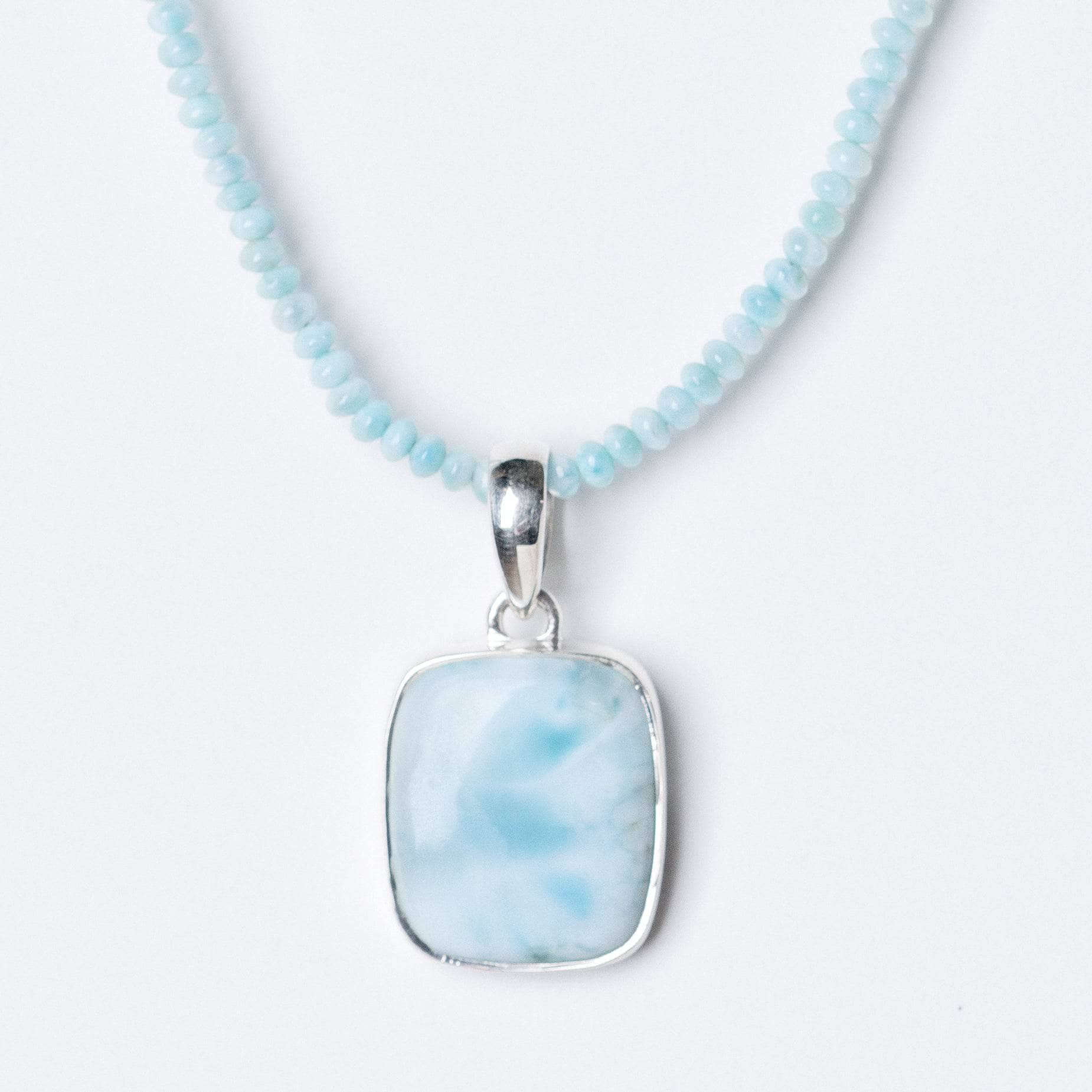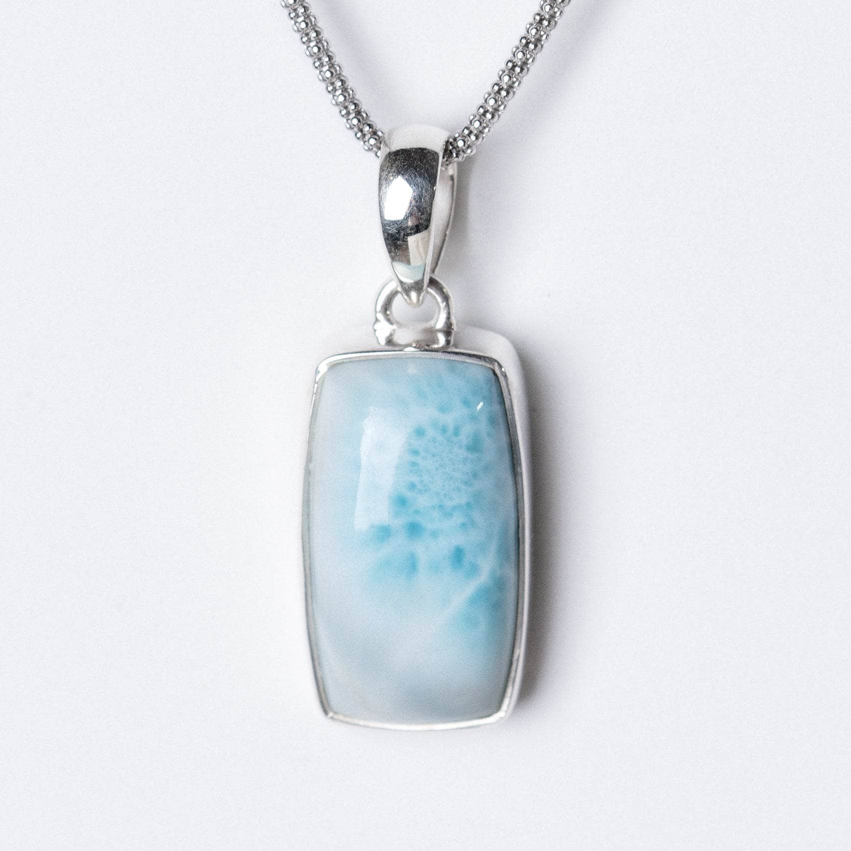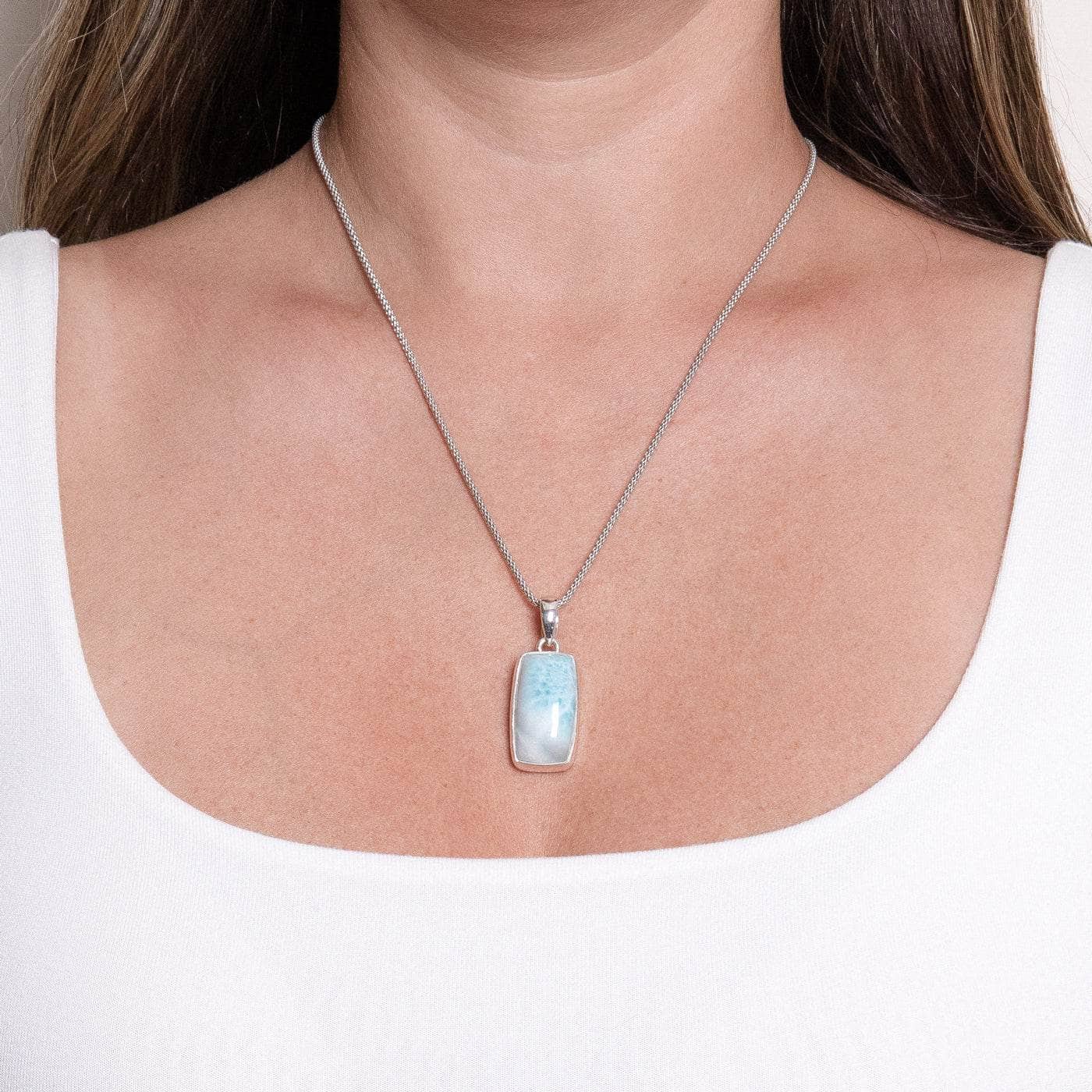 Rare Genuine Larimar Rectangle Pendant Necklace