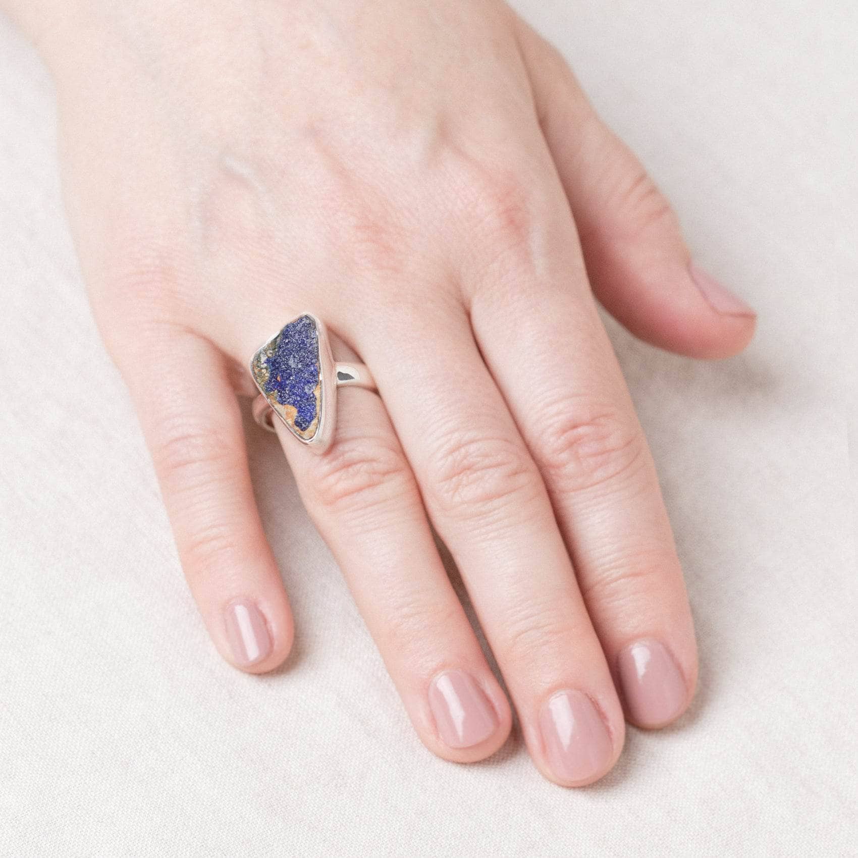 Rare Azurite Druzy Adjustable Ring - One of a Kind