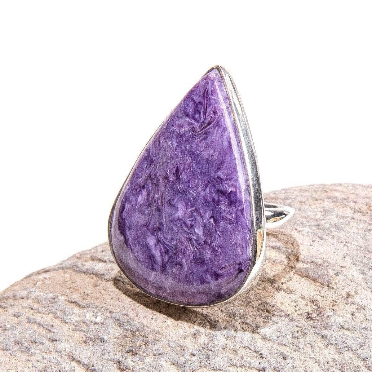 Charoite Teardrop Gemstone Ring - Adjustable 7-9 - 1 of a Kind