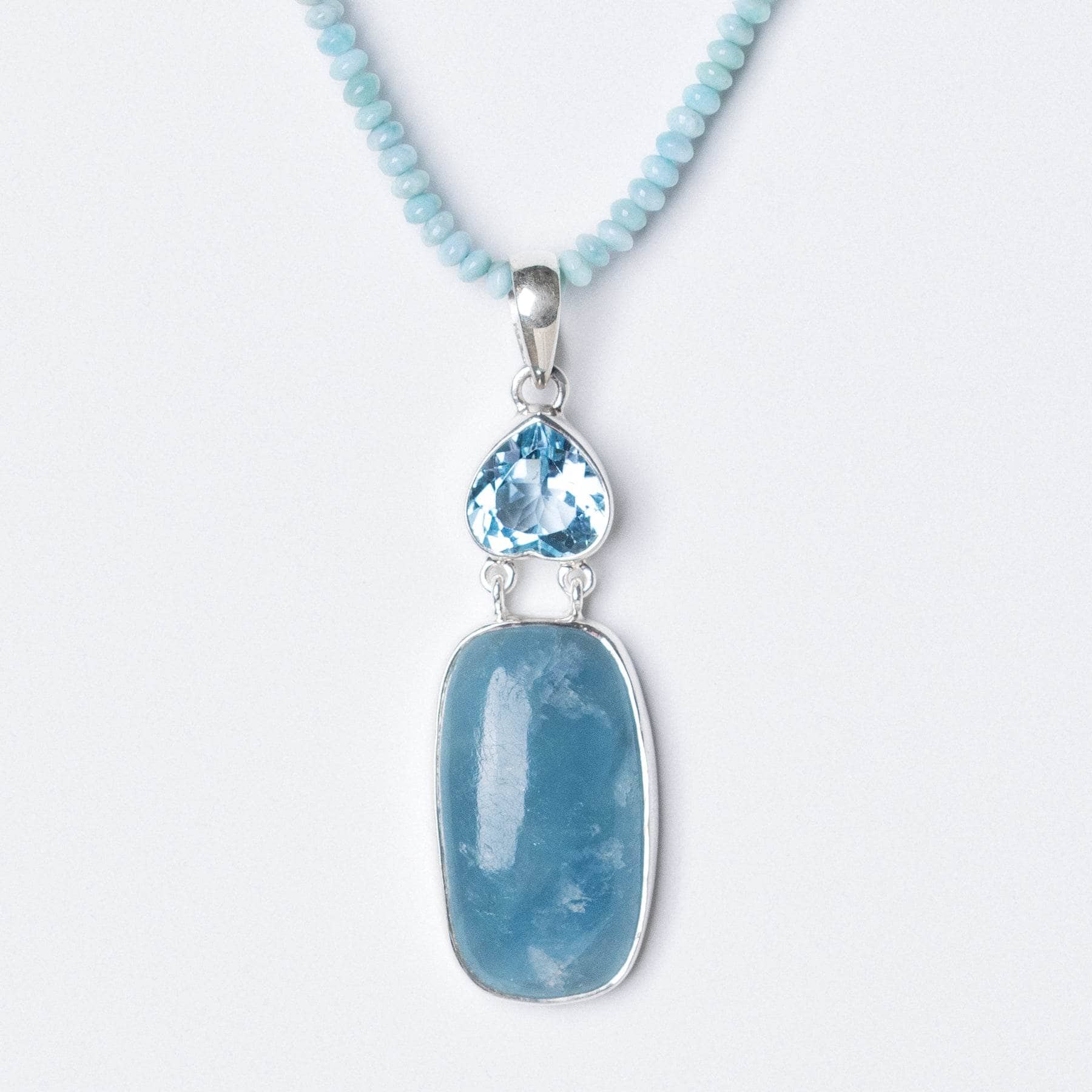 Aquamarine & Blue Topaz Rectangle Pendant Necklace