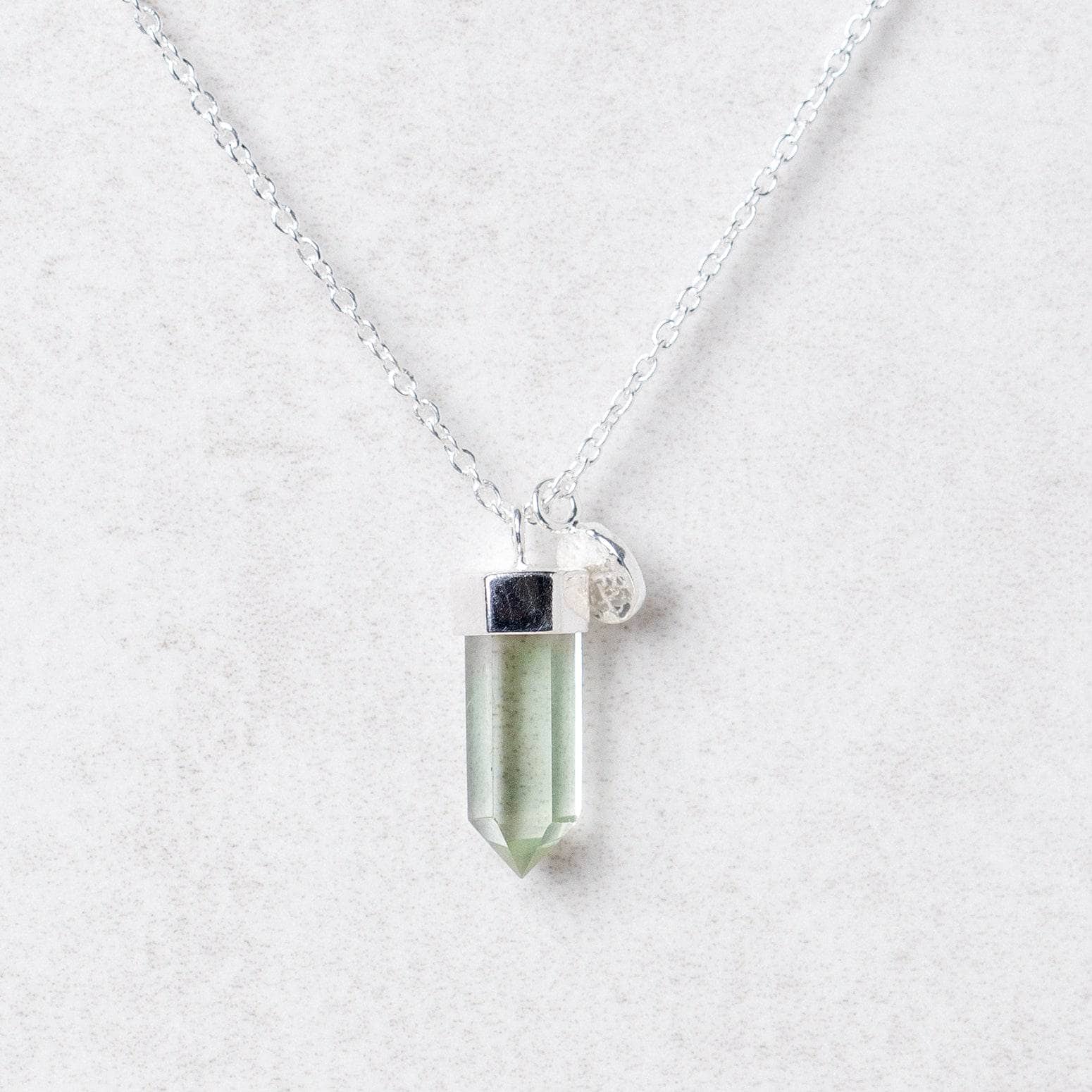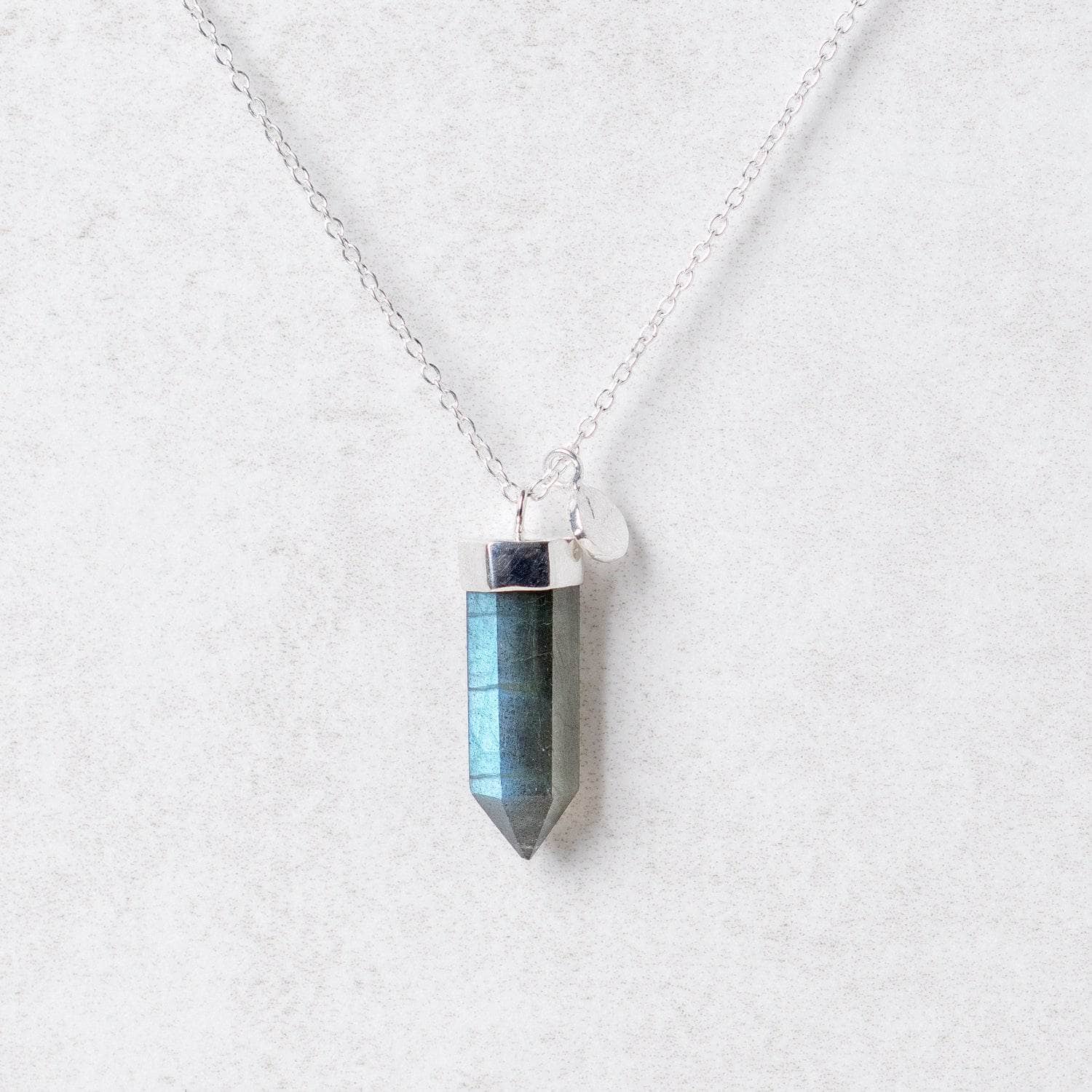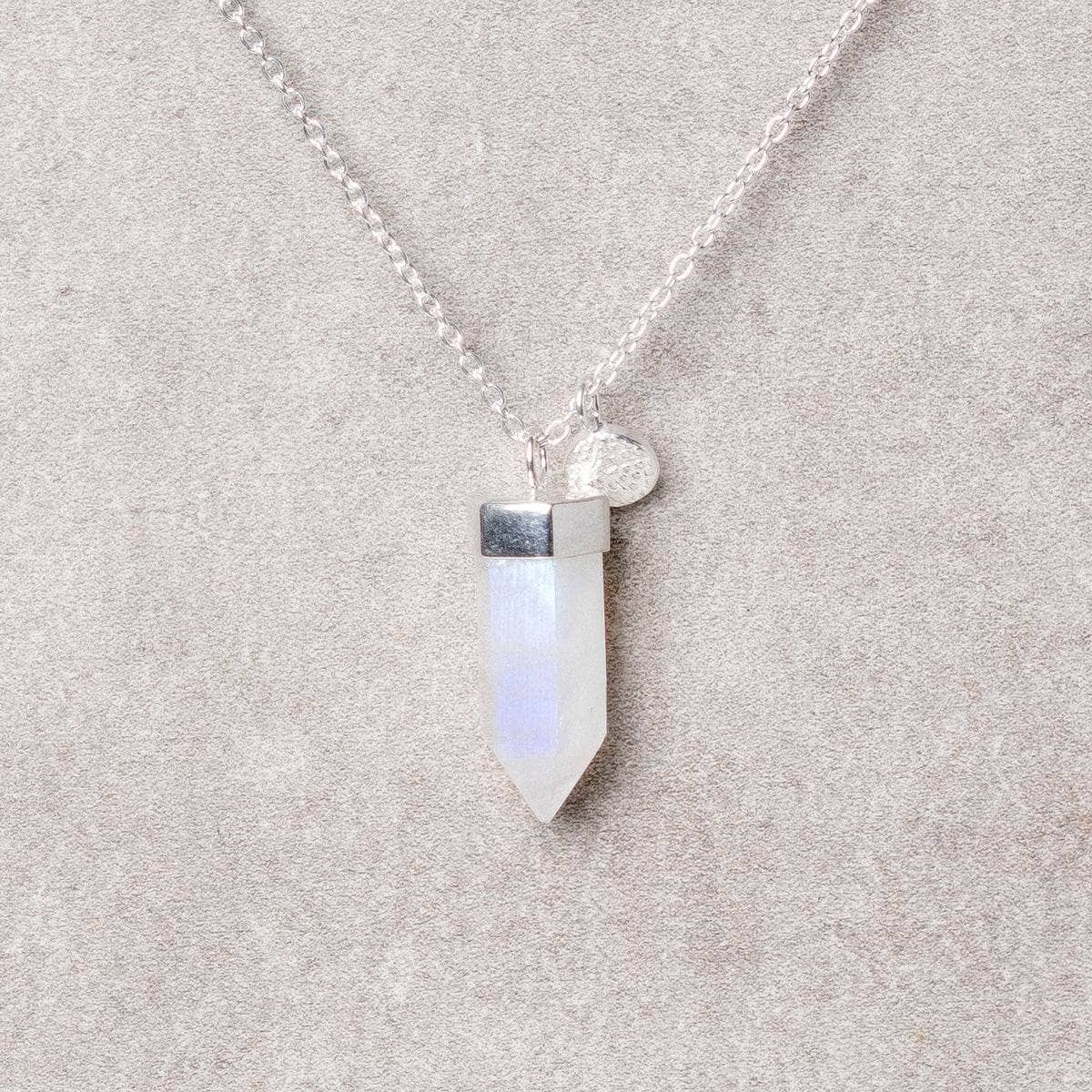 Delicate Rainbow Moonstone Crystal Point Necklace