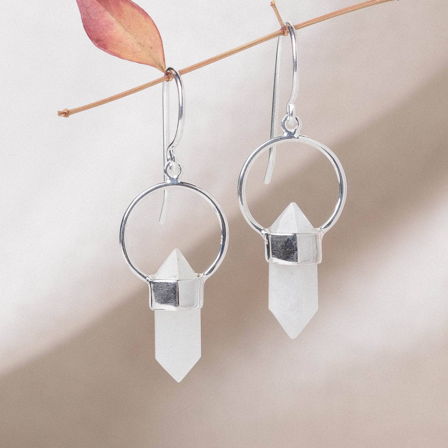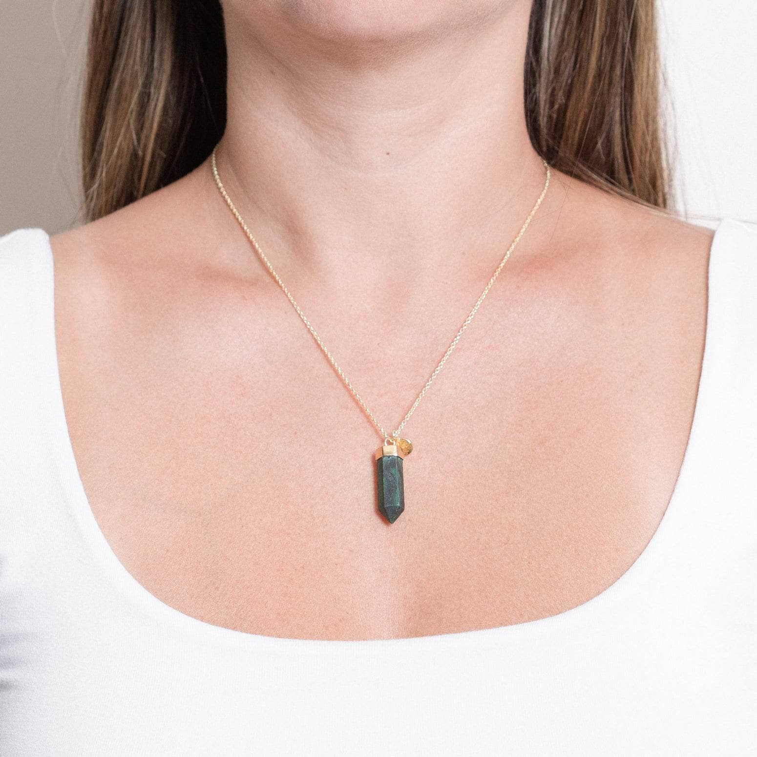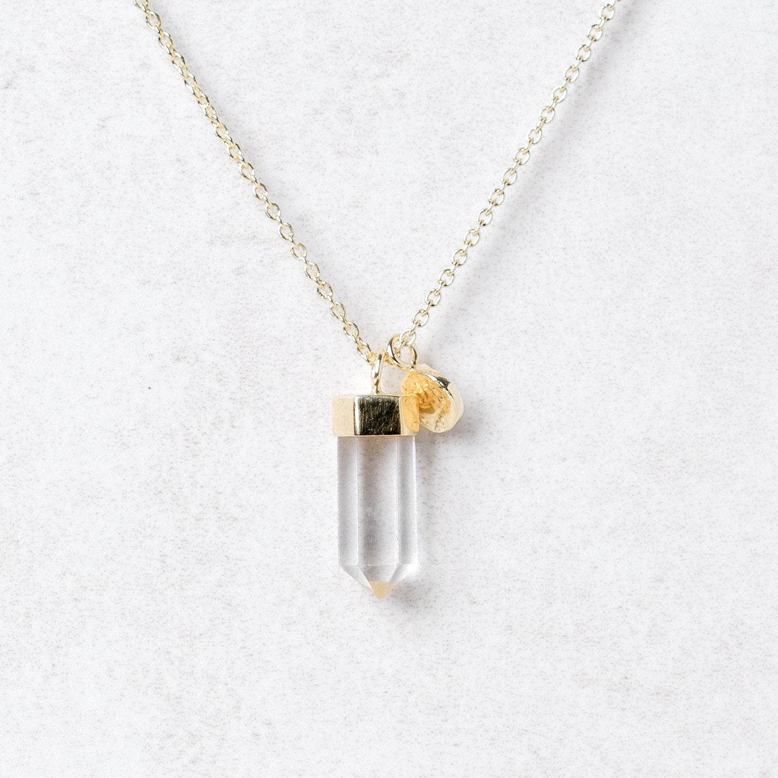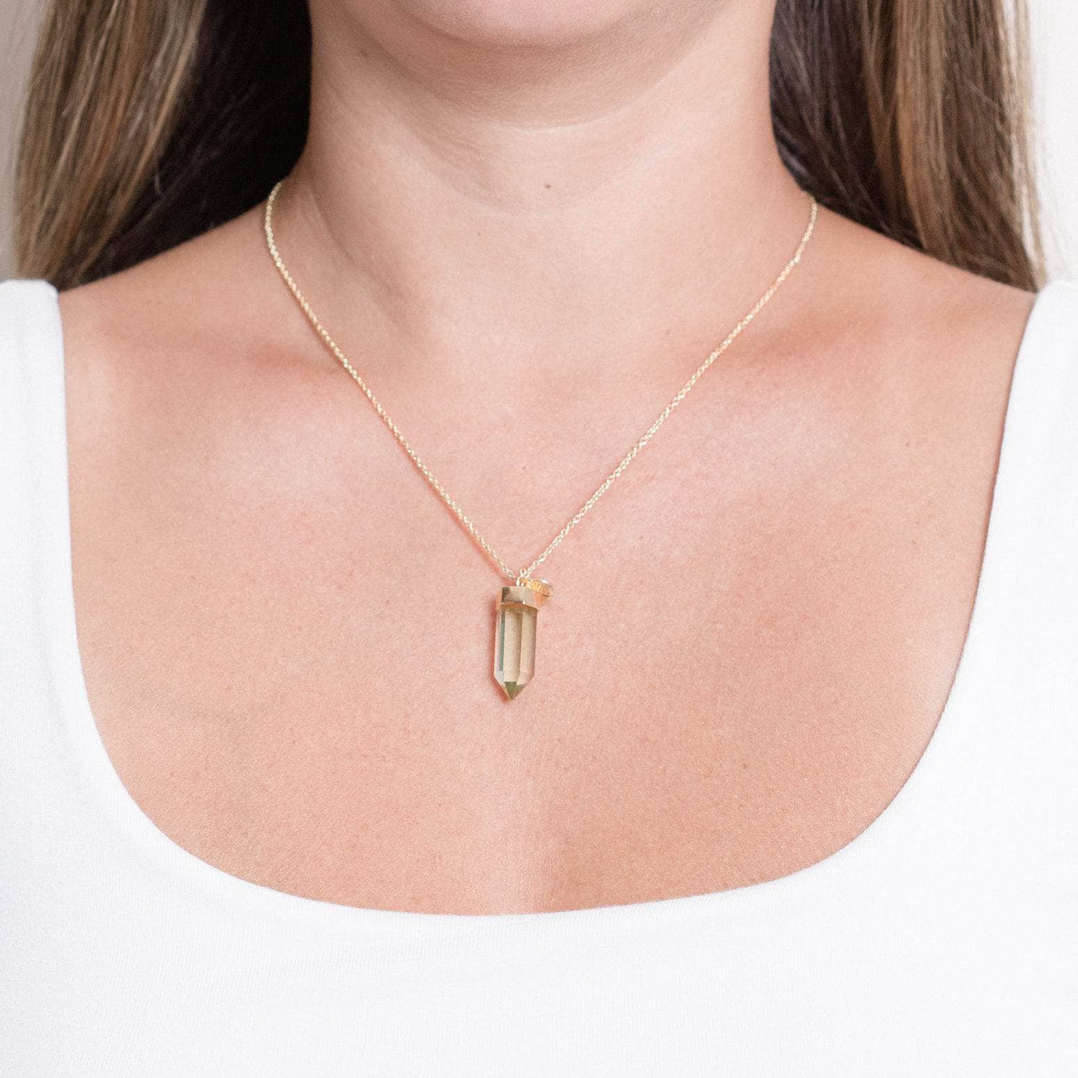 Delicate Rainbow Moonstone Crystal Point Necklace