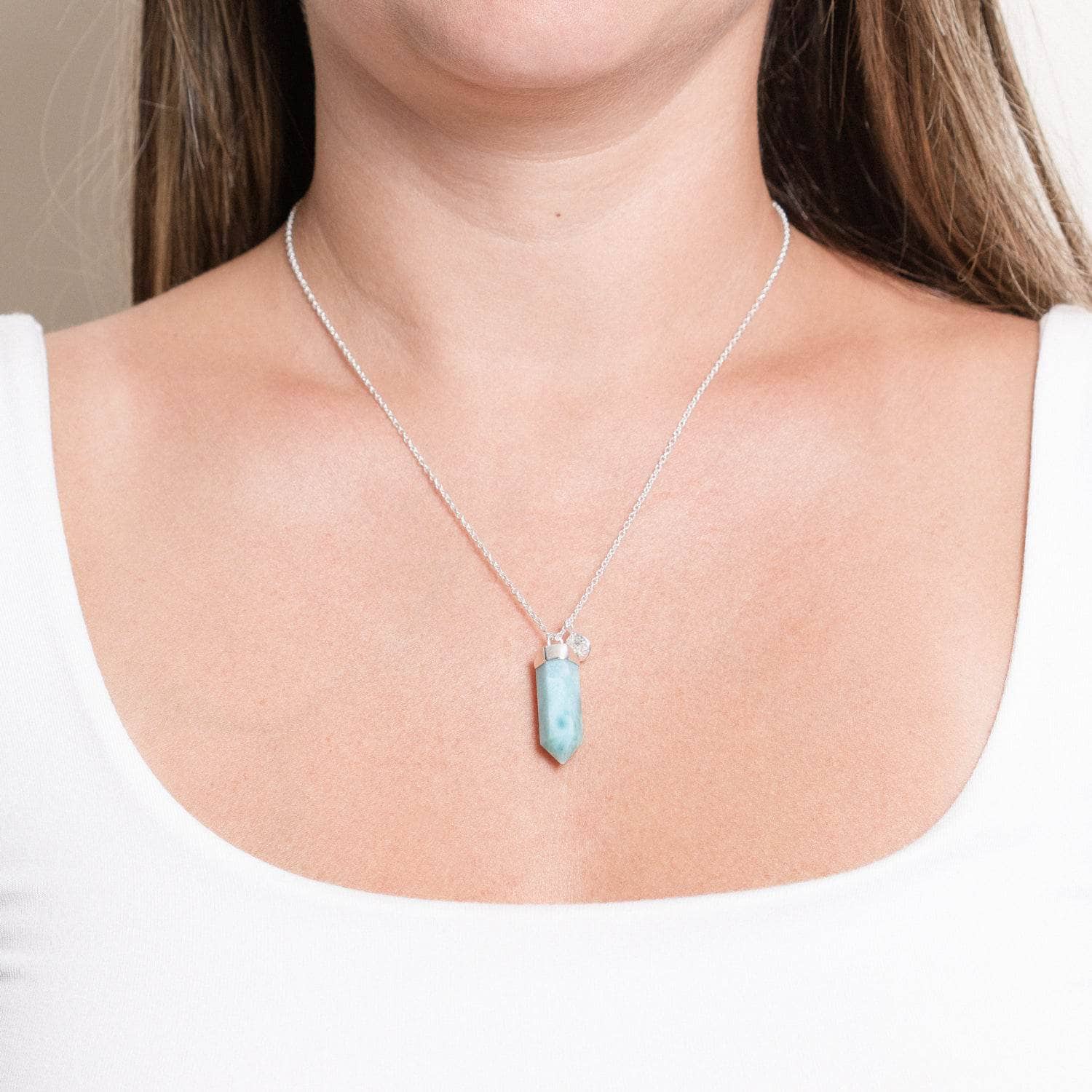 Delicate Rare Genuine Larimar Crystal Point Necklace