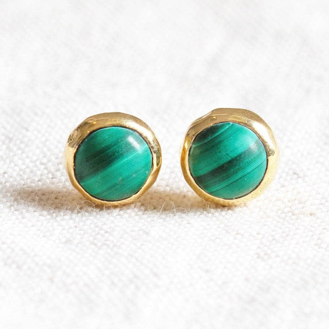 Genuine Malachite Silver or Gold Stud Earrings