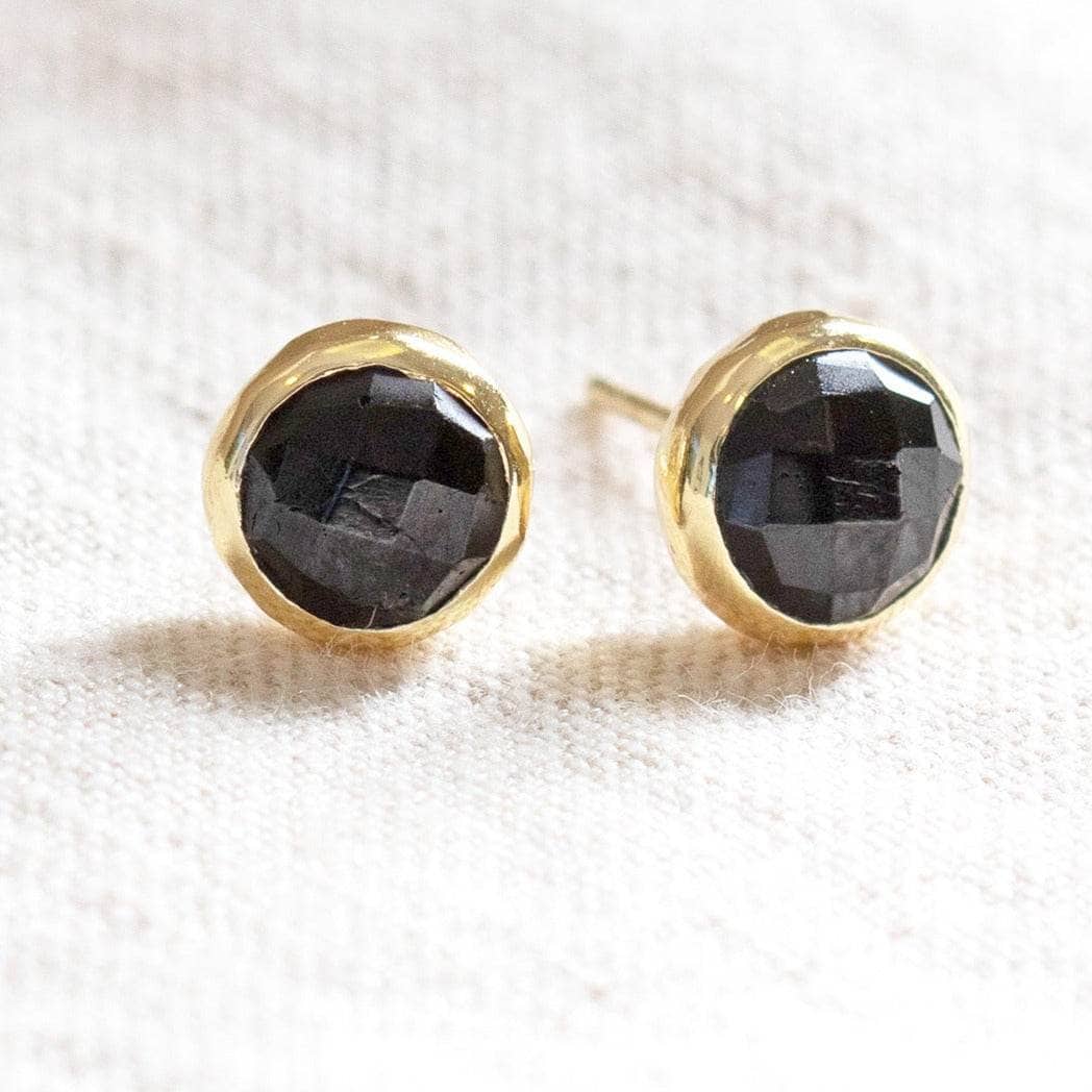 Black Tourmaline Silver or Gold Stud Earrings