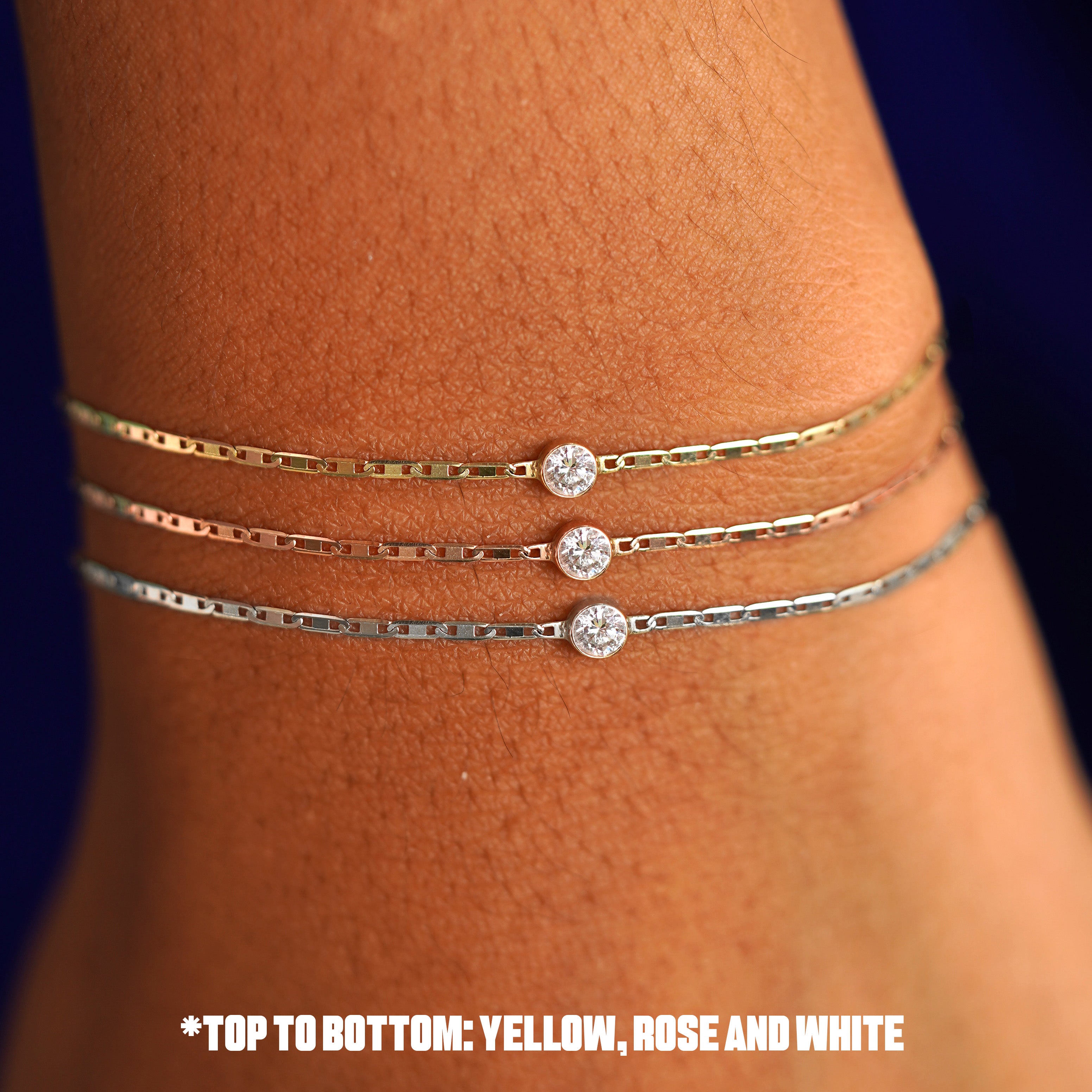 These reincarnated diamonds are old souls, though you’d never know it by the looks of them. Our diamond bracelets use natural, reclaimed .10ct diamonds, so you can rest easy knowing your sparkle meets the highest ethical standards. This April birthstone bracelet is the perfect way to celebrate your birth month. This 14k solid gold beauty is made to be worn every day so you’ll never have to part with this sparkling gemstone bracelet. The Valentine Chain secures with a lobster lock and easy-to-grip Automic Gold AU plate.
