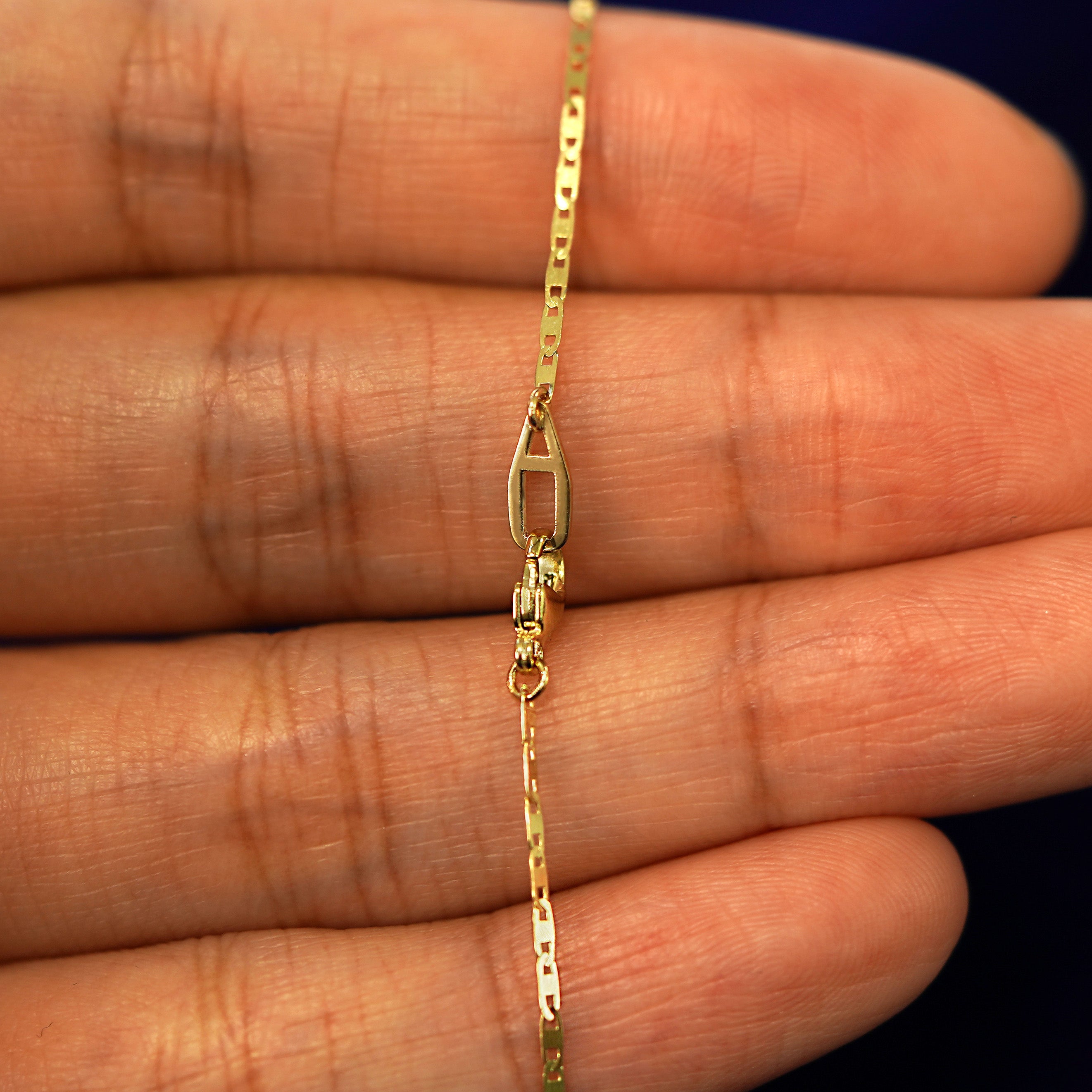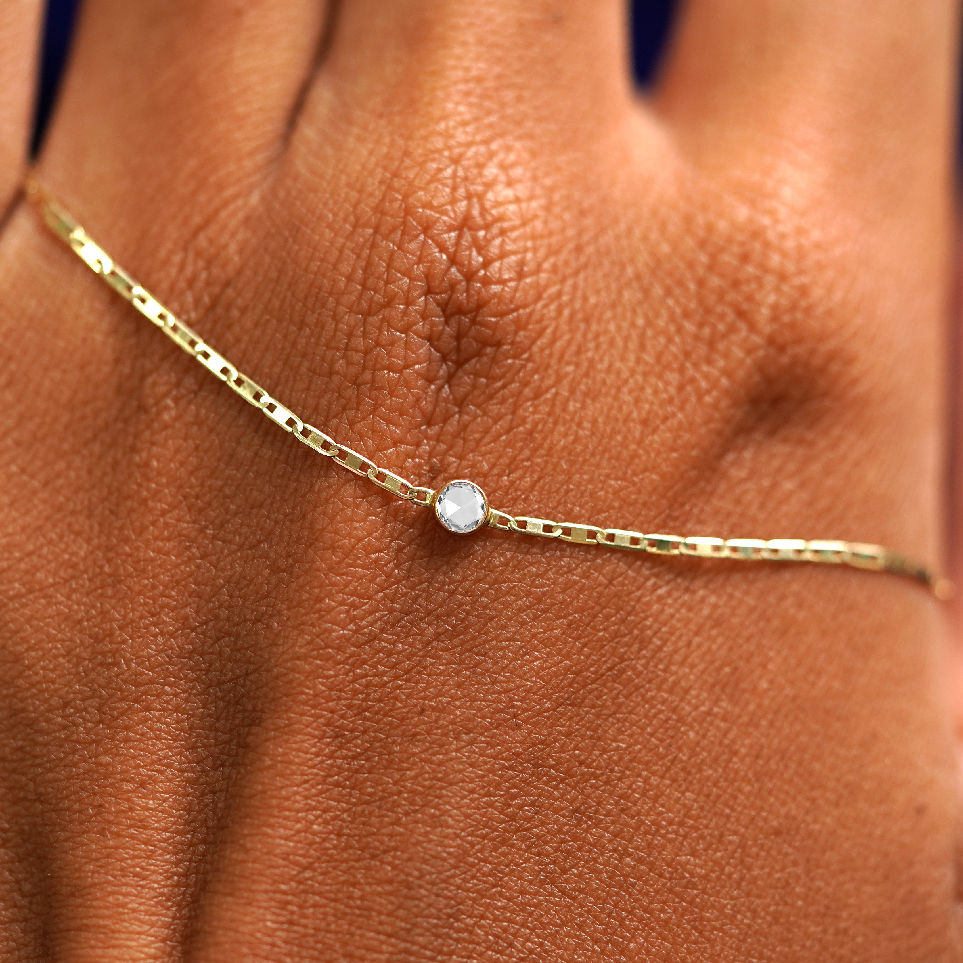 This gorgeous rose-cut diamond bracelet is fabulously faceted to show off the natural beauty of the diamond. The subtle shine and glimmer is like wearing a star on your arm and the recycled gold Valentine Chain Bracelet adds to the overall elegant look. Secures with a lobster lock and easy-to-grip Automic Gold AU plate.